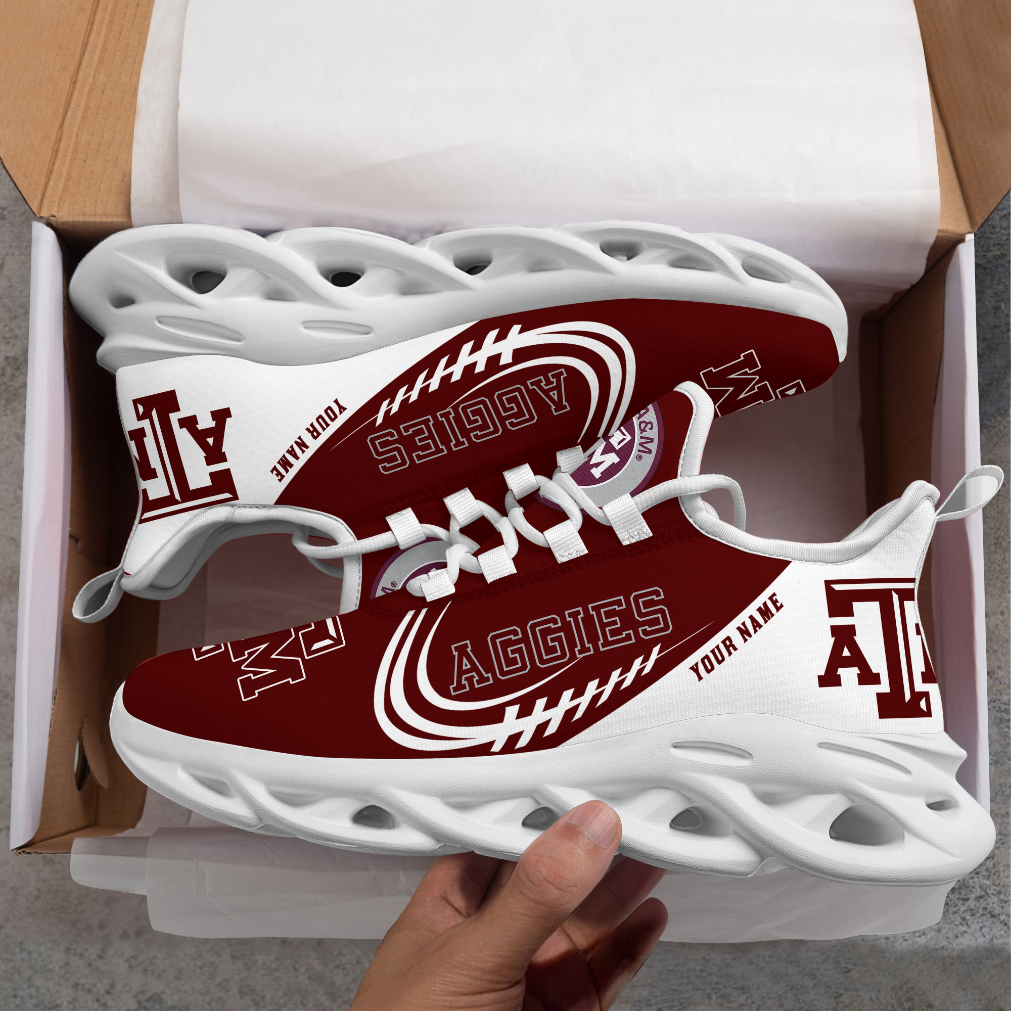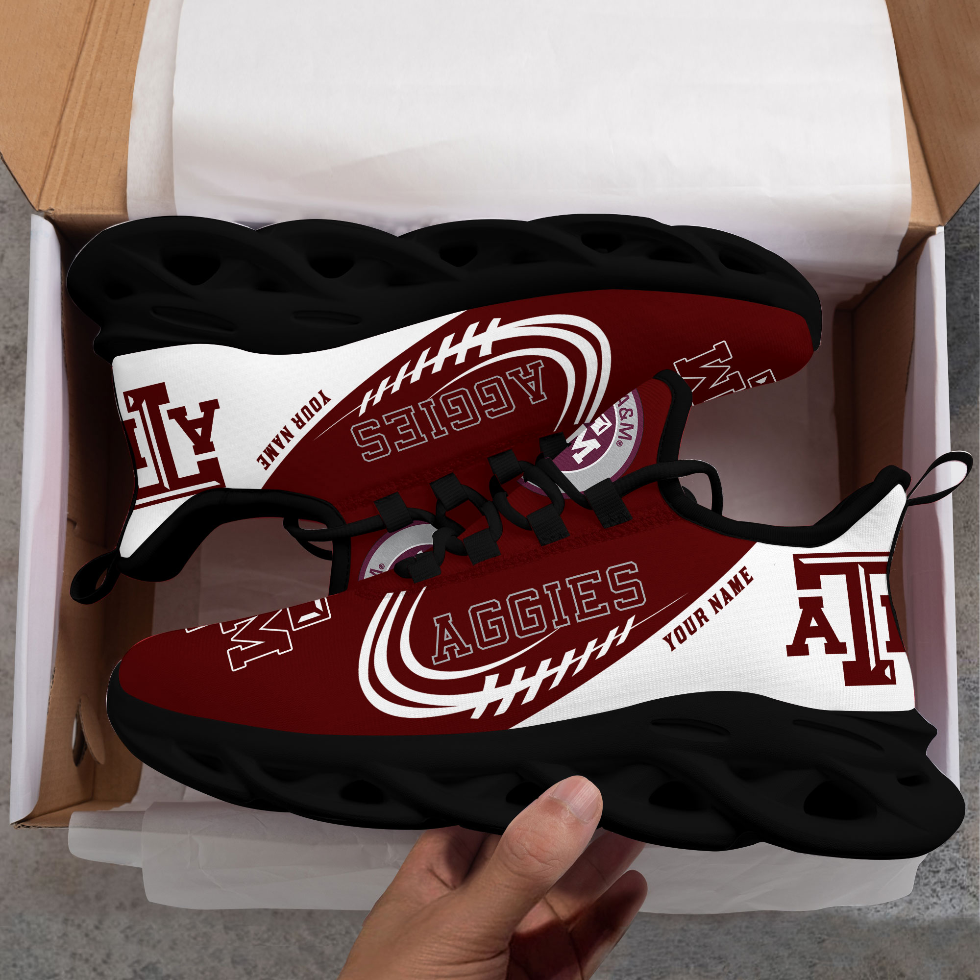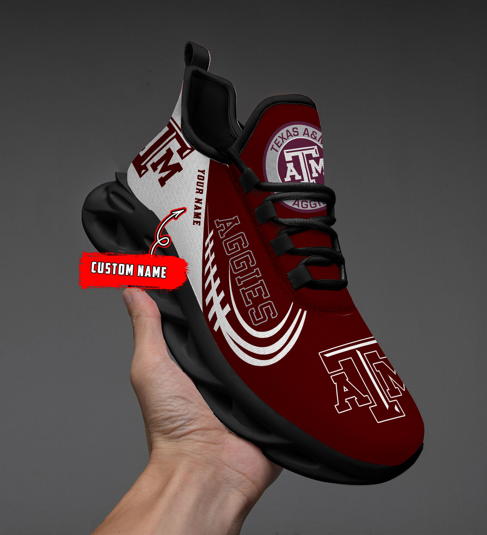 1 individueller Name Texas AM Aggies personalisierte Max-Schuhe T1