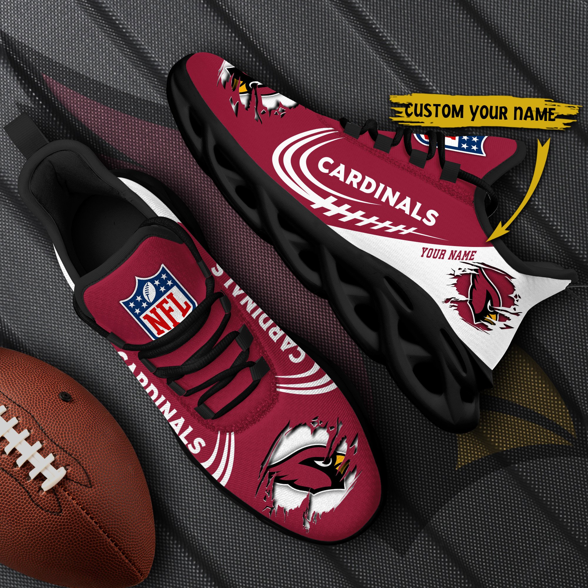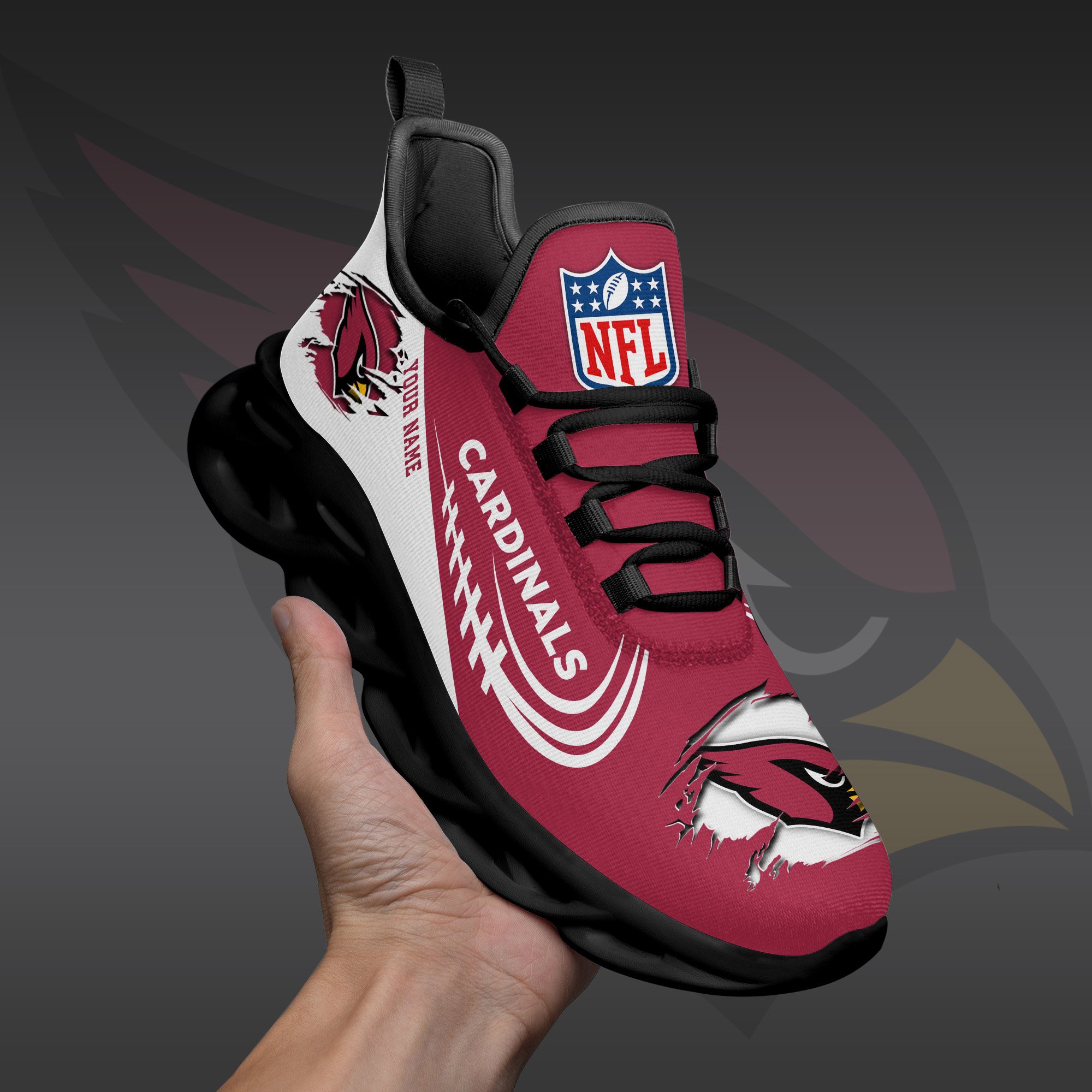 Arizona Cardinals Black Max Soul Shoes 2026 Versions Custom Name 003