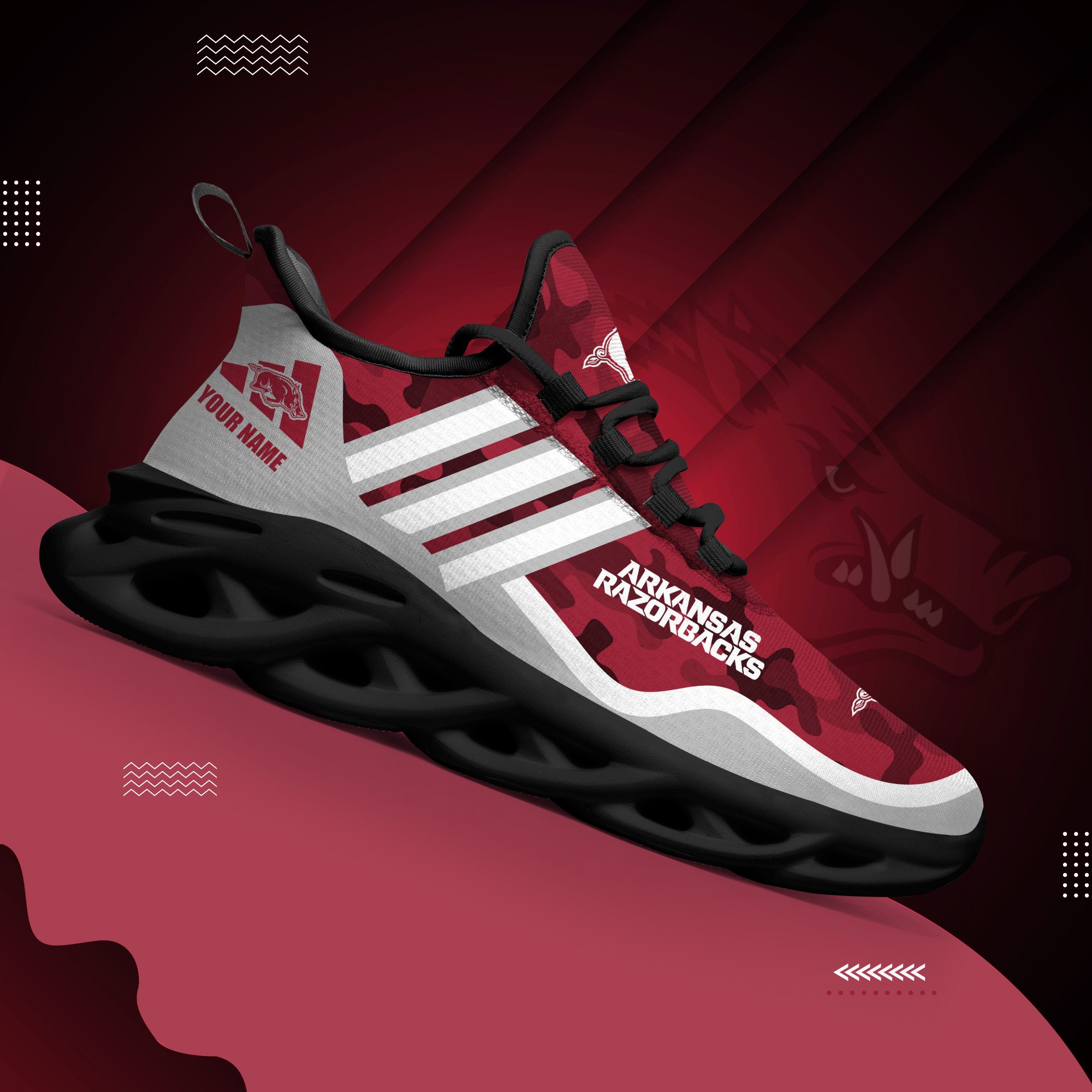 Arkansas Razorbacks Black Max Soul Shoes 2026 Versions Custom Name 466