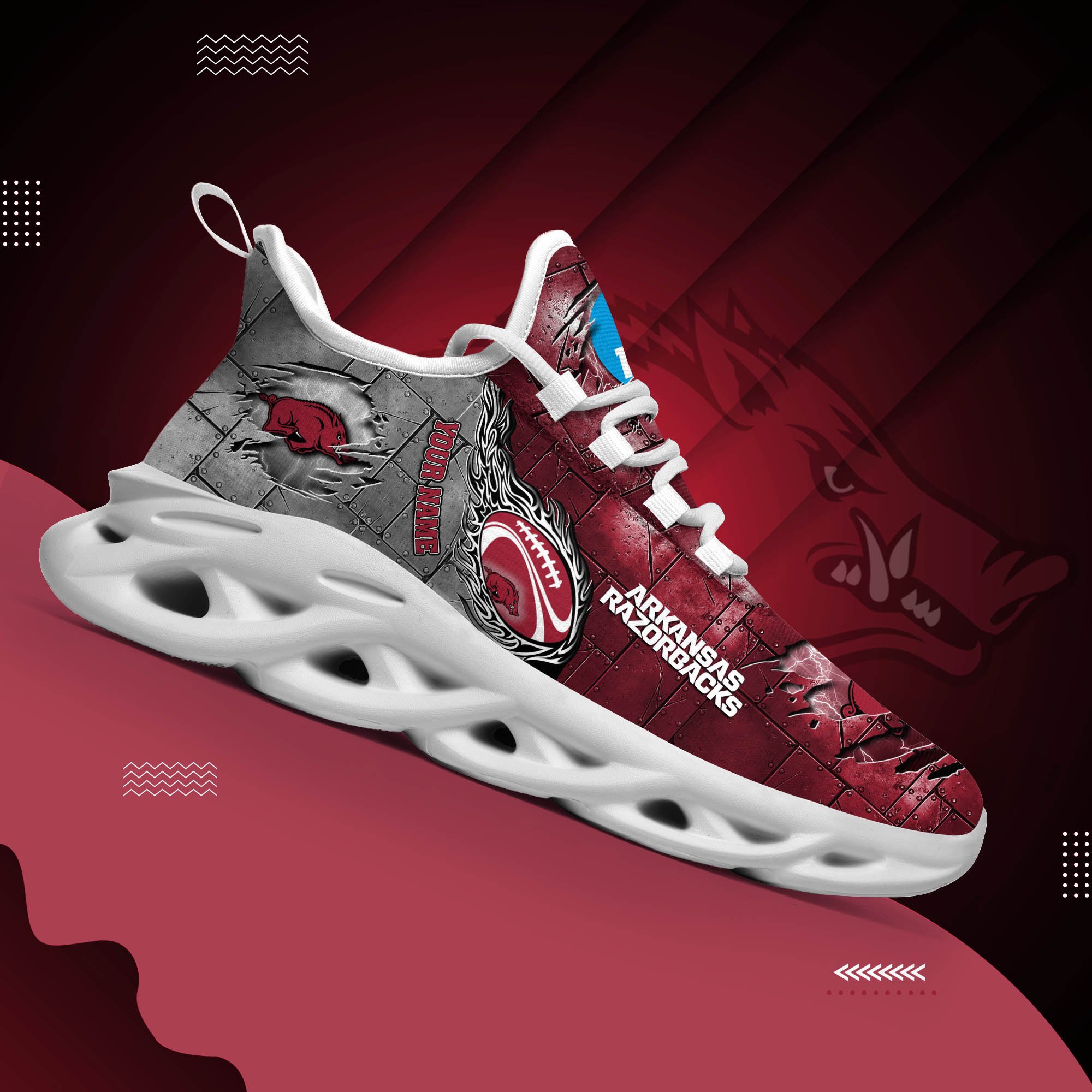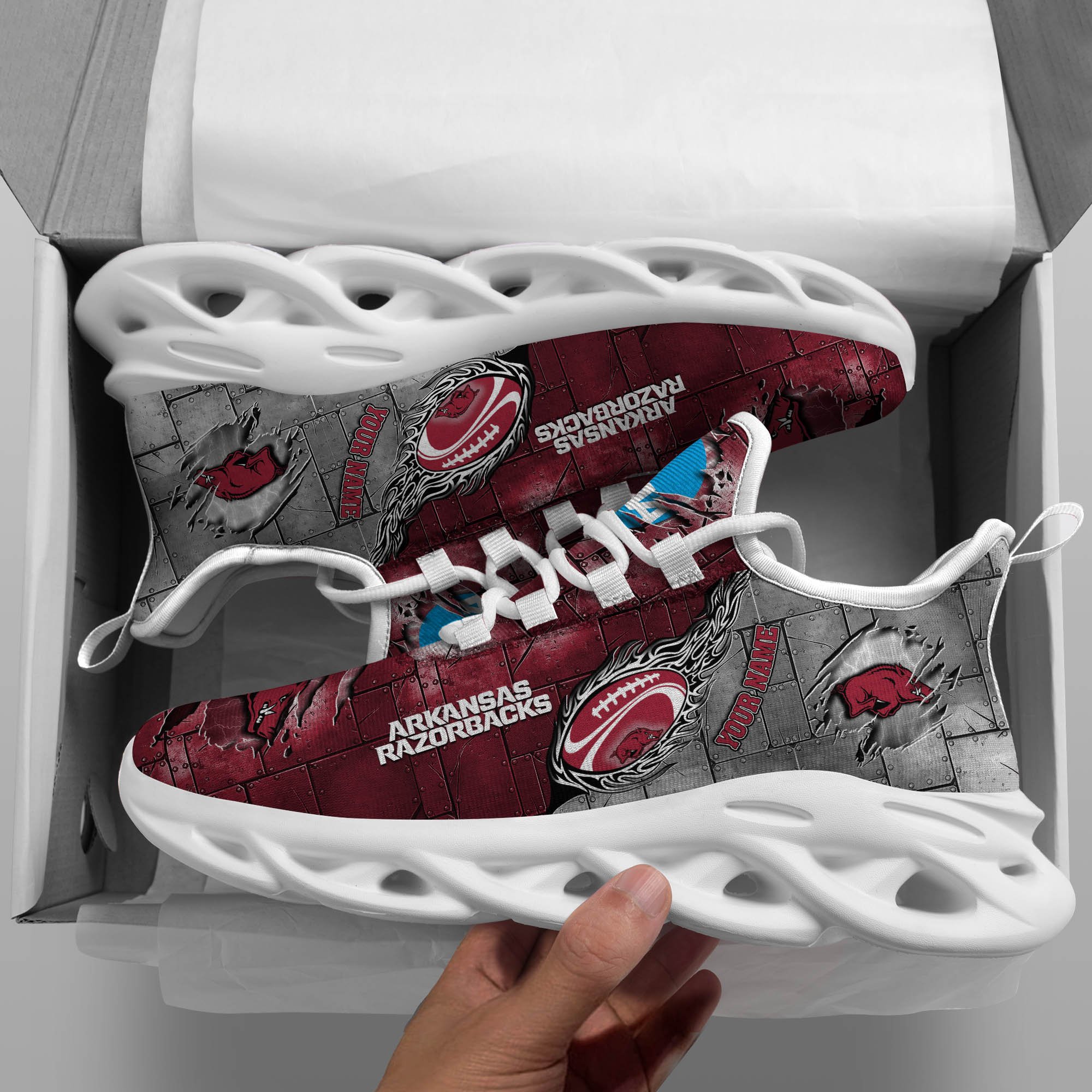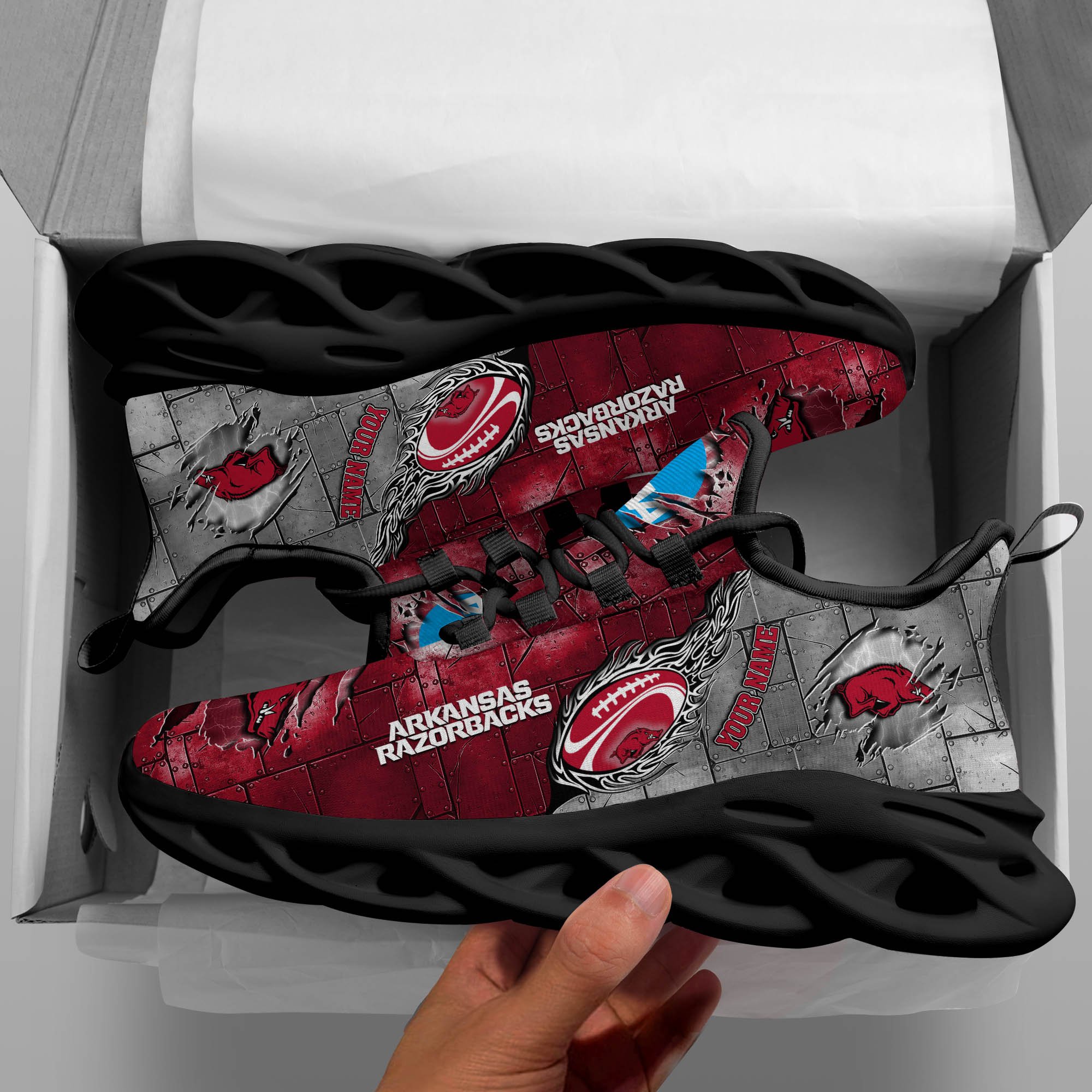 Arkansas Razorbacks Black Max Soul Shoes 2026 Versions, White Max Soul Shoes Custom Your Name PH879