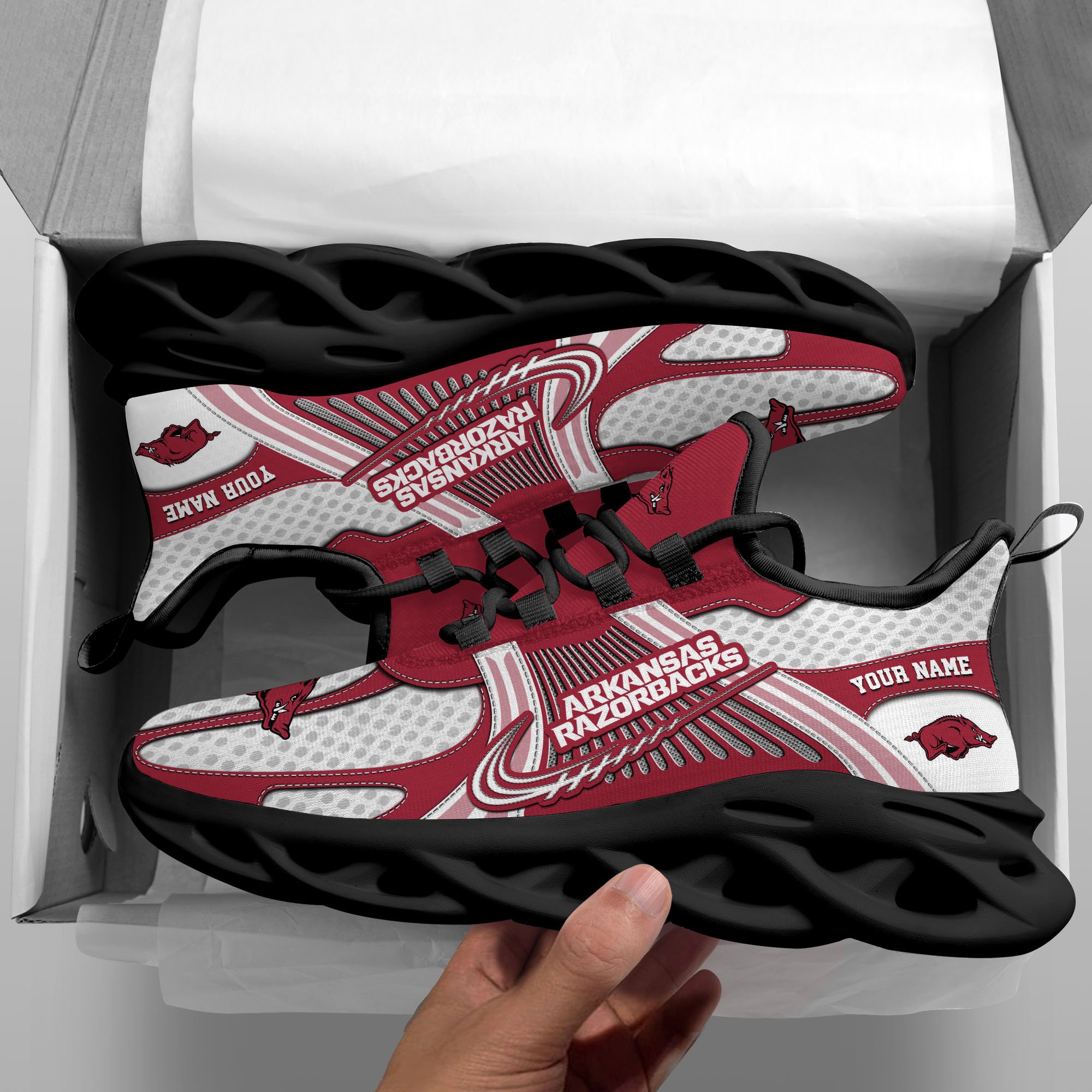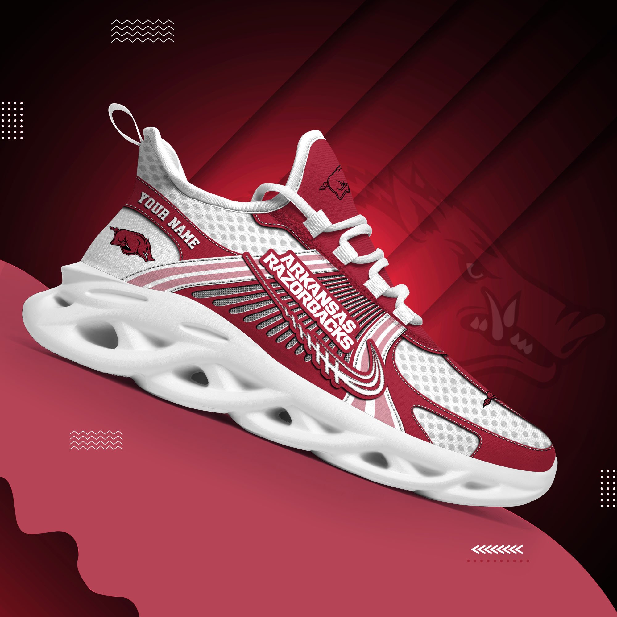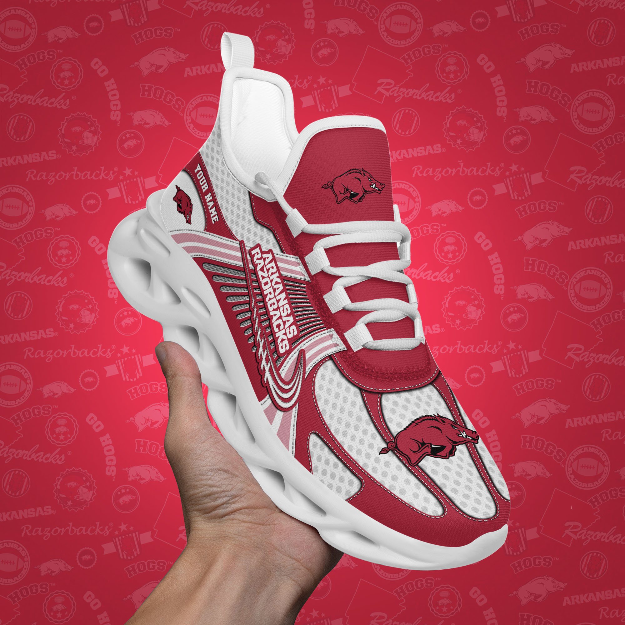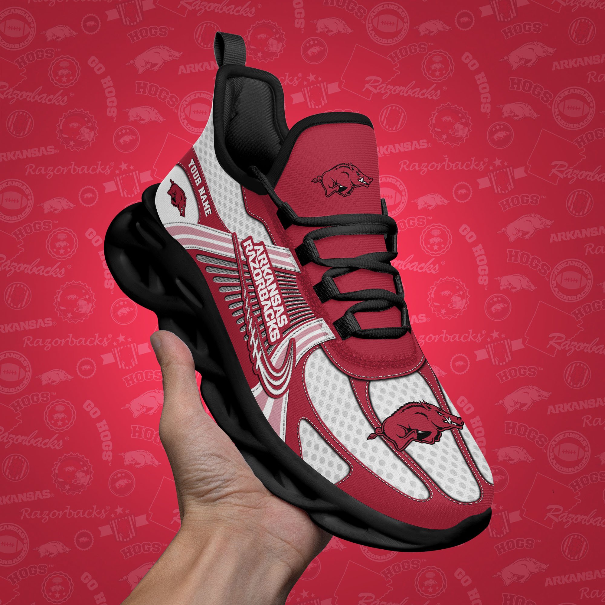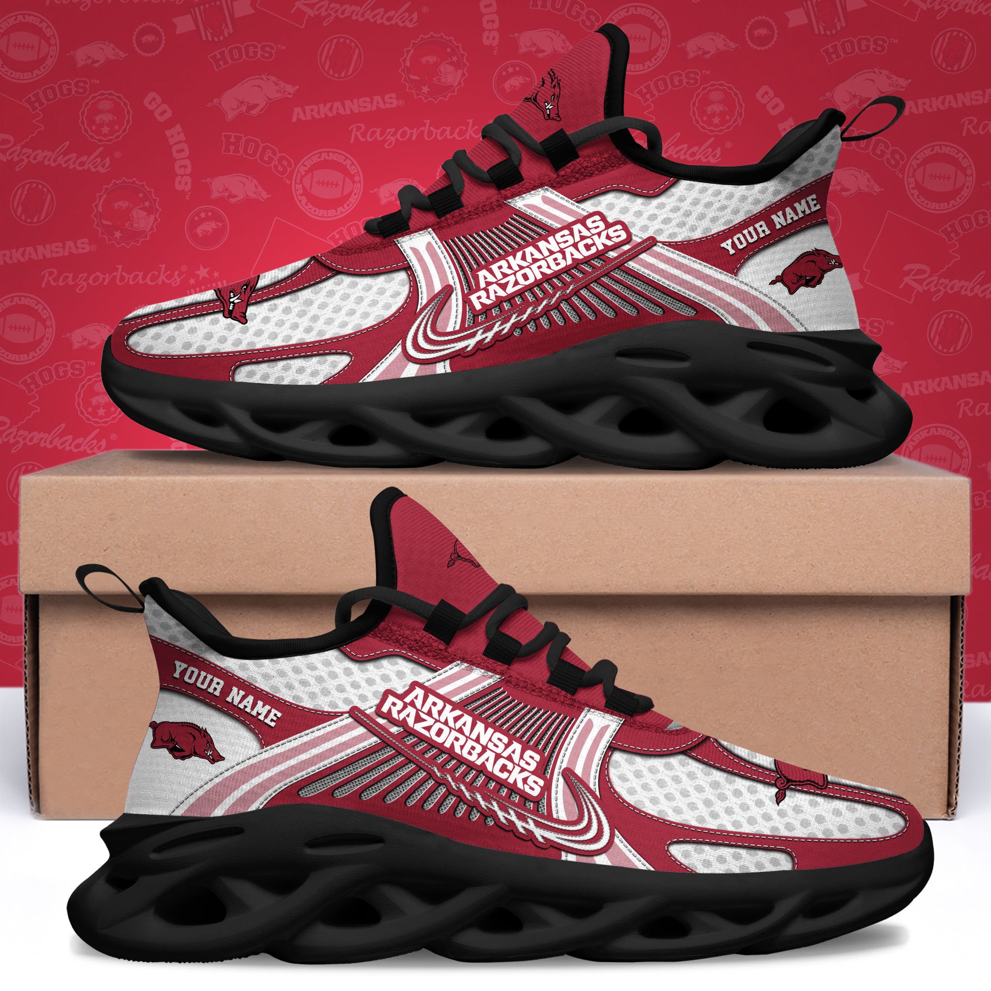 Arkansas Razorbacks Clunky Sneakers Custom Your Name, Sport Sneakers, Sport Gifts For Fan, Gifts For Him