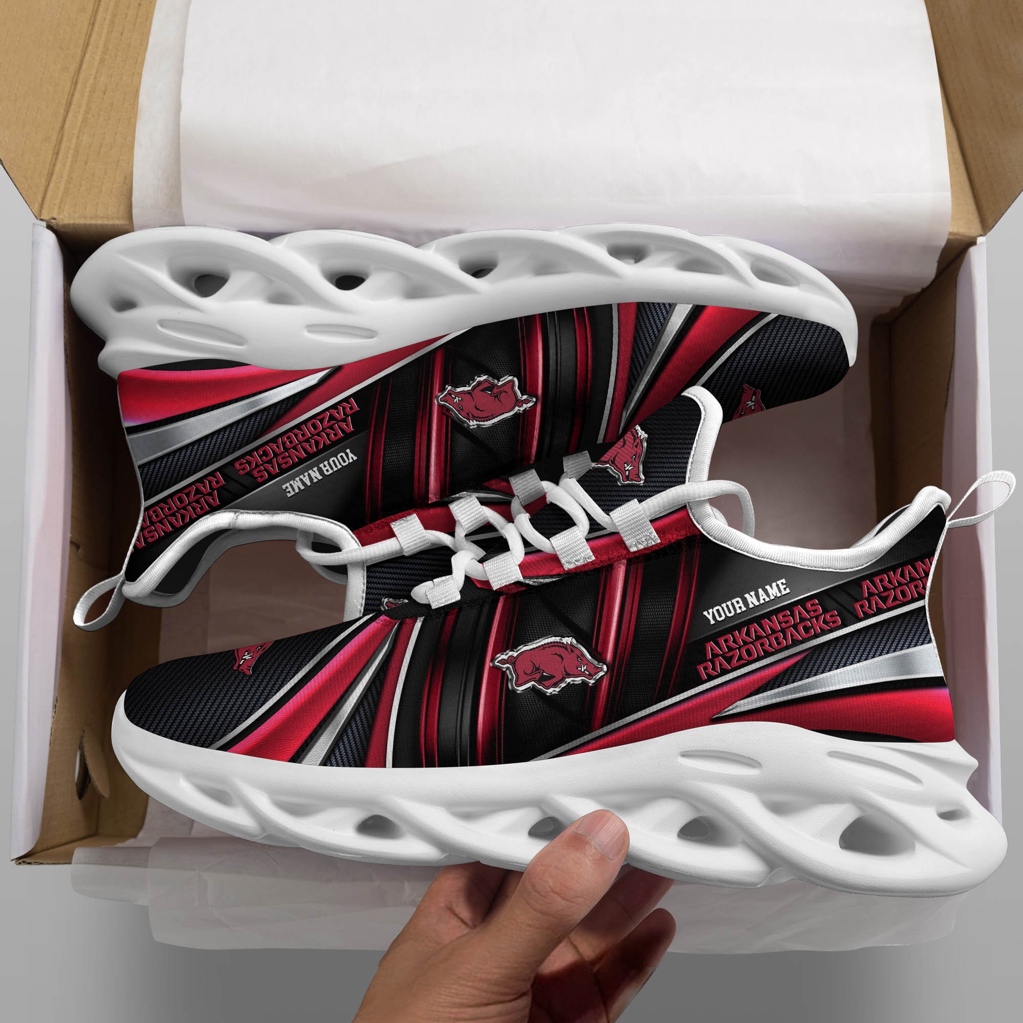 Arkansas Razorbacks White C Sneakers 2026 Version Personalized Your Name, Sport Team Sneakers, Sport Gifts PH892