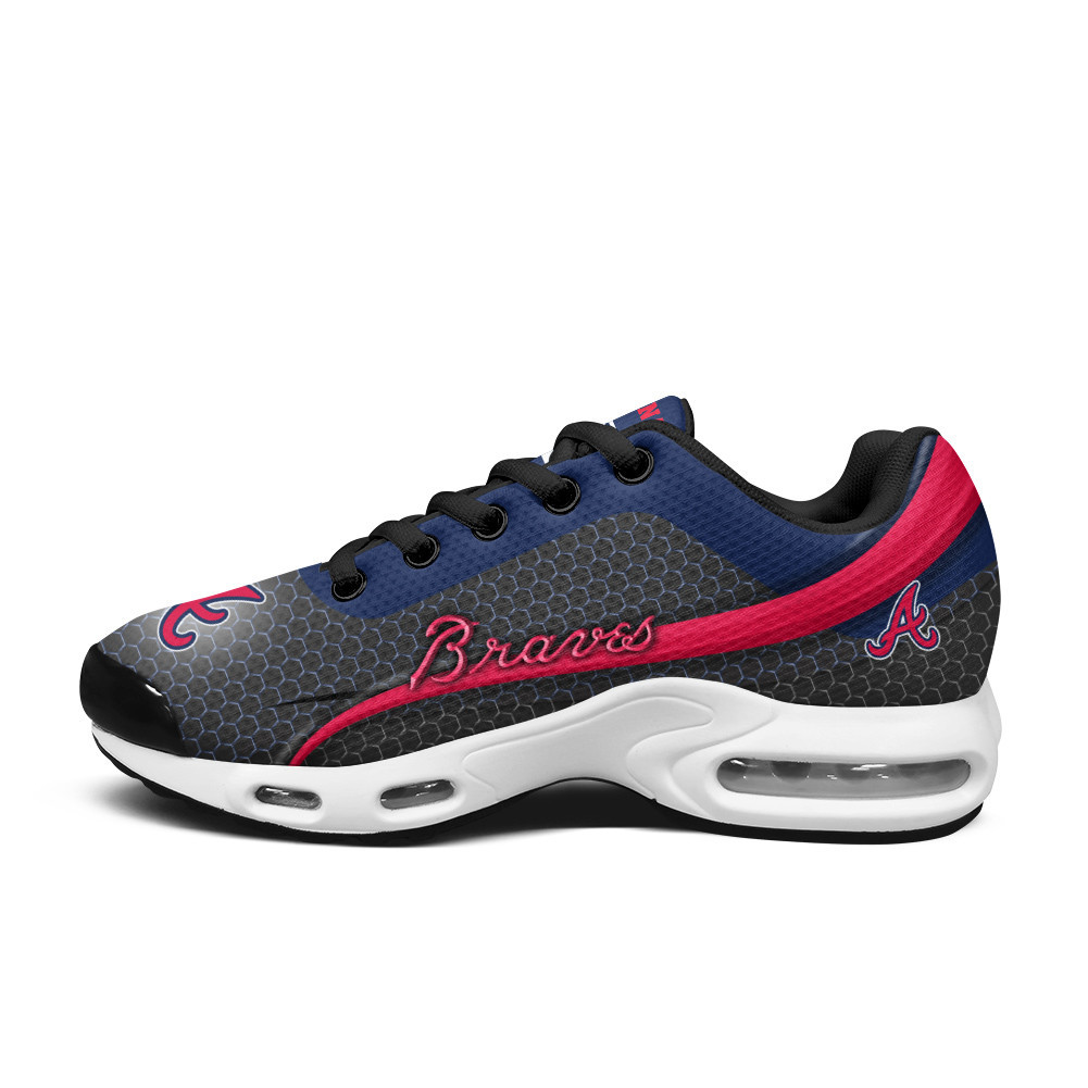 Atlanta Braves Personalized Name Team Colors Wave Line Beehive Pattern TN Air Max Shoes Air Cushion Sneakers