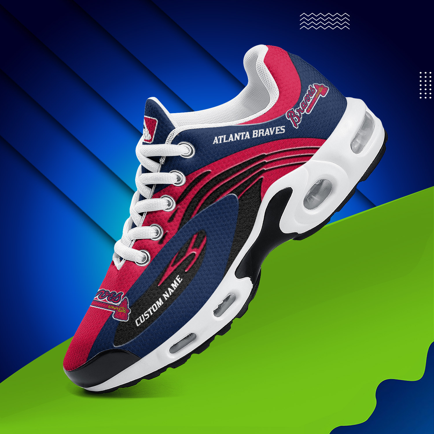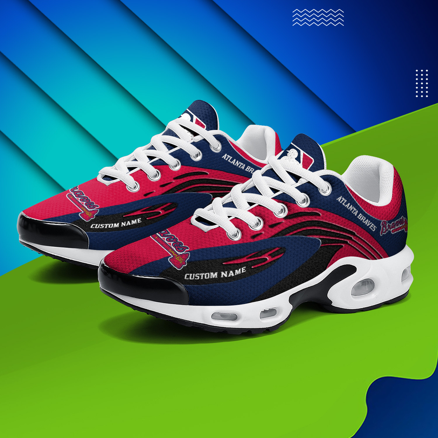 Atlanta Braves Personalized Name Team Logo Mix Colors Wave Line TN Shoes Air Cushion Sneakers