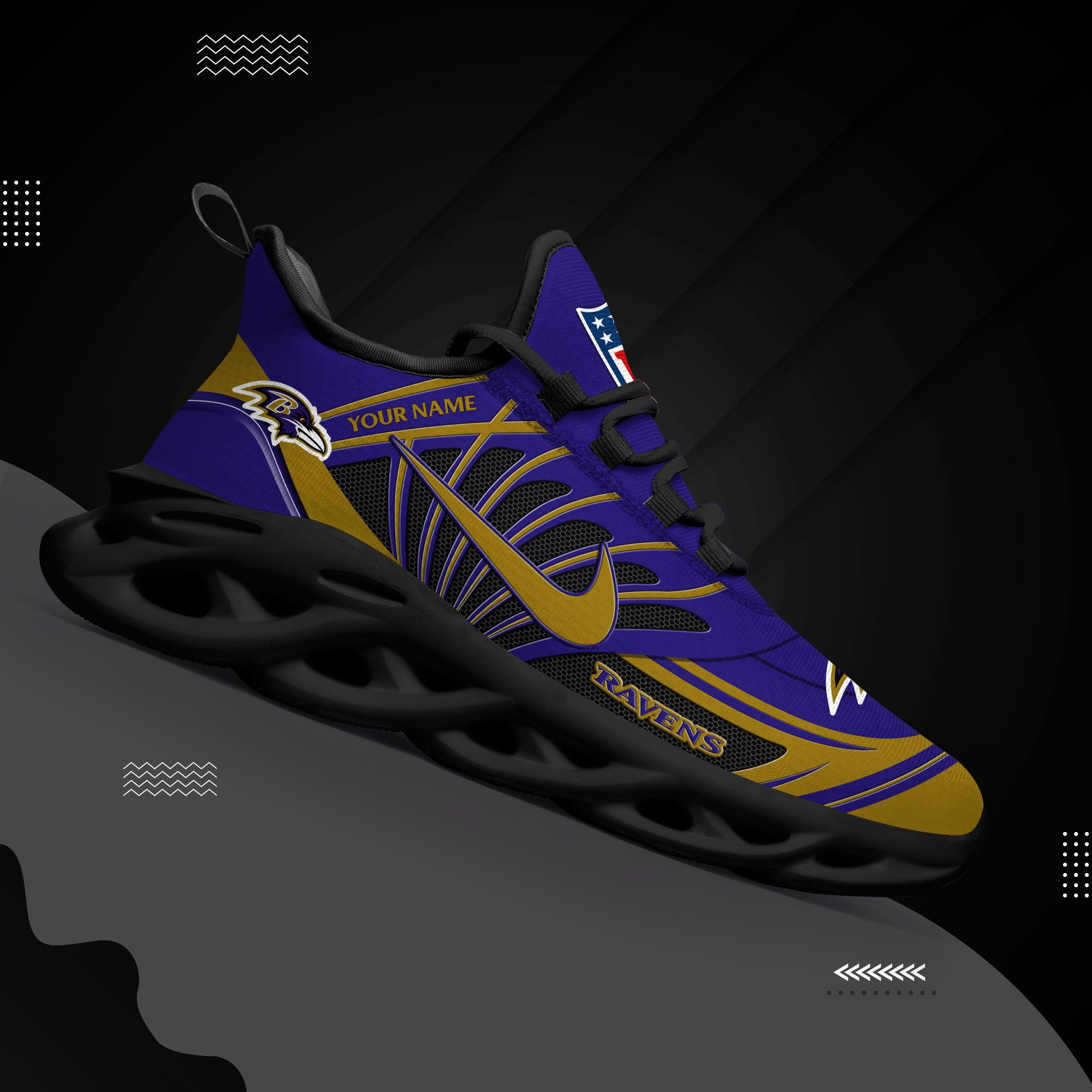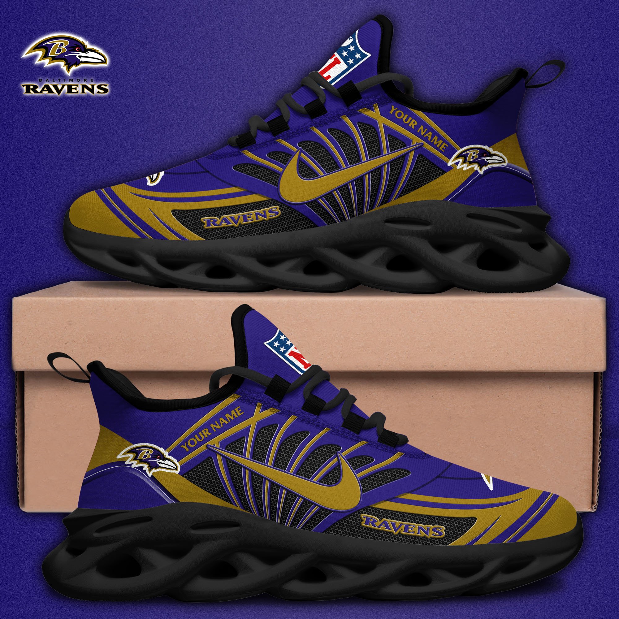 Baltimore Ravens Black Max Soul Shoes 2026 Versions Custom Name 898