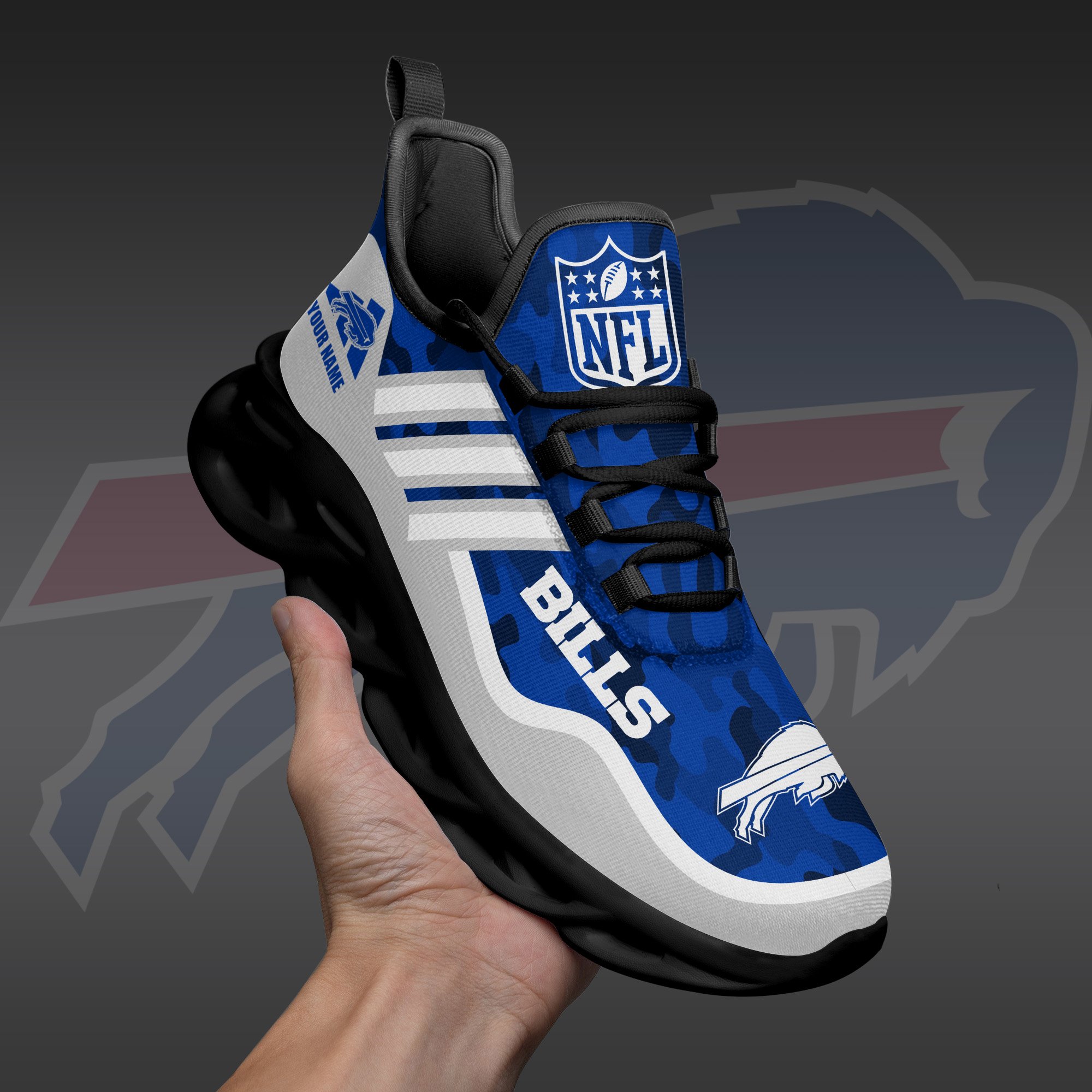 Buffalo Bills Black Max Soul Shoes 2026 Versions Custom Name 430