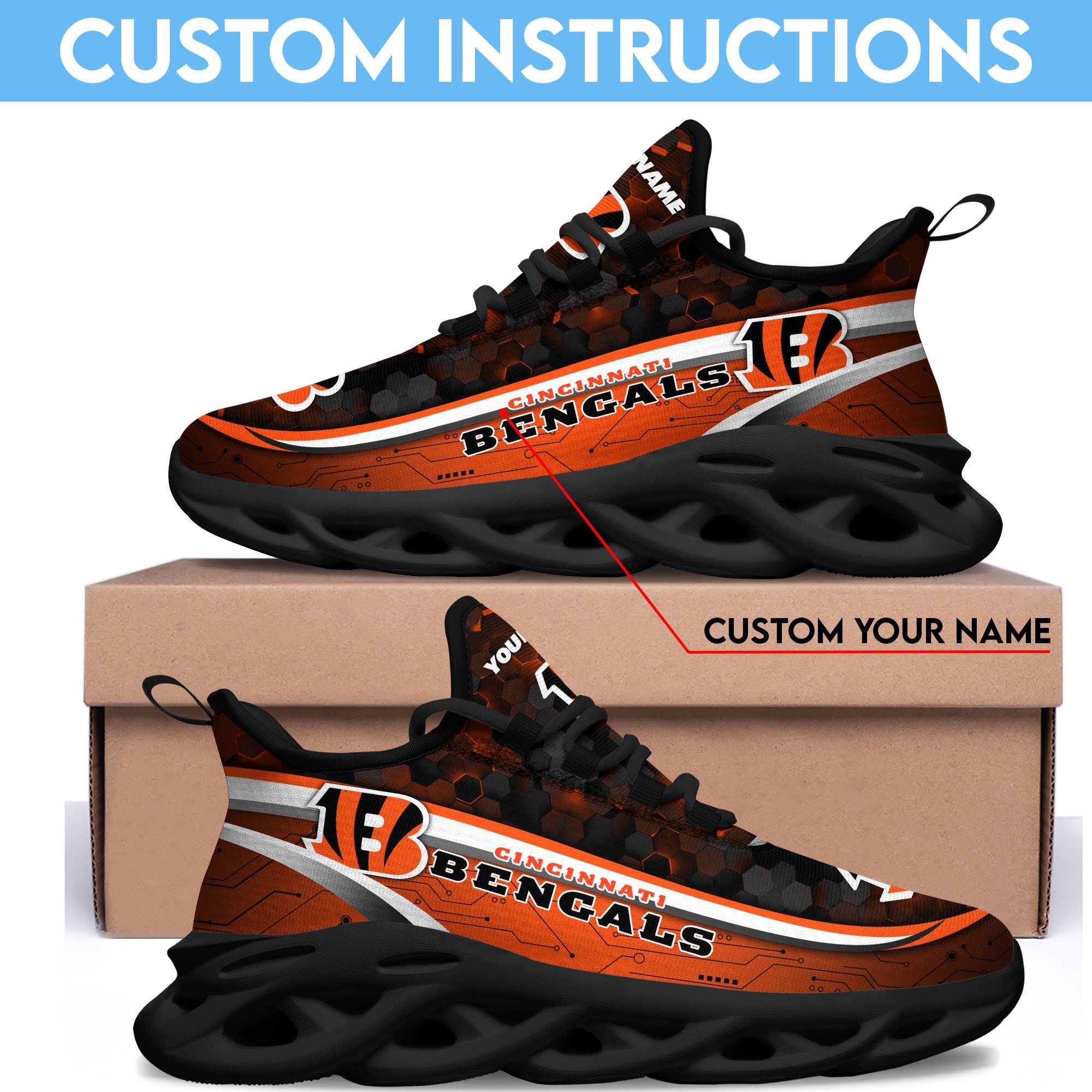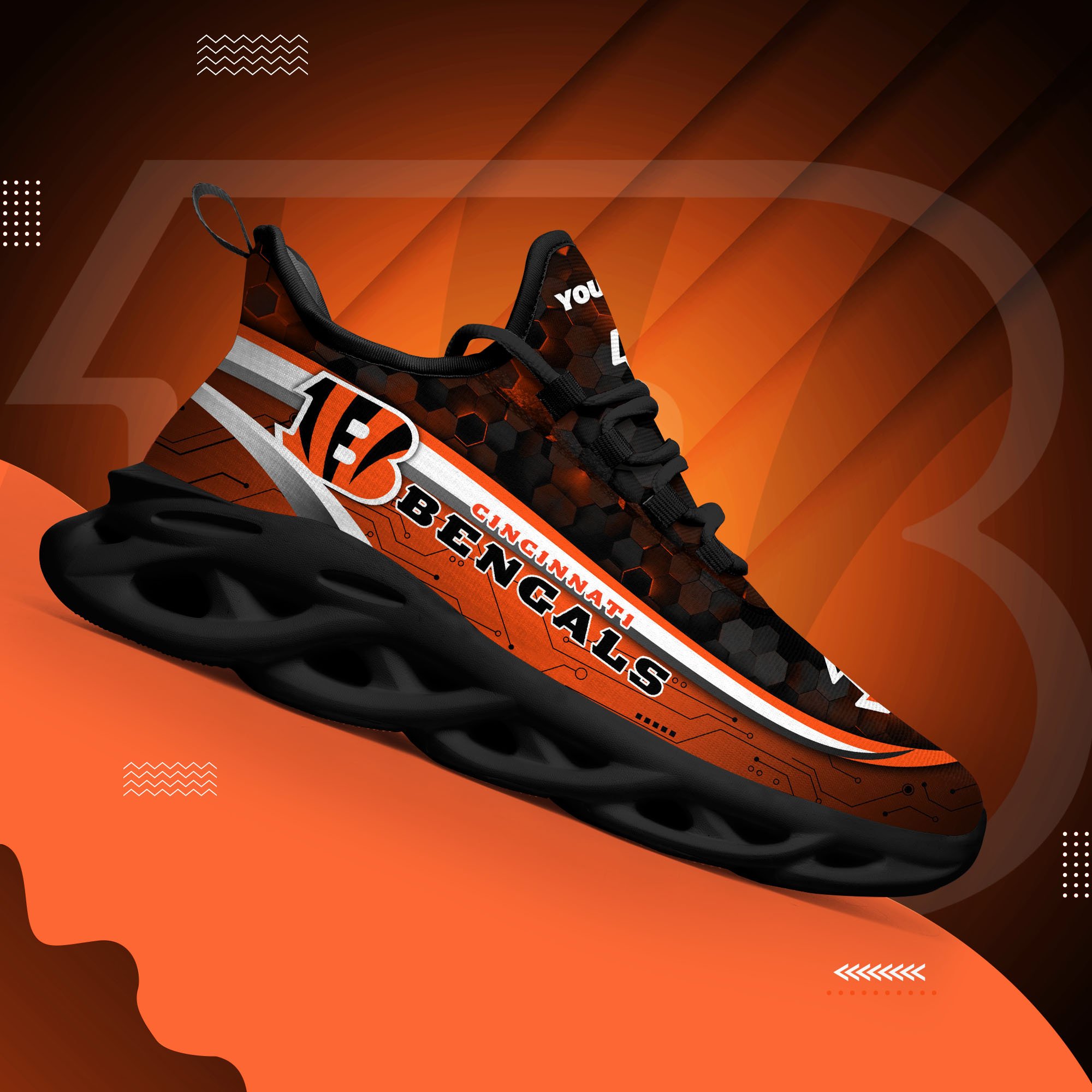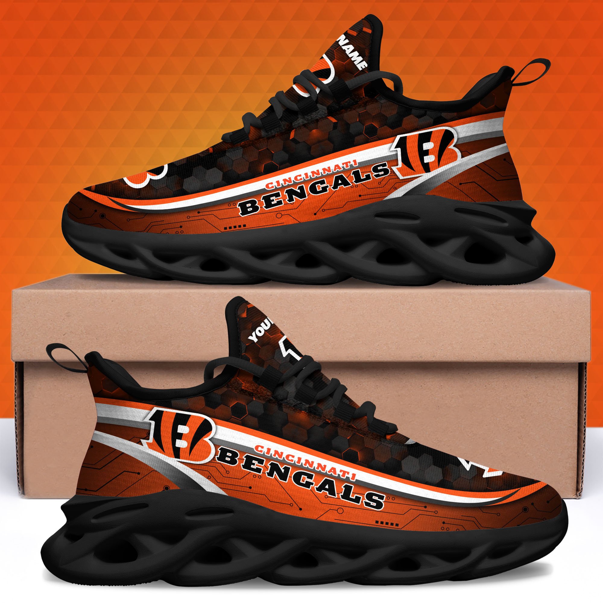 Cincinnati Bengals Black Clunky Sneakers Custom Name, Max Soul Shoes, Sport Gifts