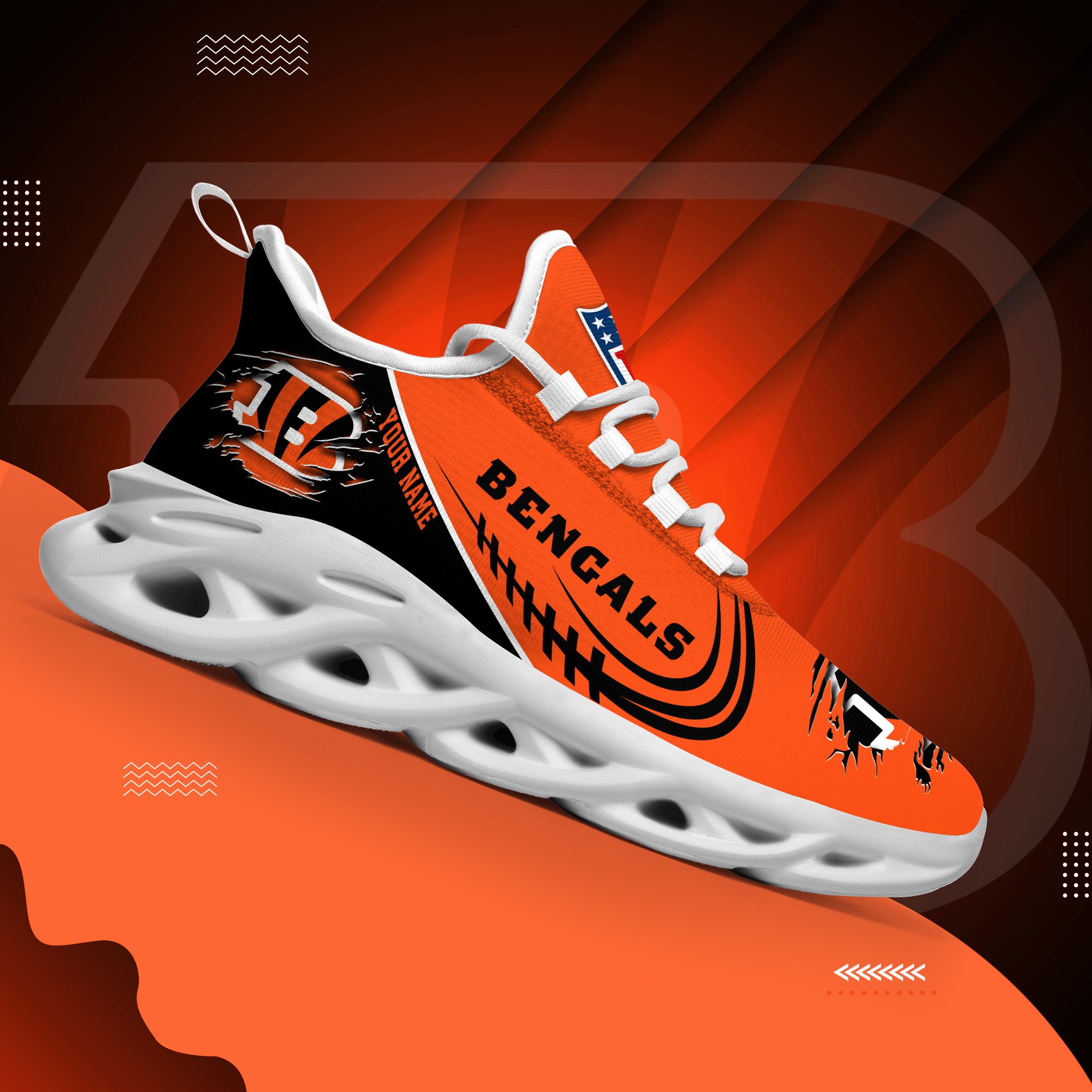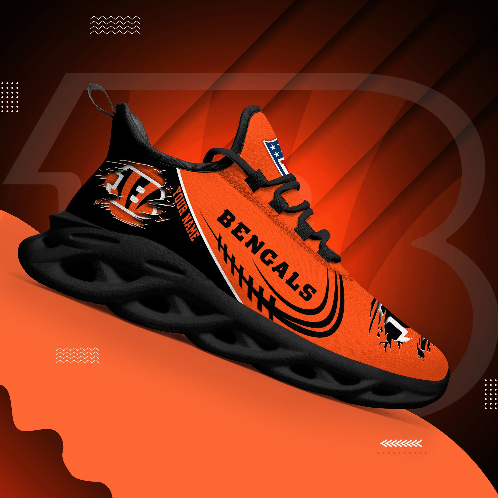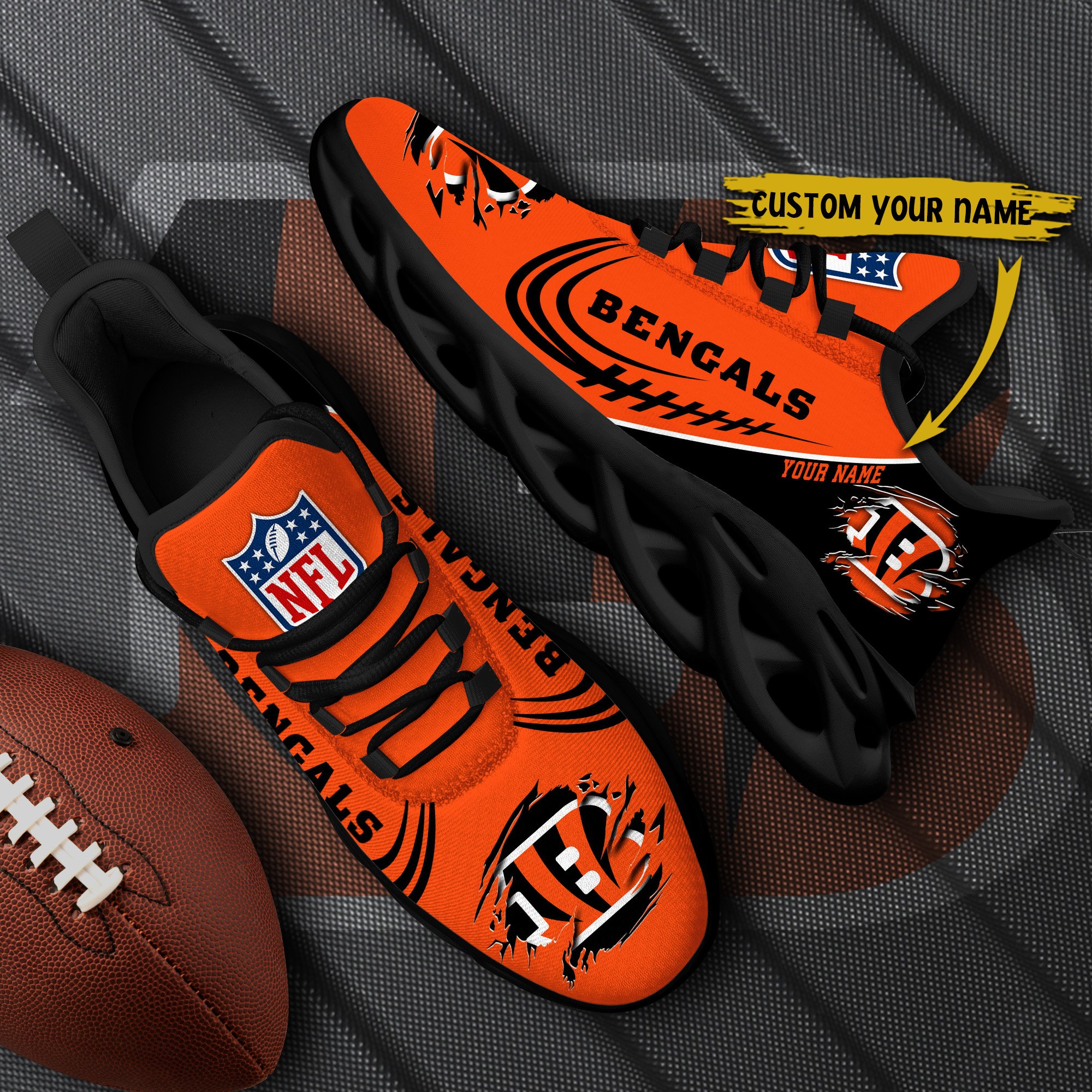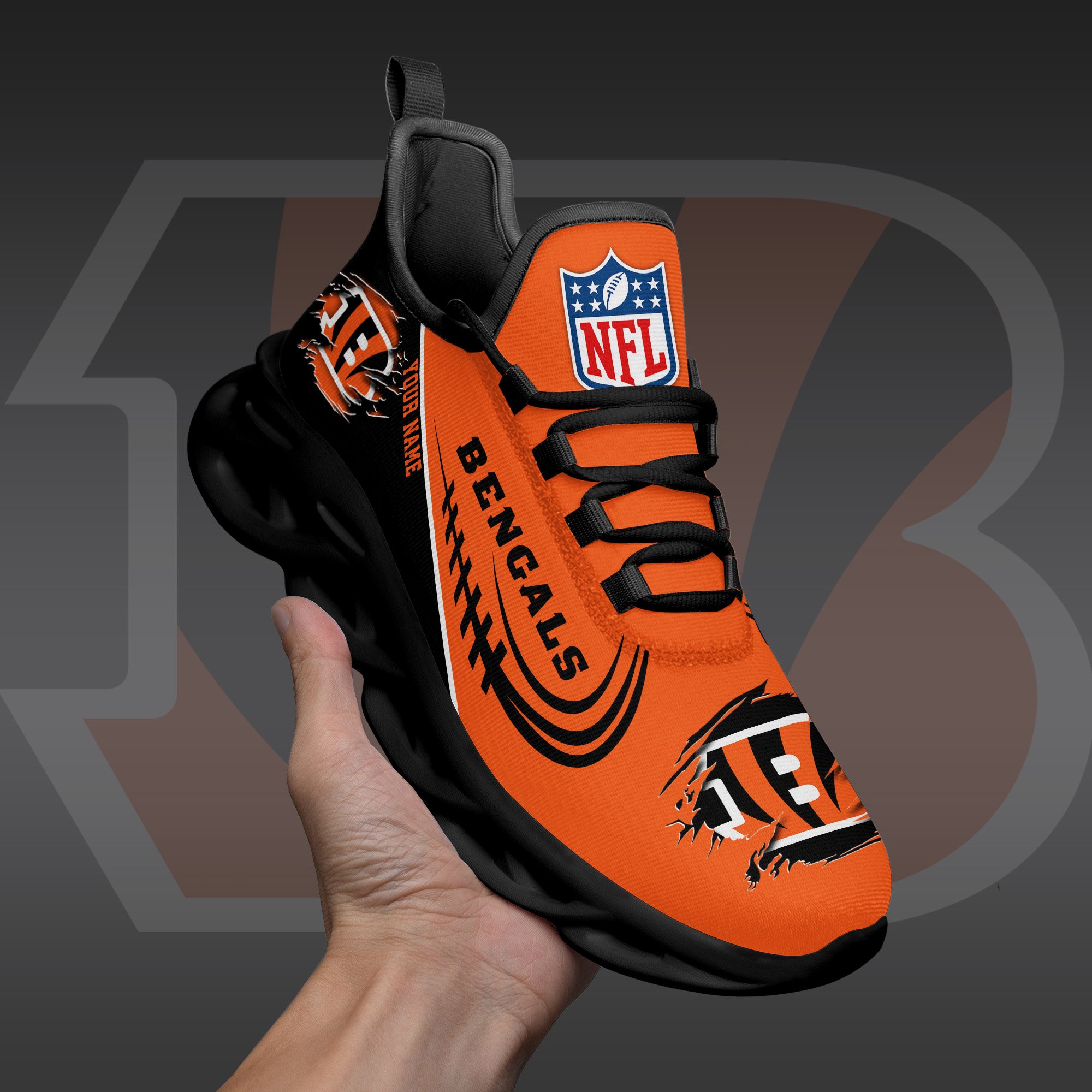Cincinnati Bengals Black Max Soul Shoes 2026 Versions Custom Name 003