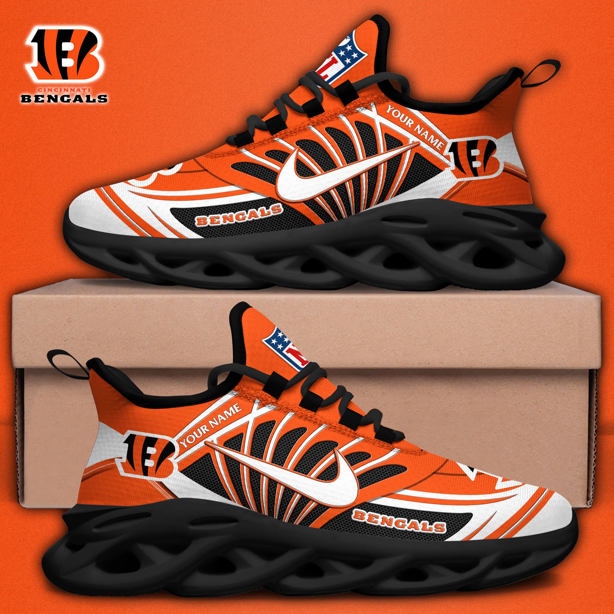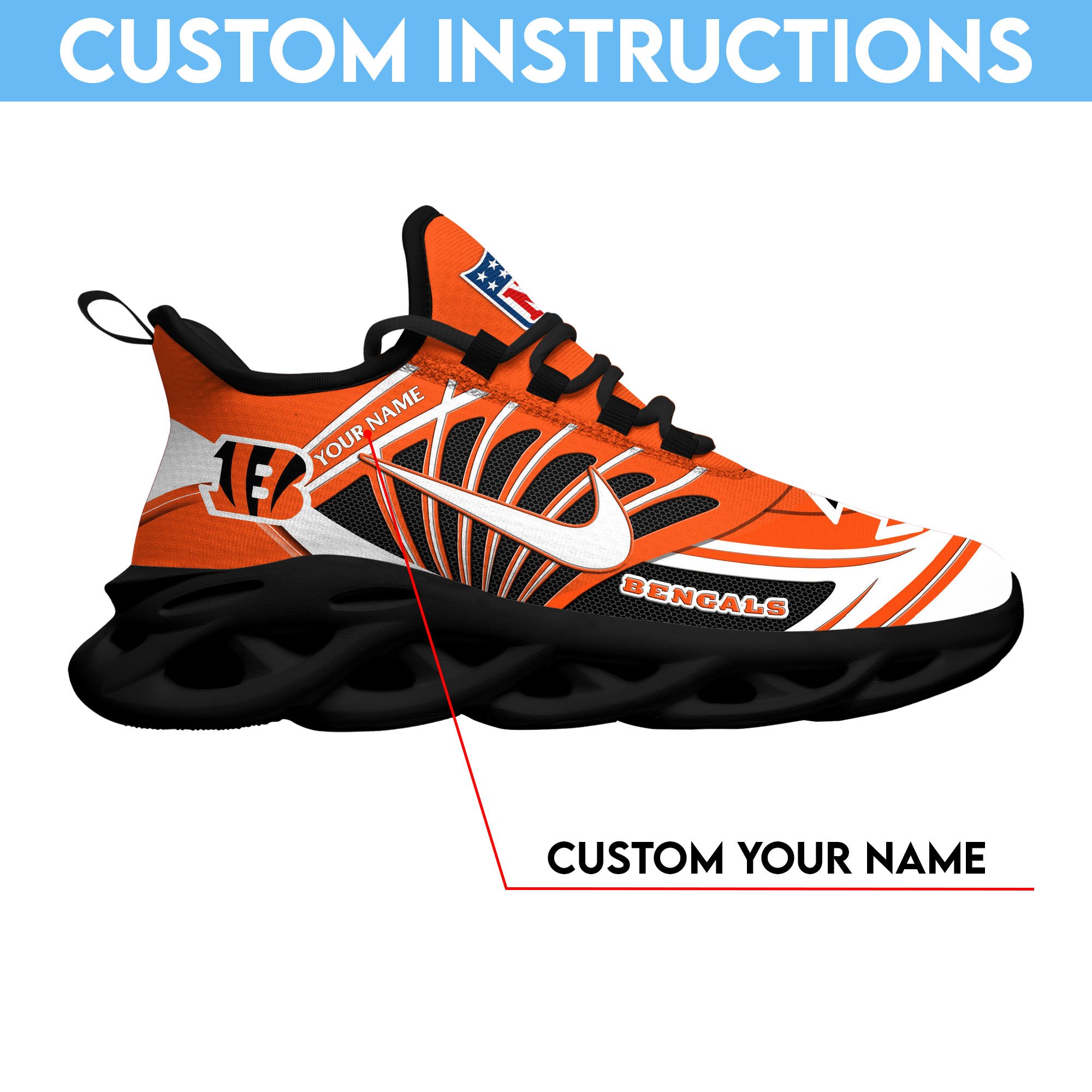 Cincinnati Bengals Black Max Soul Shoes 2026 Versions Custom Name 898