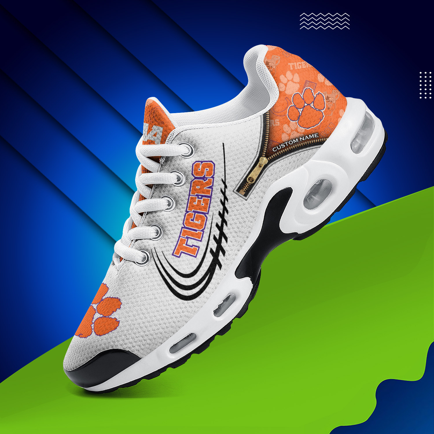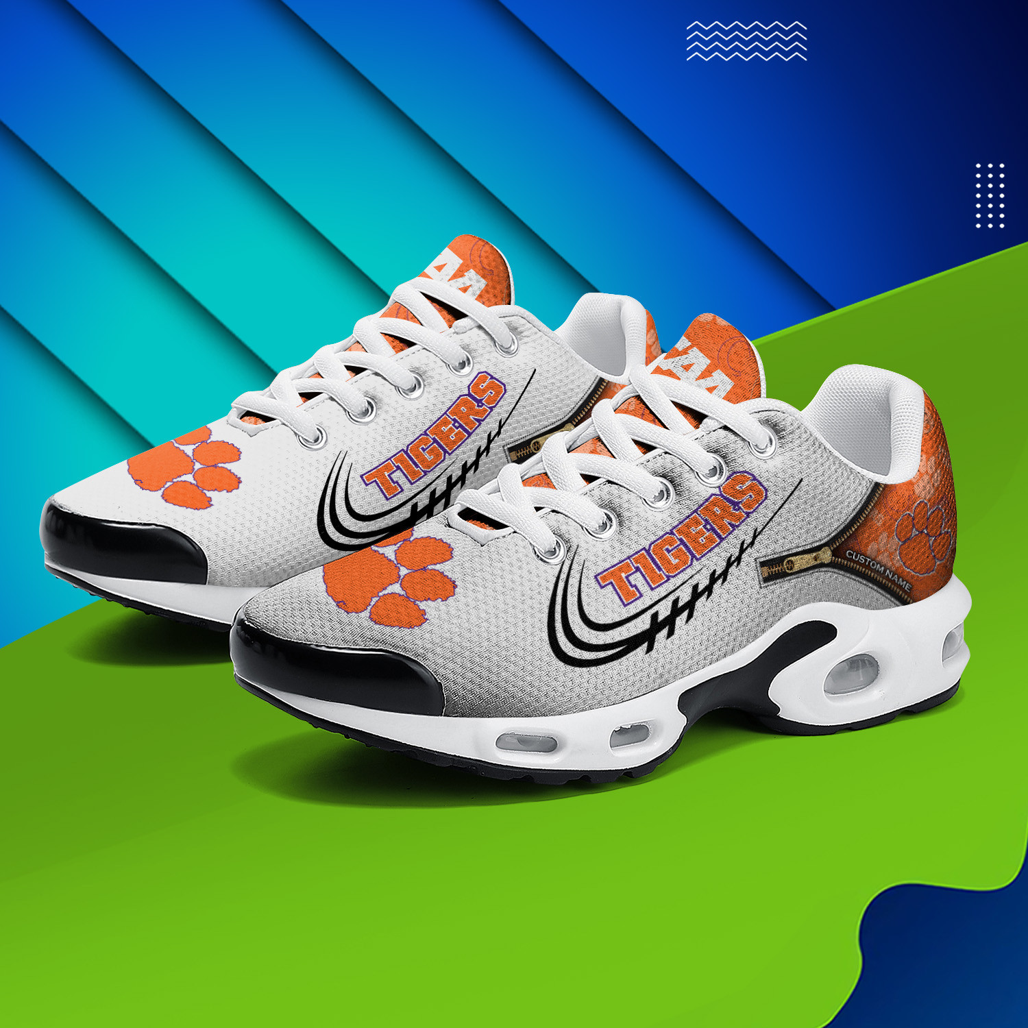 Clemson Tigers Personalized Name Team Logo Mix Colors Zipped Line TN Shoes Air Cushion Sneakers
