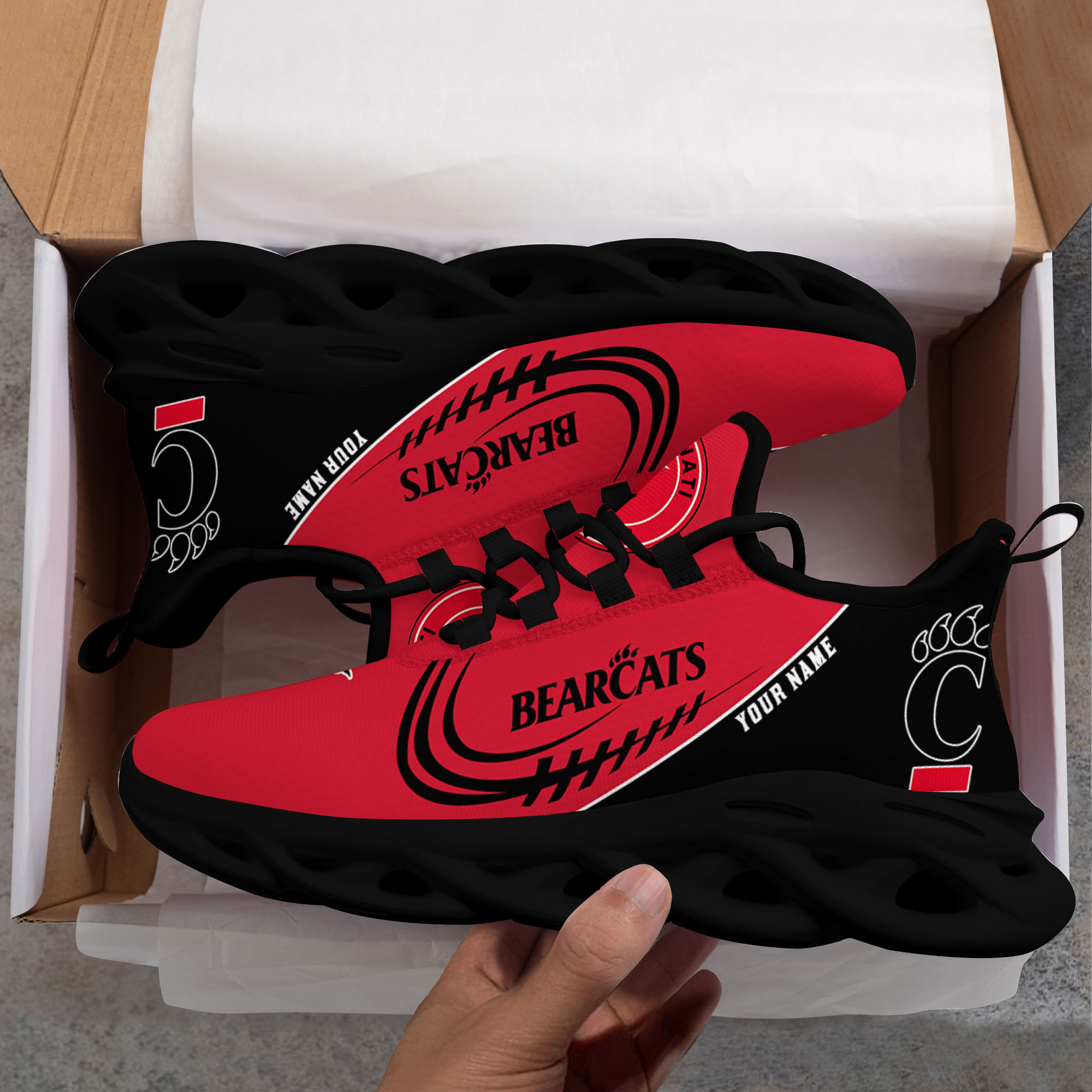 Custom Name Cincinnati Bearcats PERSONALIZED MAX SOUL SHOES DS006
