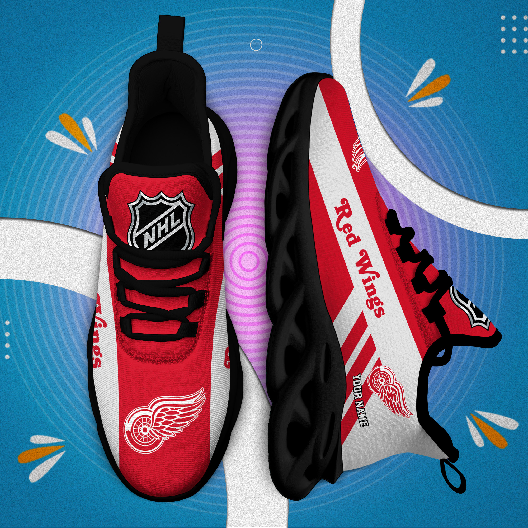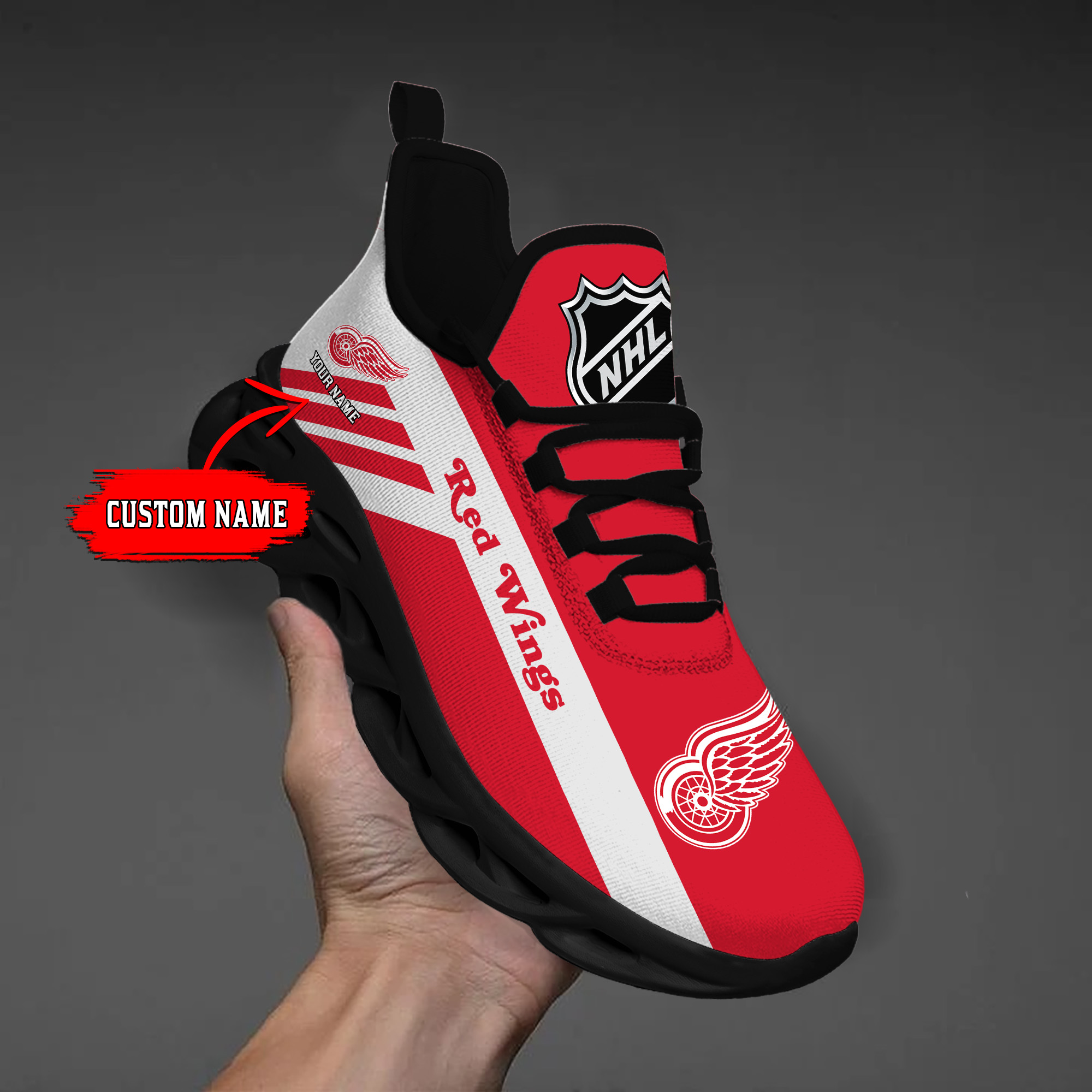 Custom Name Detroit Red Wings PERSONALIZED MAX SOUL SHOES DS004