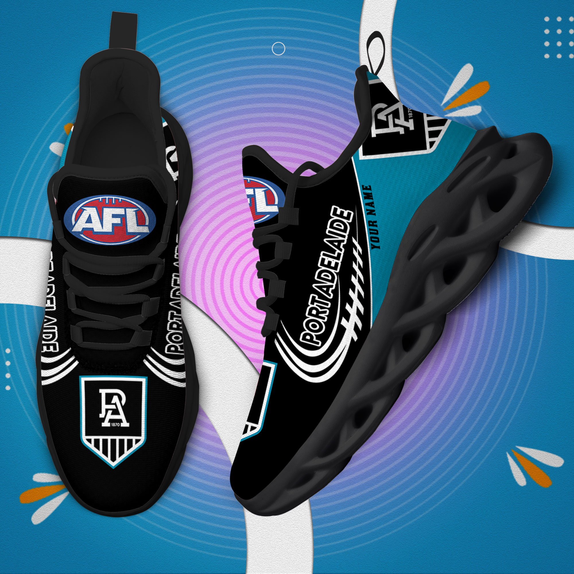 Custom Name Port Adelaide Power PERSONALIZED MAX SOUL SHOES DS006