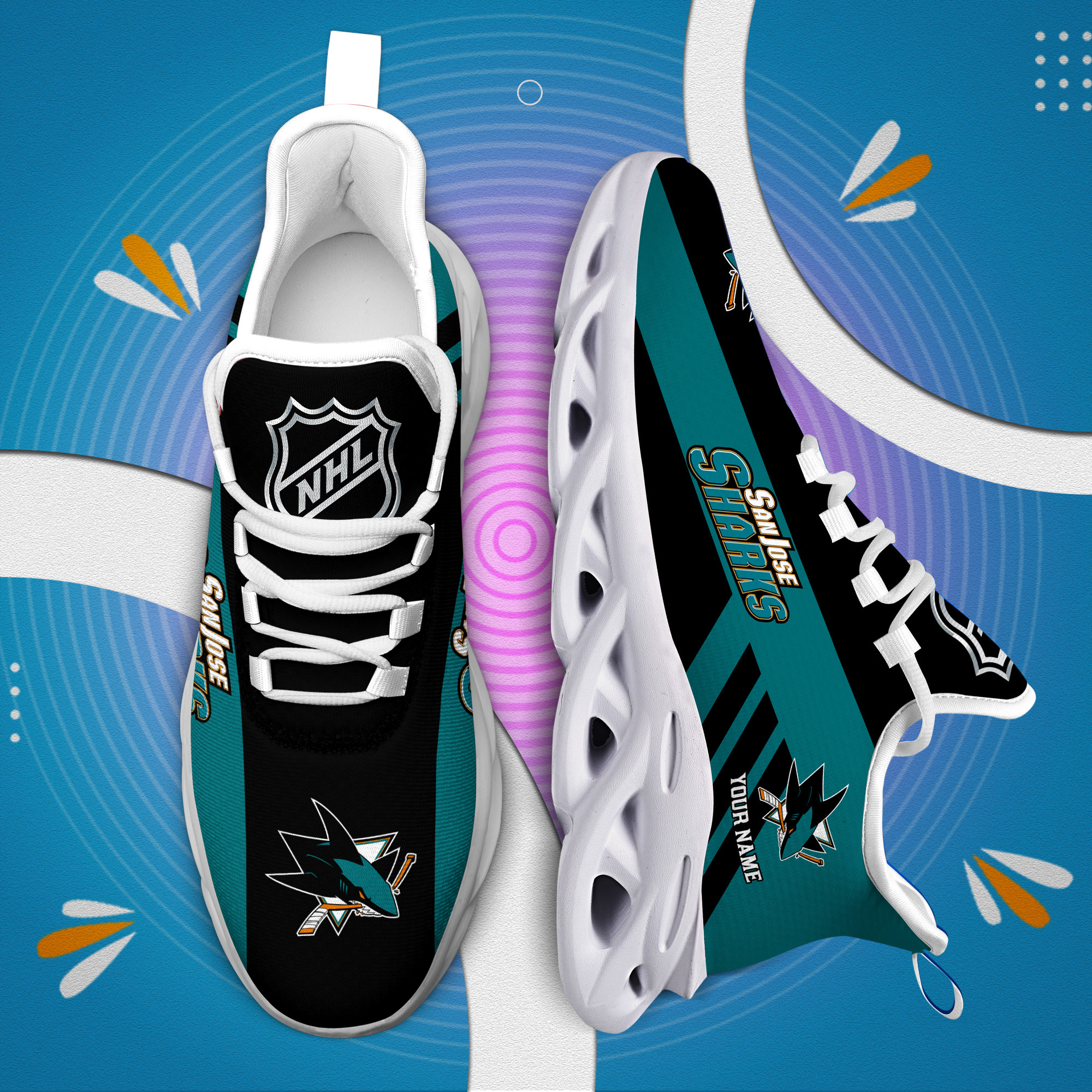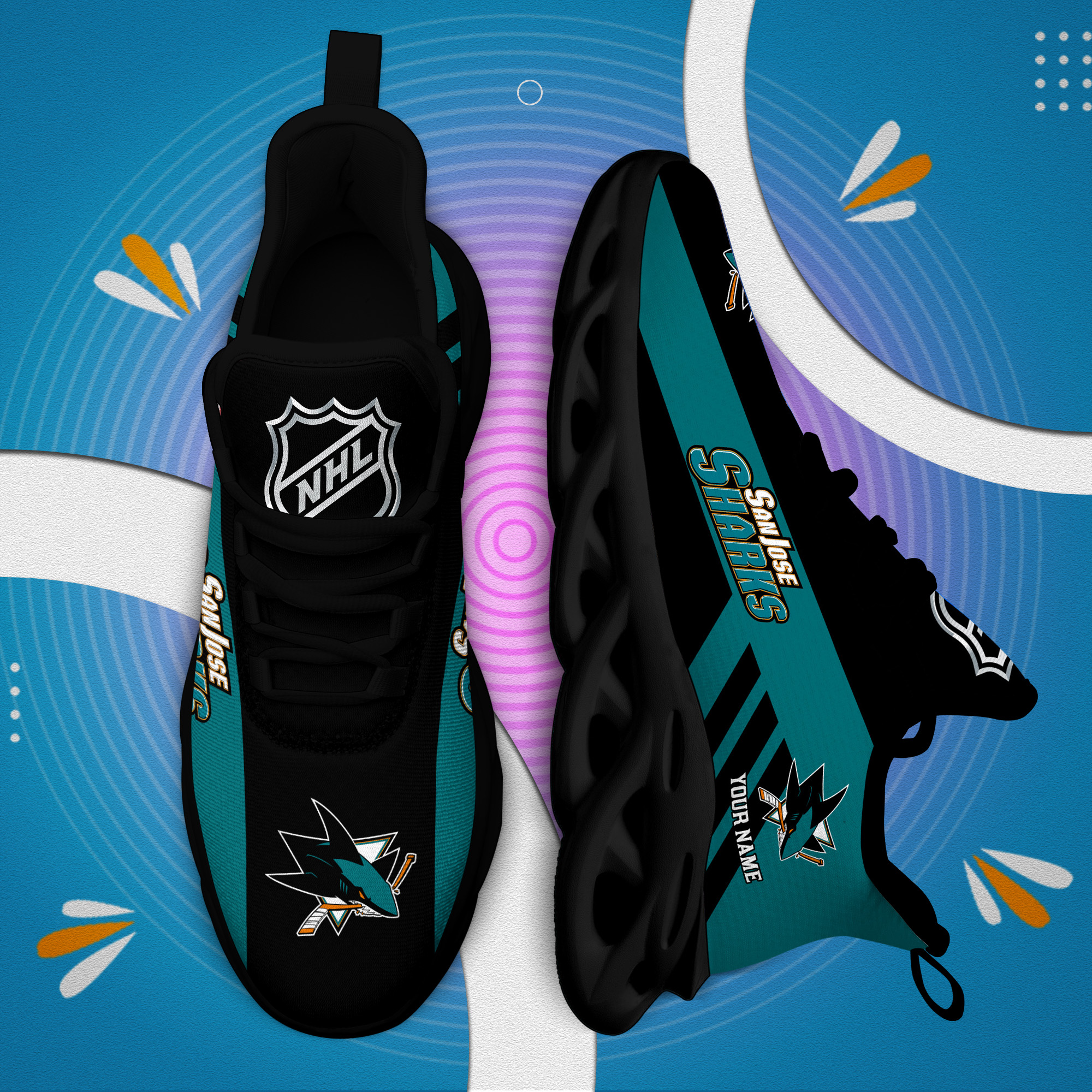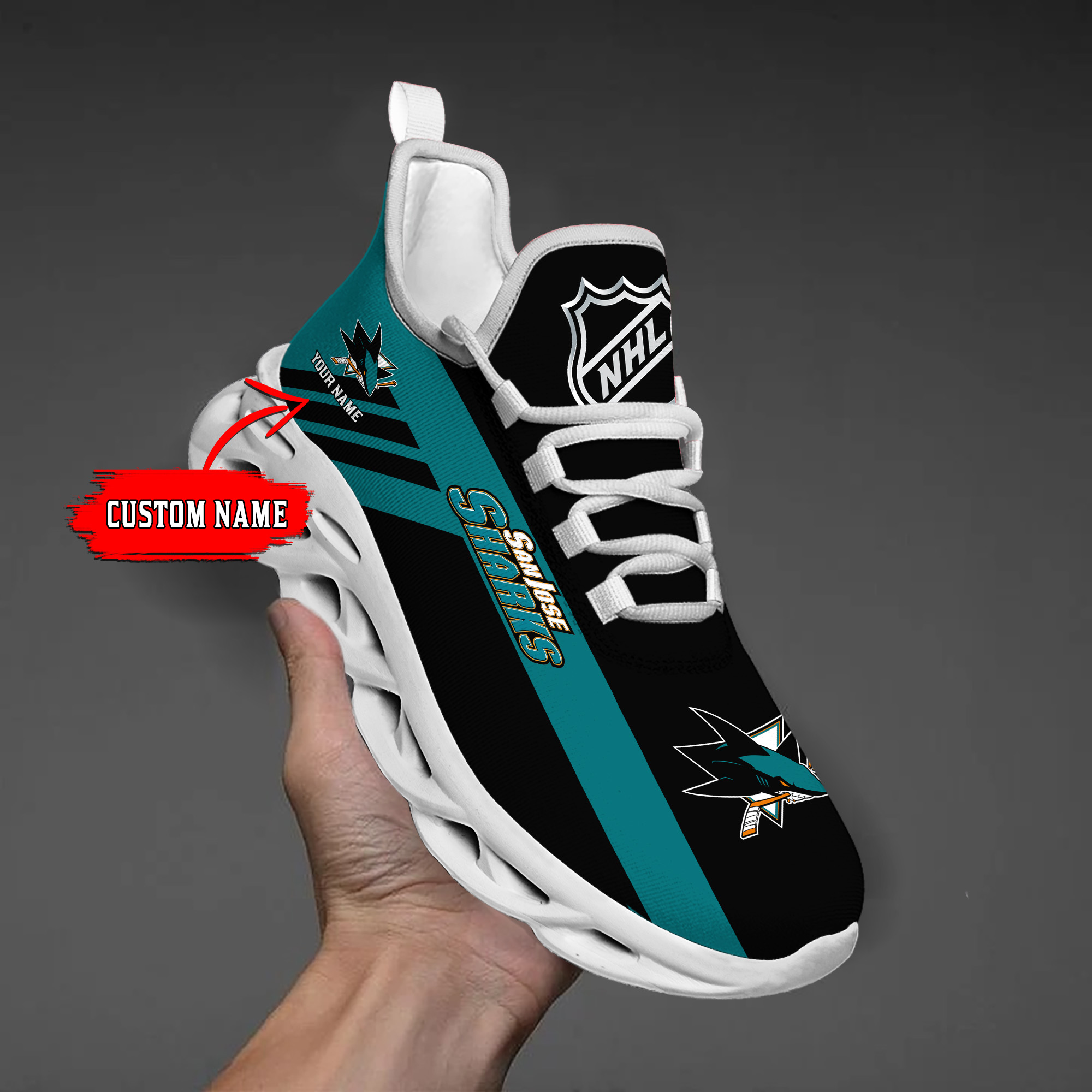 Custom Name San Jose Sharks PERSONALIZED MAX SOUL SHOES DS004
