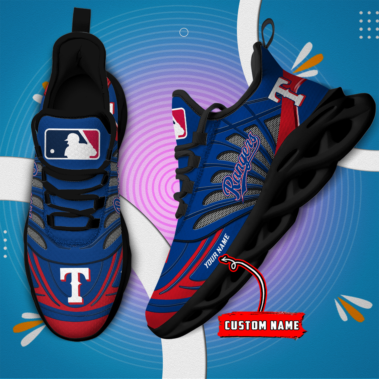 Custom Name Texas Rangers PERSONALIZED MAX SOUL SHOES DS005