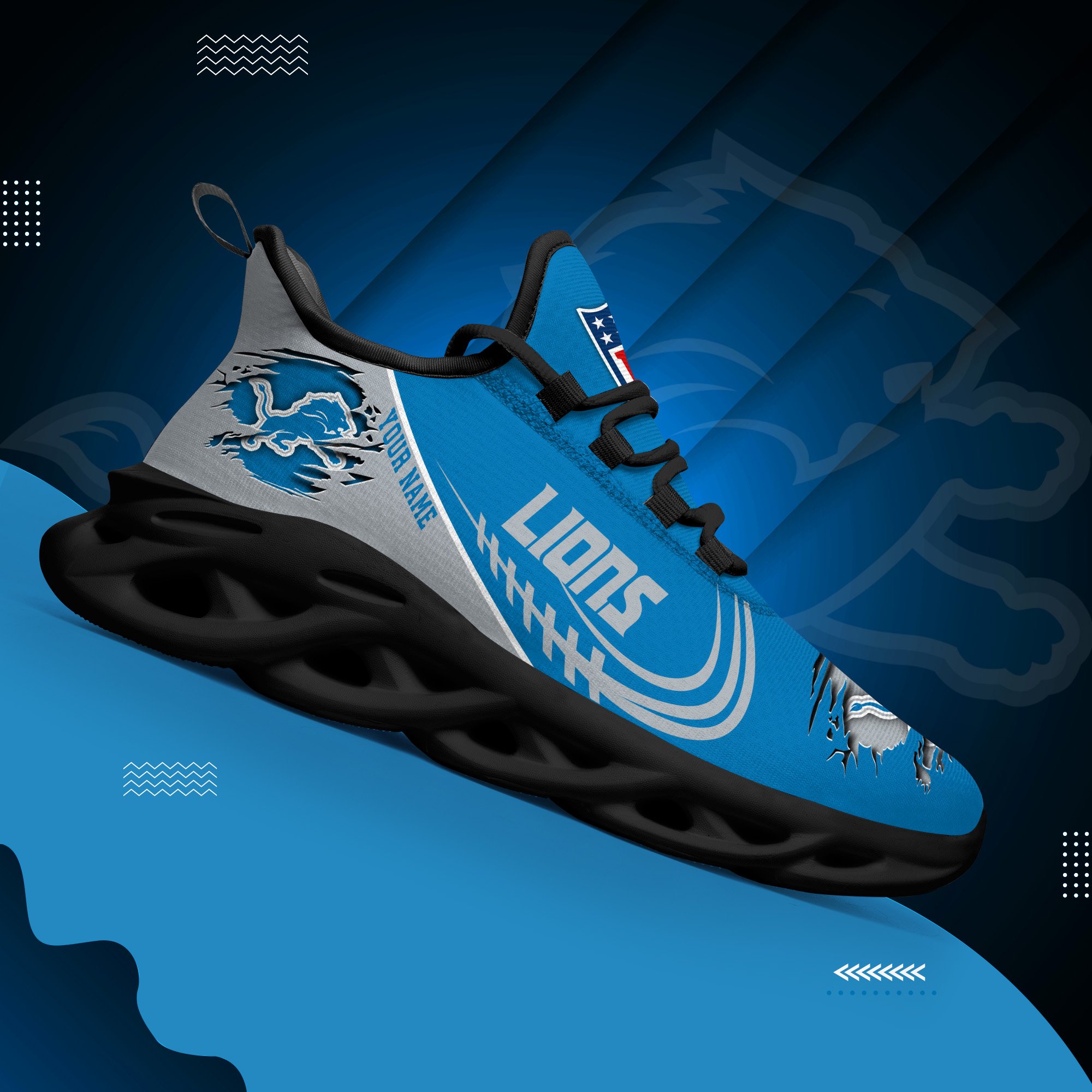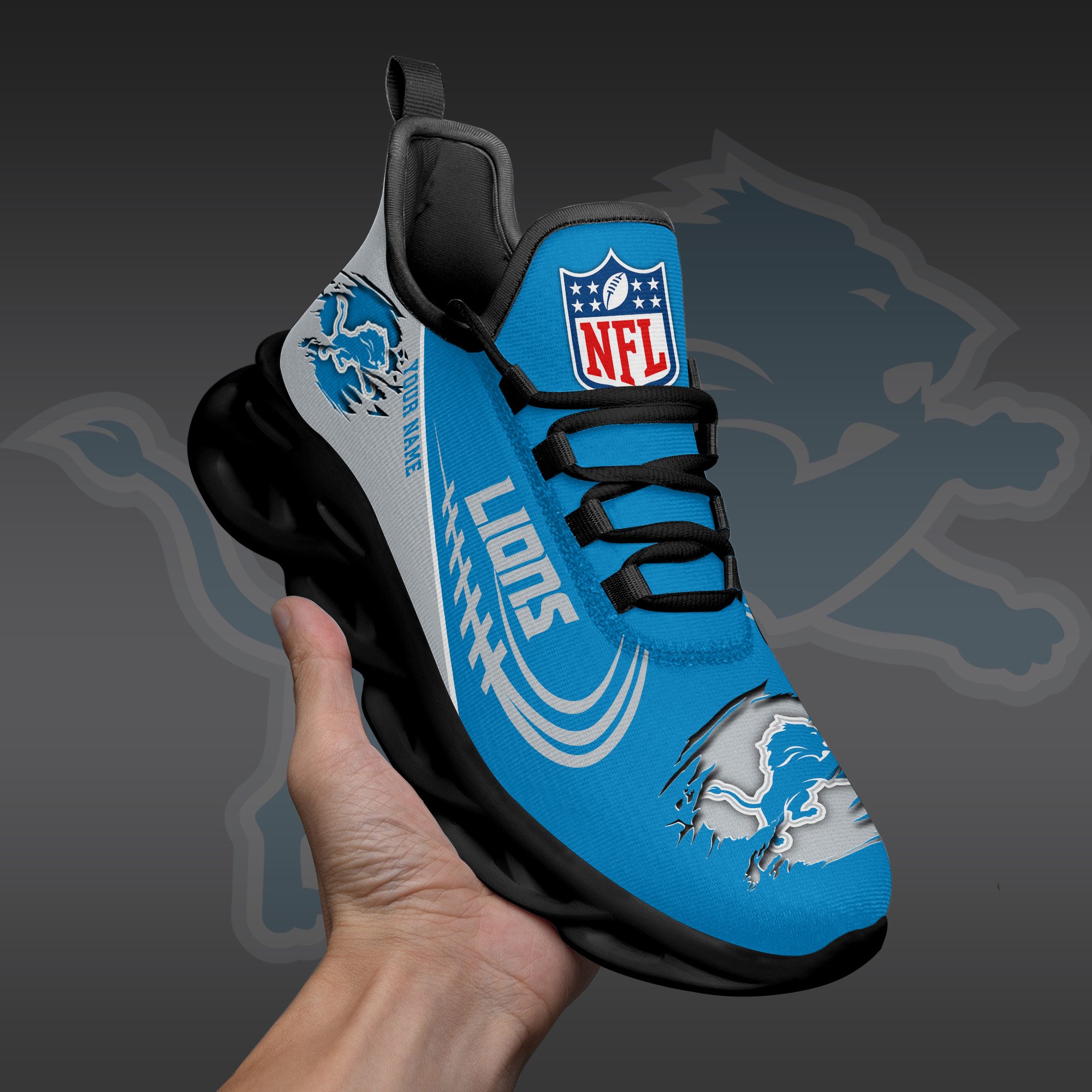 Detroit Lions Black Max Soul Shoes 2026 Versions Custom Name 003