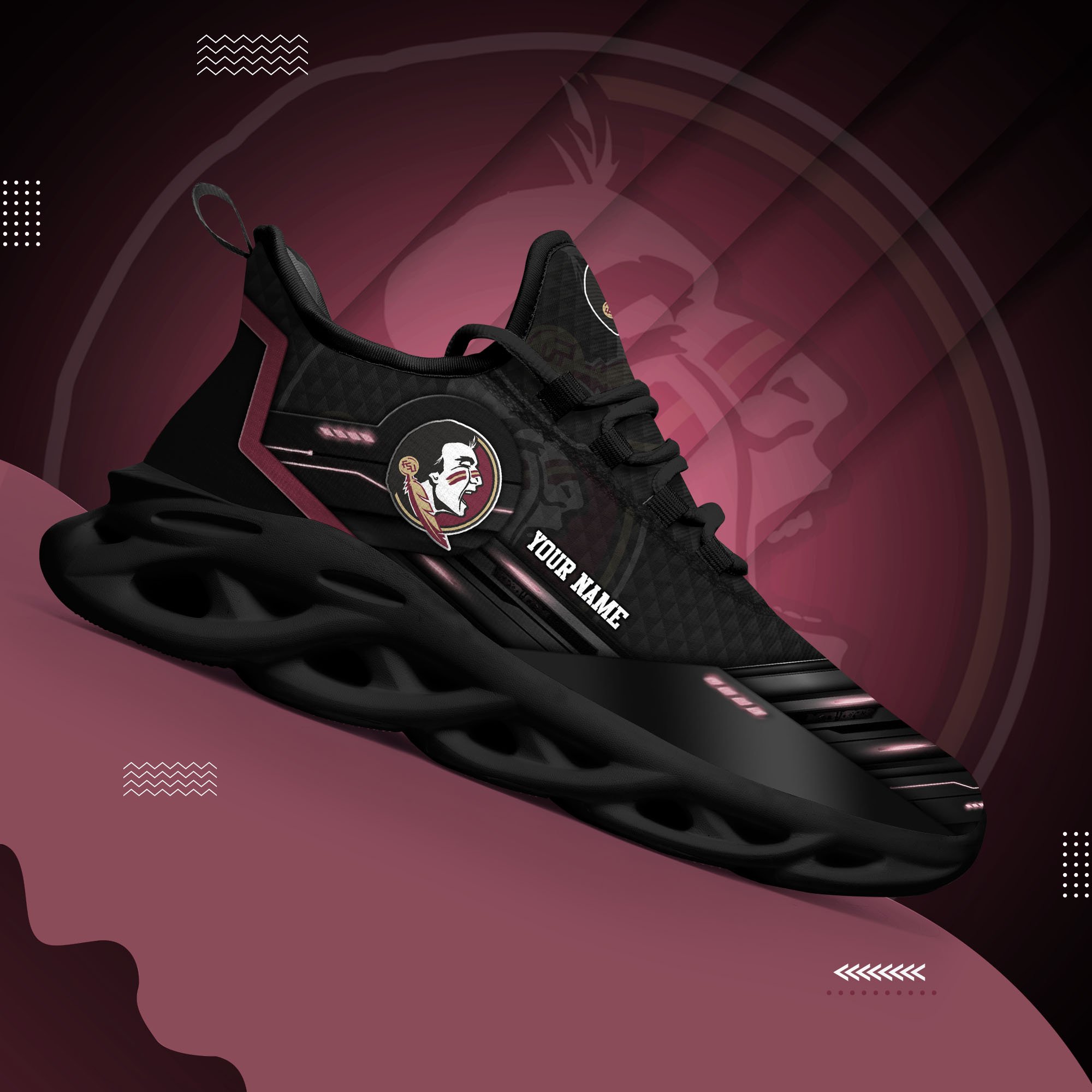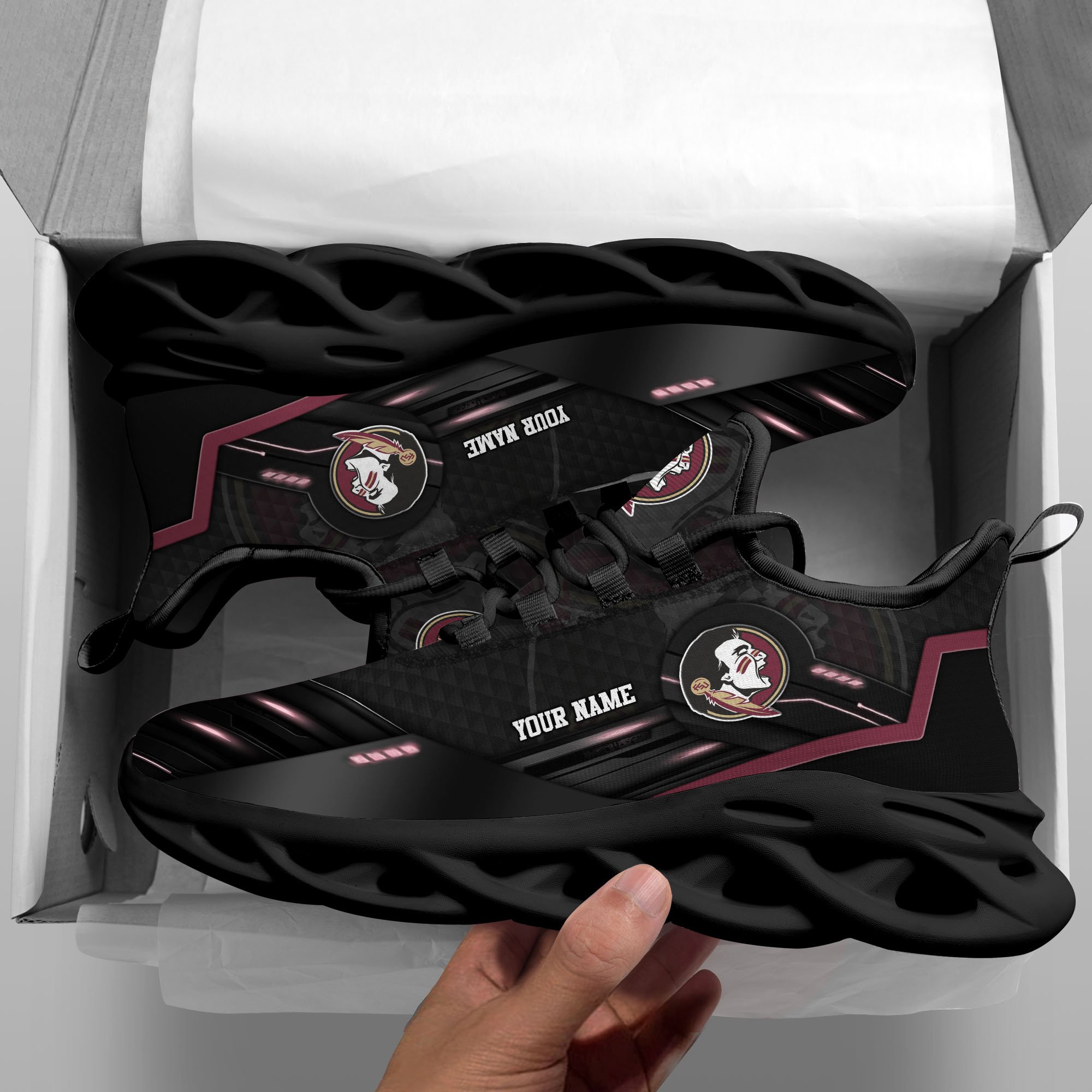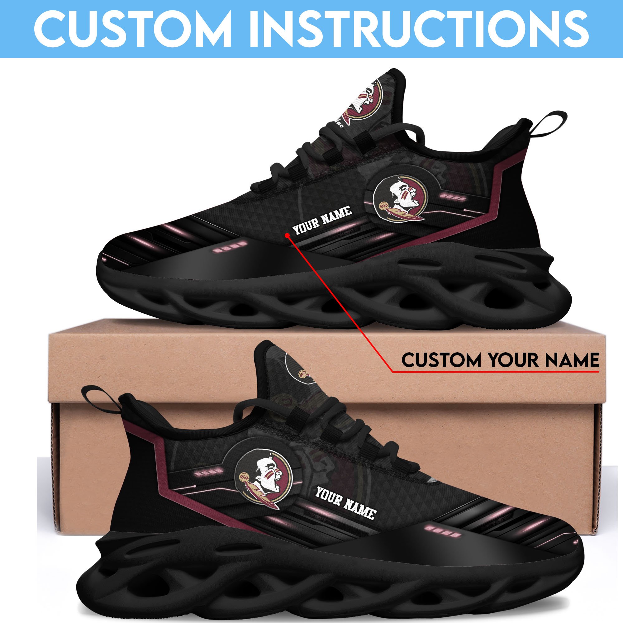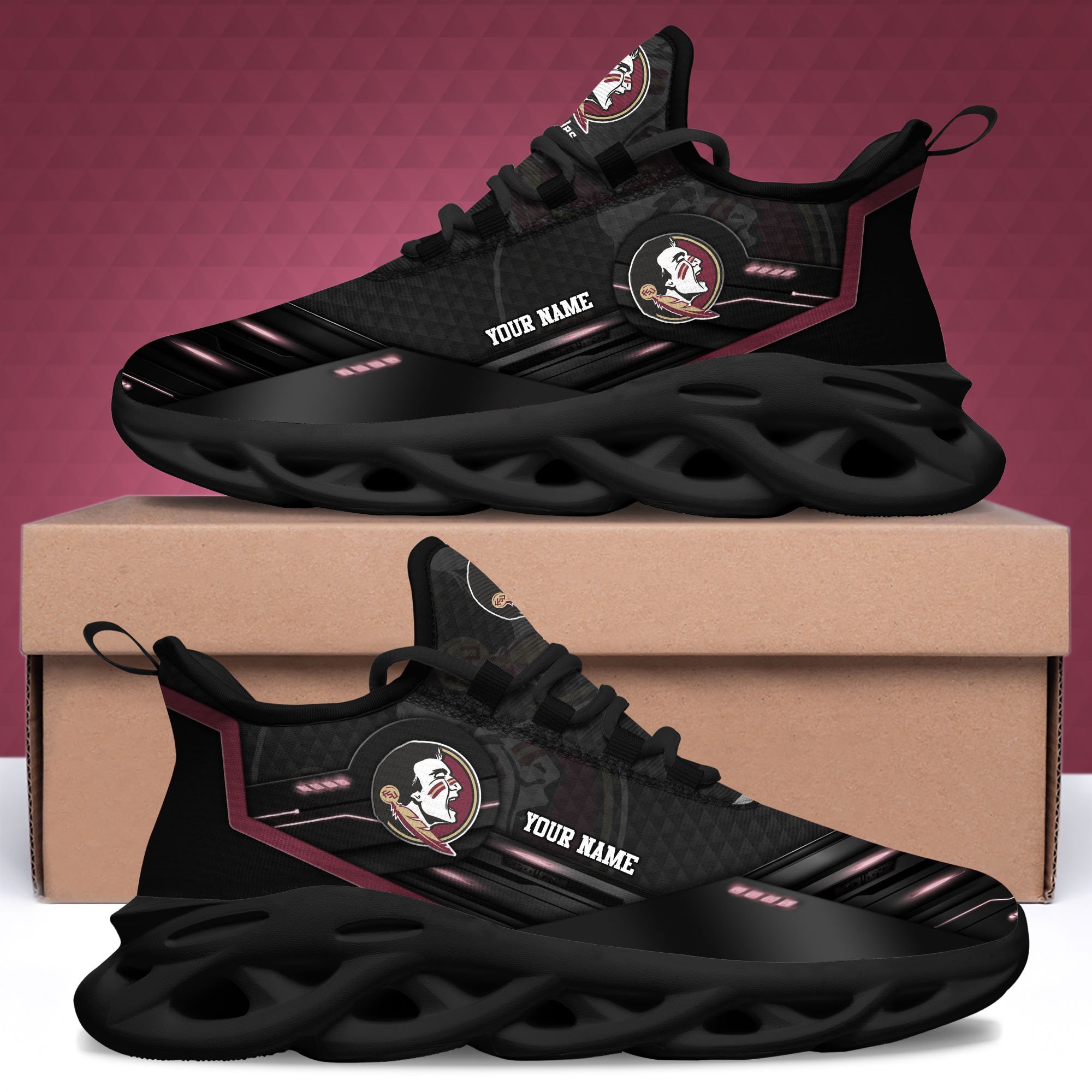 Florida State Seminoles Black Clunky Sneaker Custom Name, Max Soul Shoes, Sport Gifts For Fan