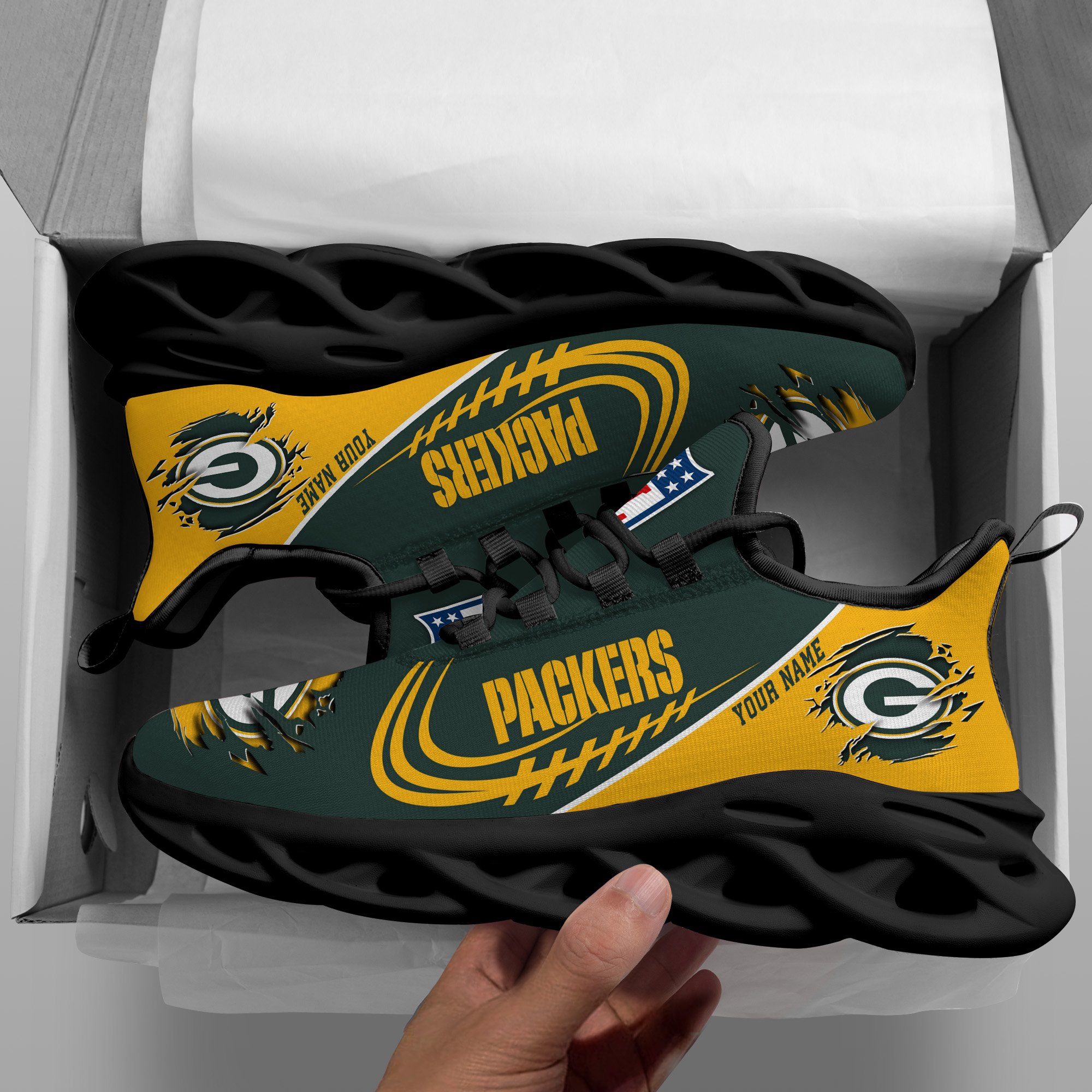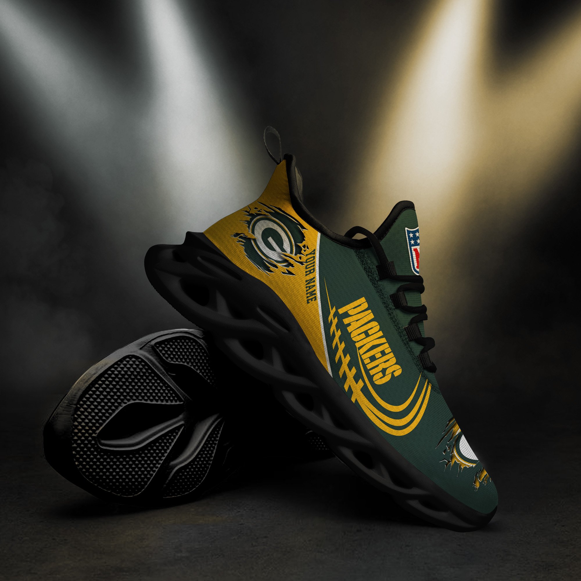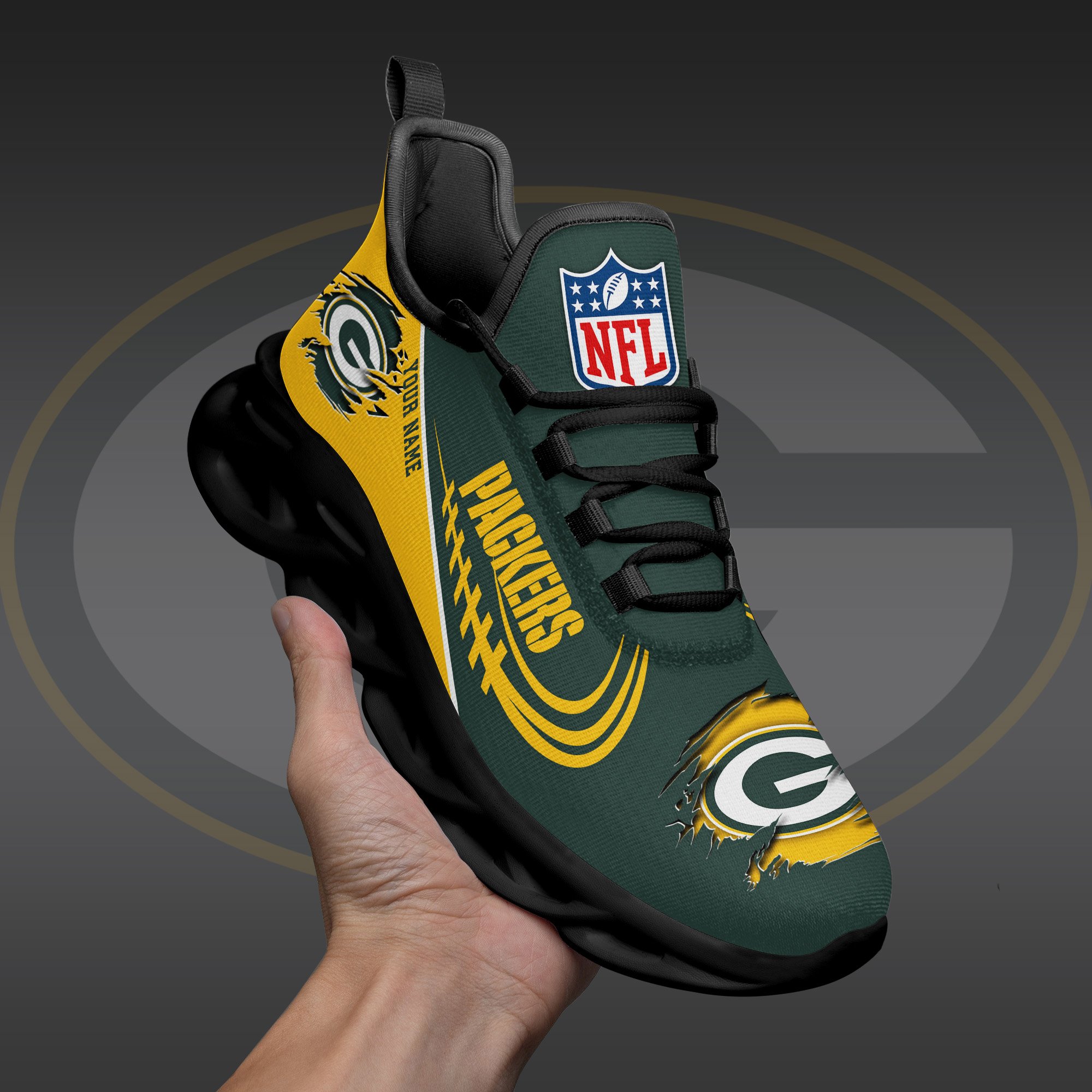 Green Bay Packers Black Max Soul Shoes 2026 Versions Custom Name 003