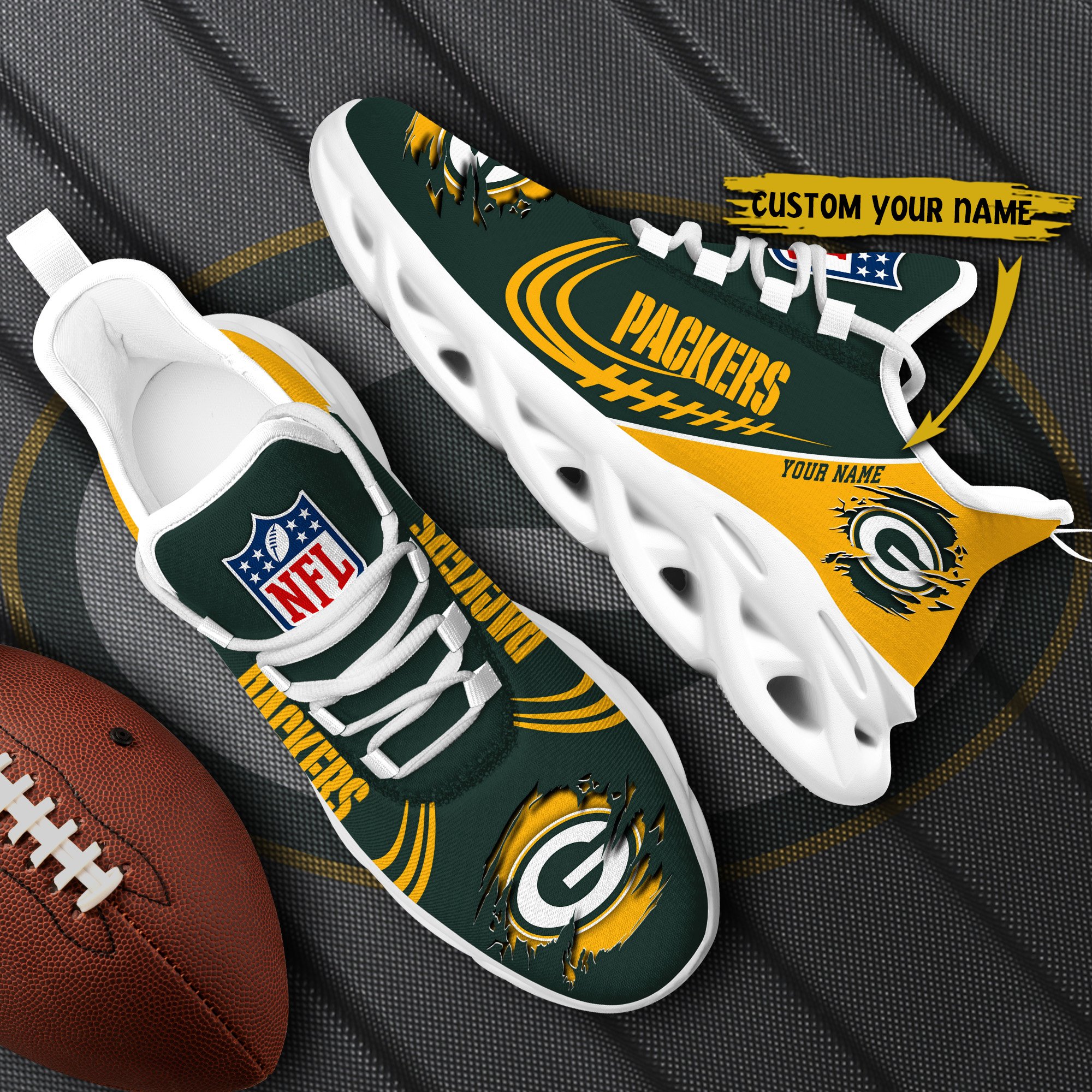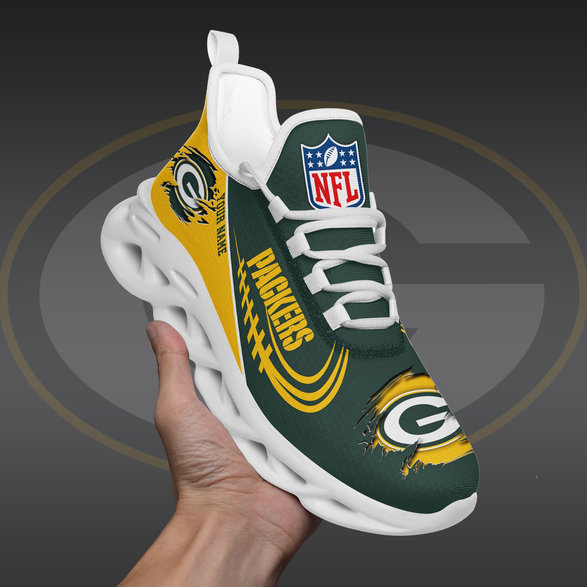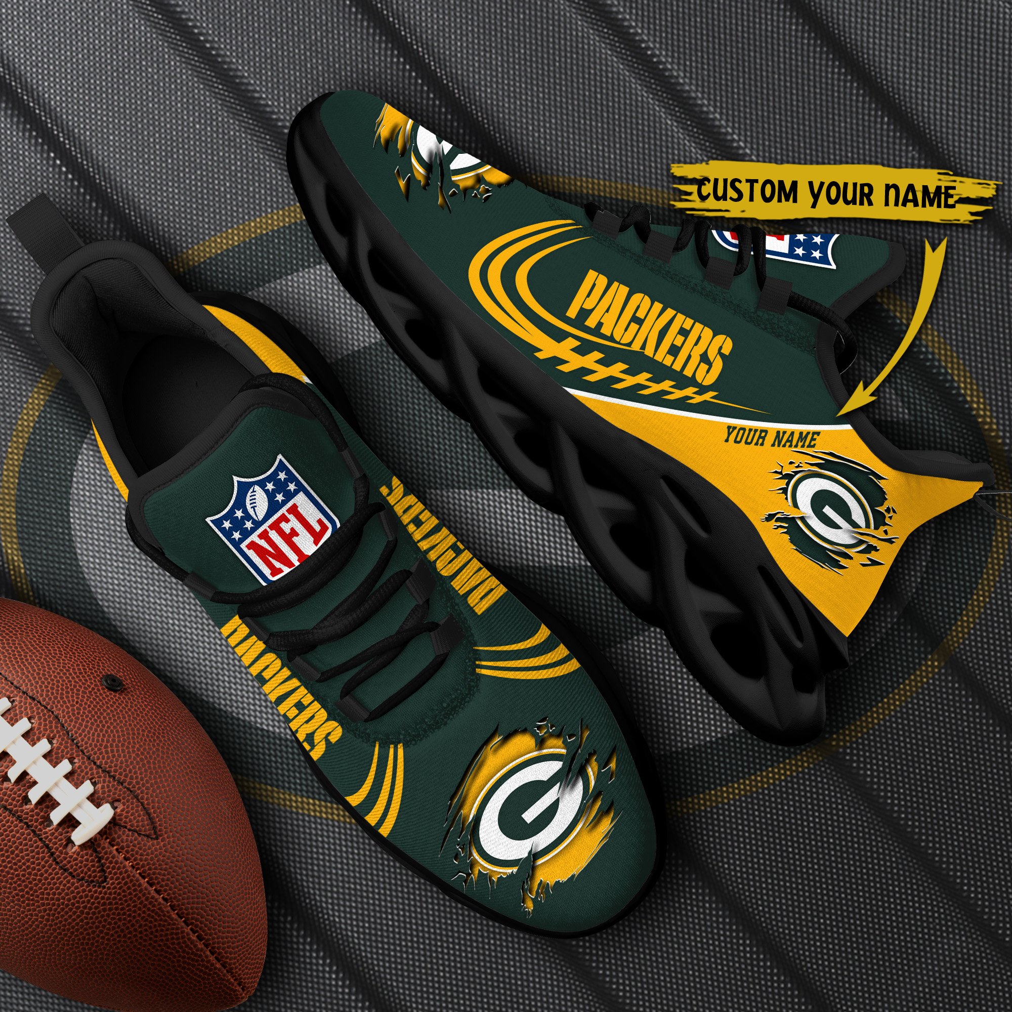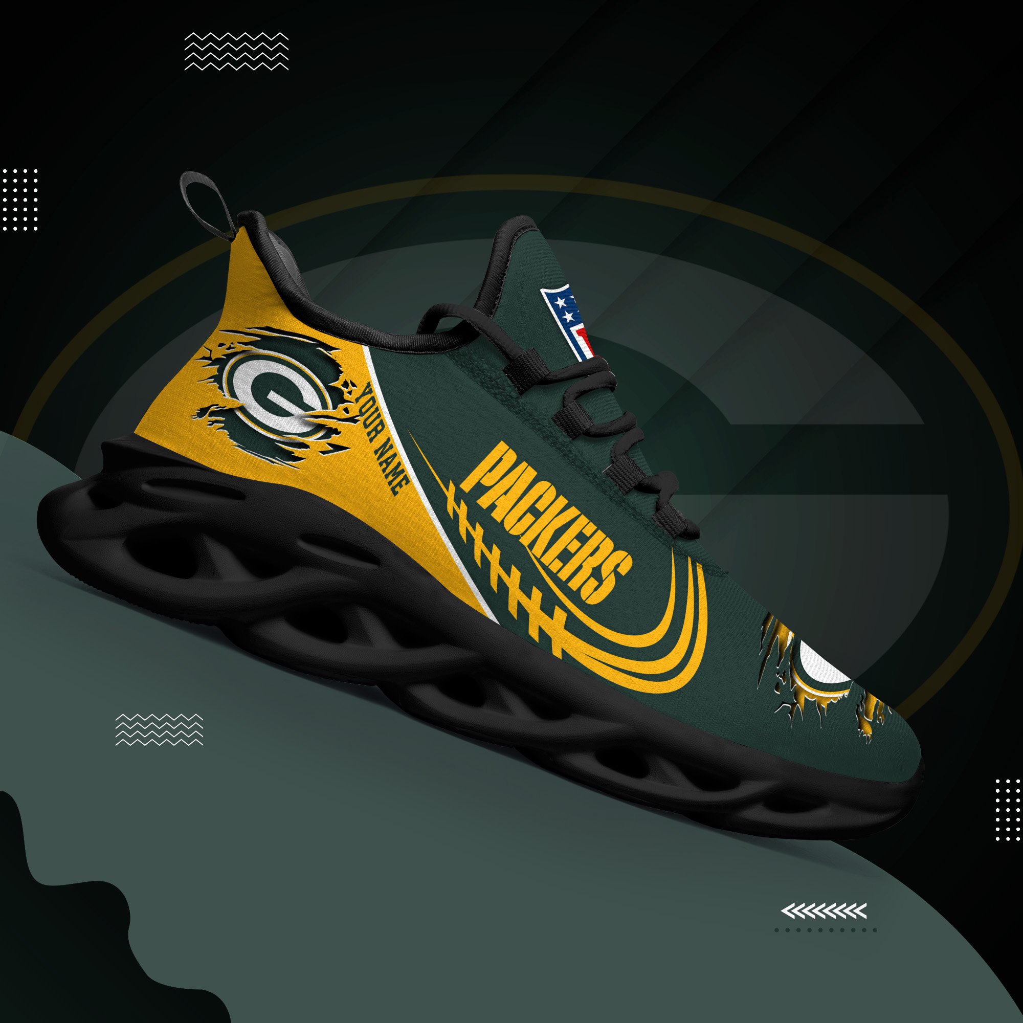 Green Bay Packers Black Max Soul Shoes 2026 Versions Custom Name 003