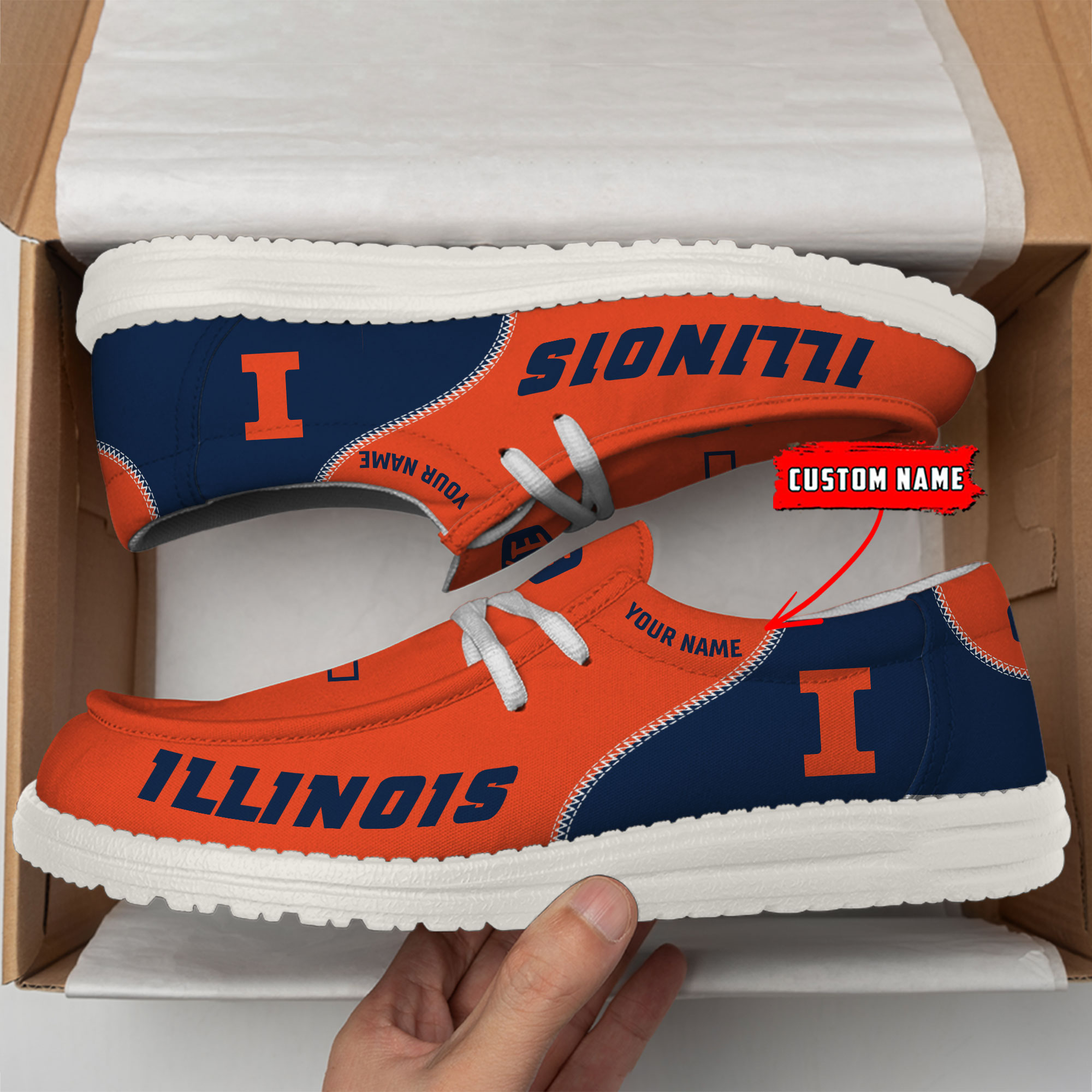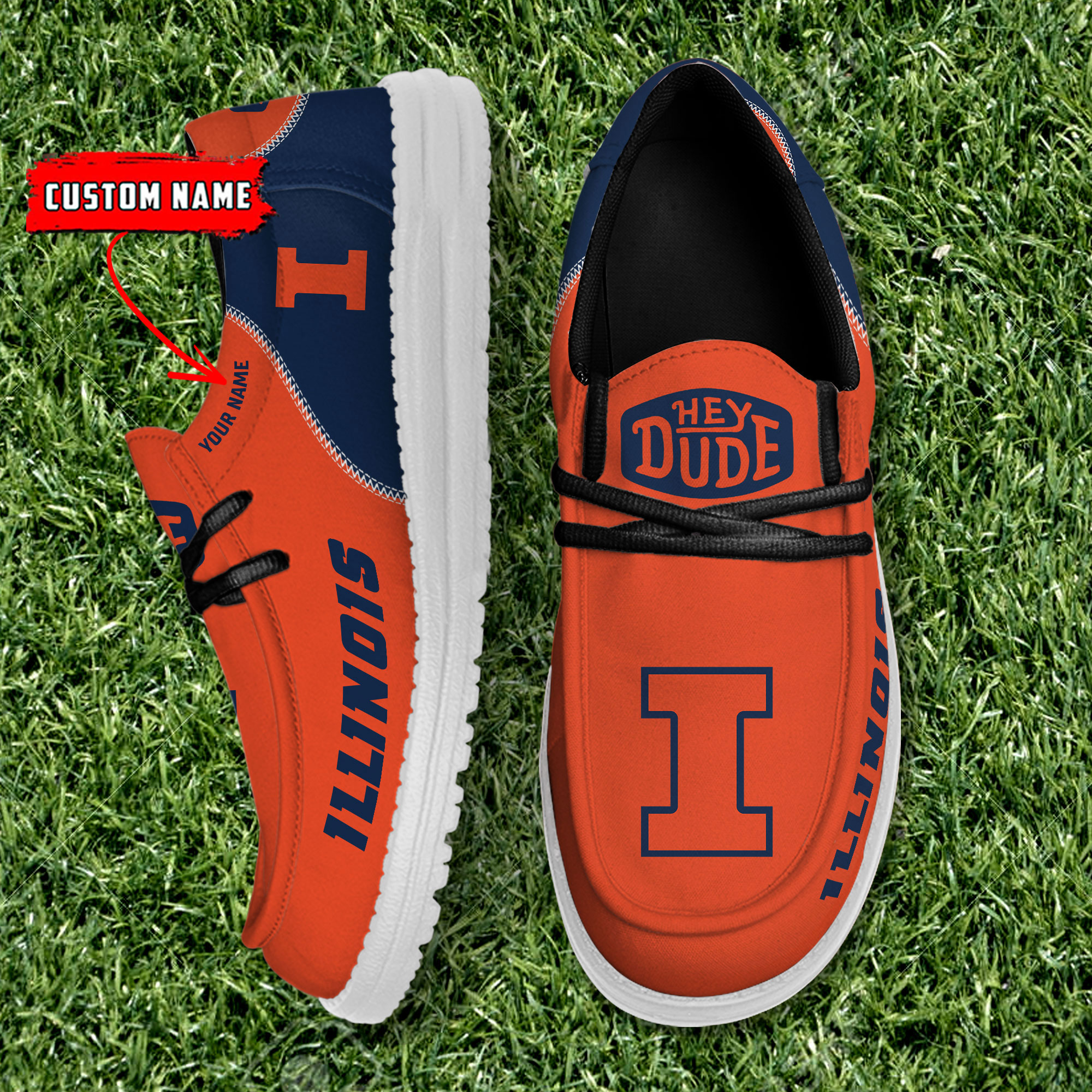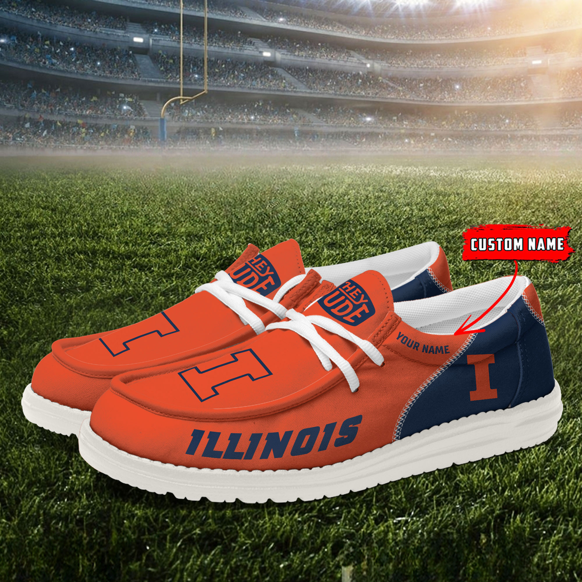 Illinois Fighting Illini personalisierte Hey Dude Sportschuhe – individuelles Namensdesign, perfektes Geschenk für Fans