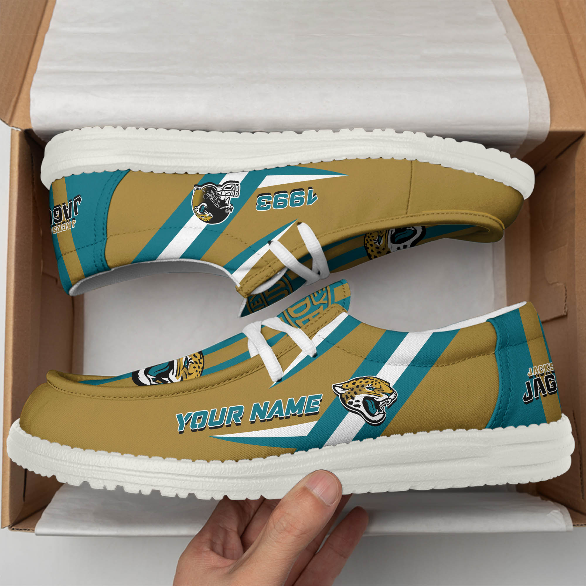 Jacksonville Jaguars Team White Canvas Loafer Shoes Personalized Your Name