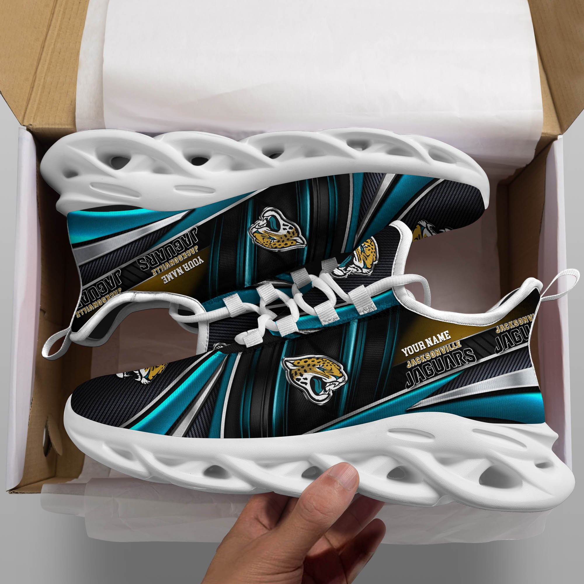 Jacksonville Jaguars White C Sneakers 2026 Version Personalized Your Name, Sport Team Sneakers, Sport Gifts PH892