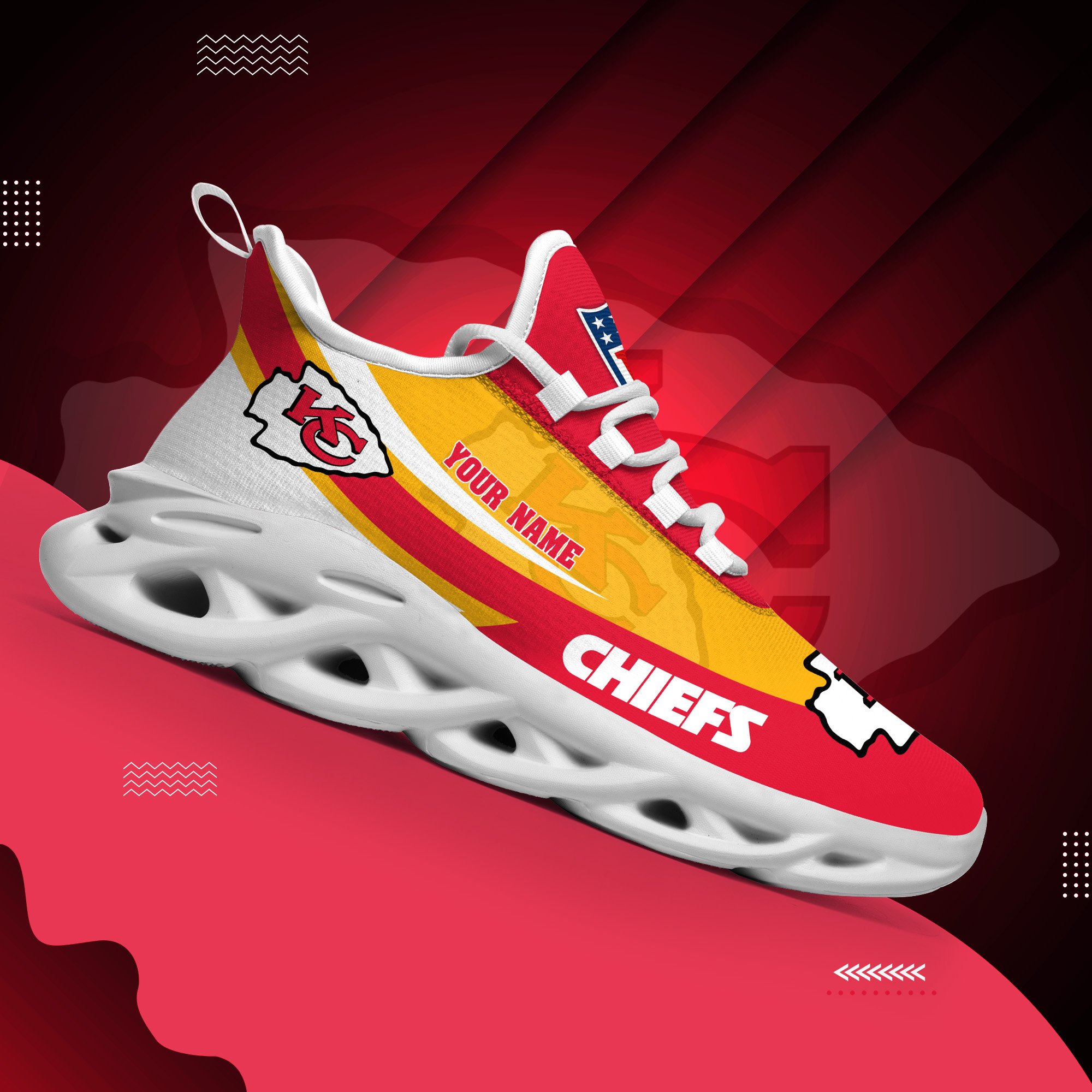 Kansas City Chiefs White Max Soul Shoes 2026 Versions Custom Your Name, Sports Gift For Fan, Sport Gifts PH410