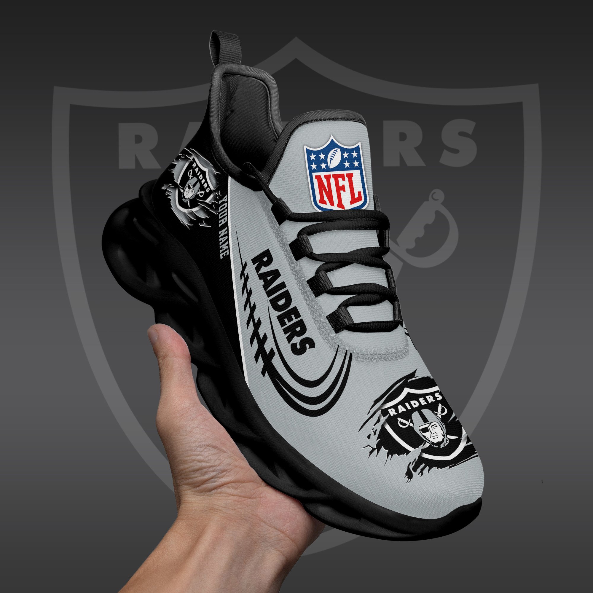 Las Vegas Raiders Black Max Soul Shoes 2026 Versions Custom Name 003