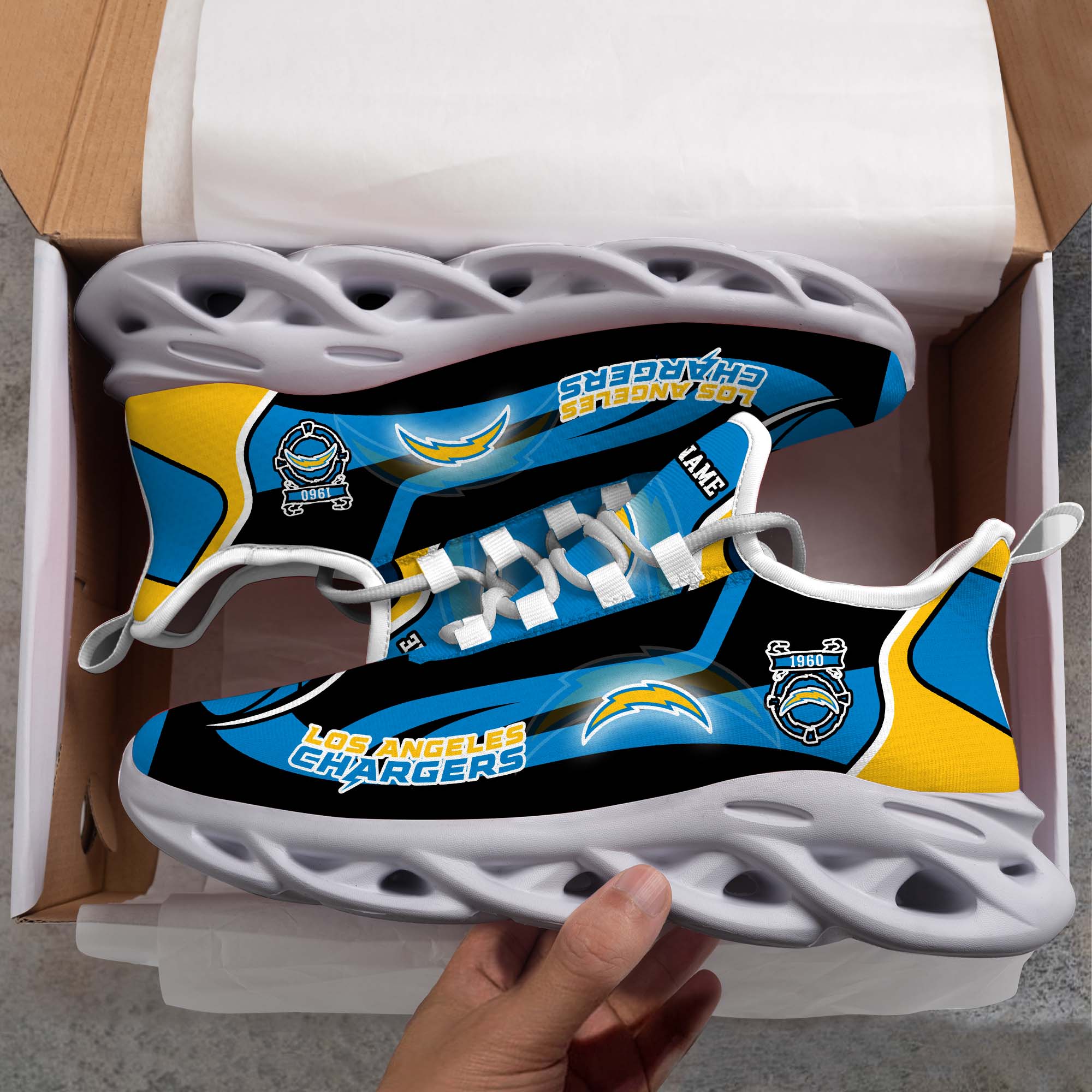 Los Angeles Chargers White C Sneakers 2026 Version Personalized Your Name 090