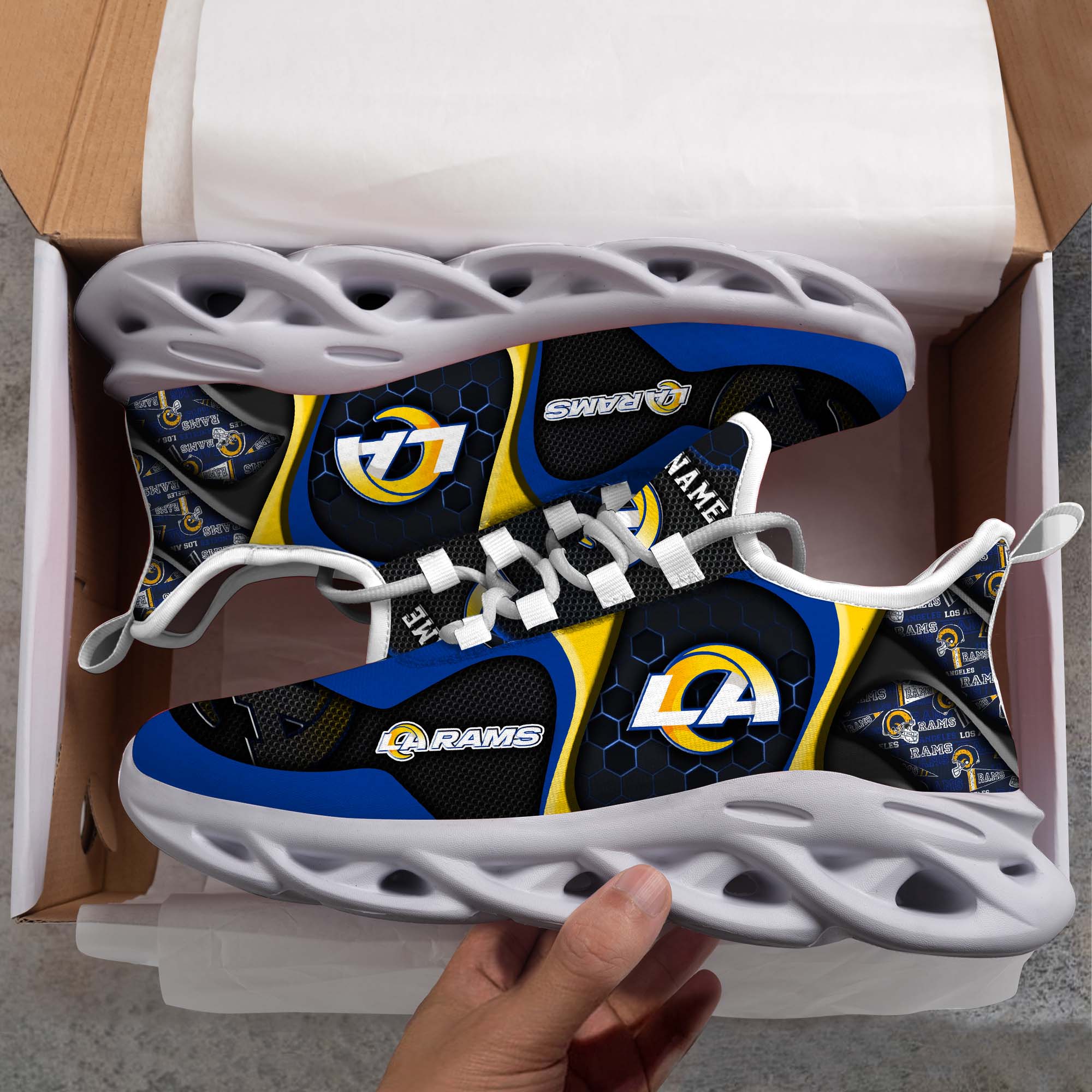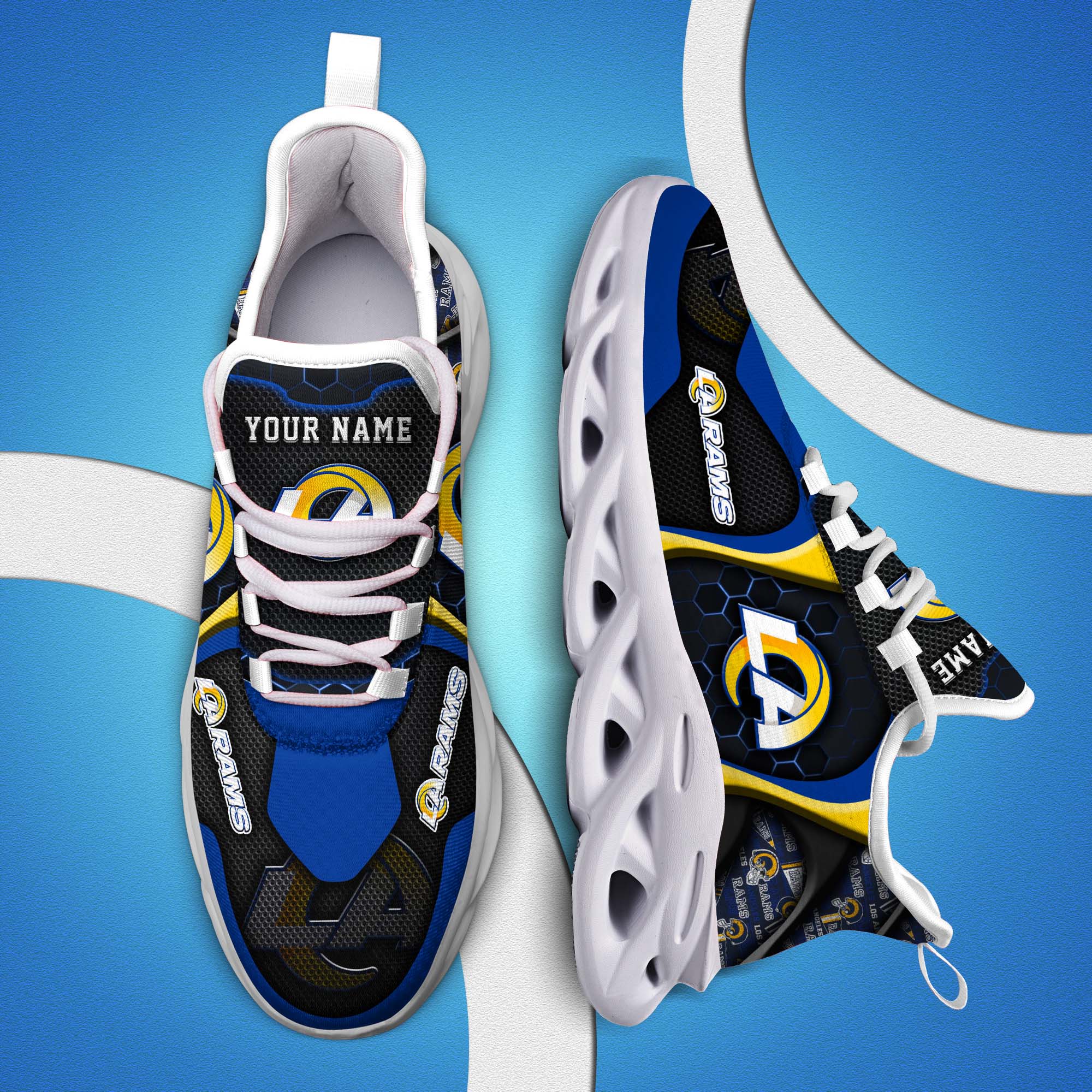 Los Angeles Rams White C Sneakers 2026 Version Personalized Your Name 432