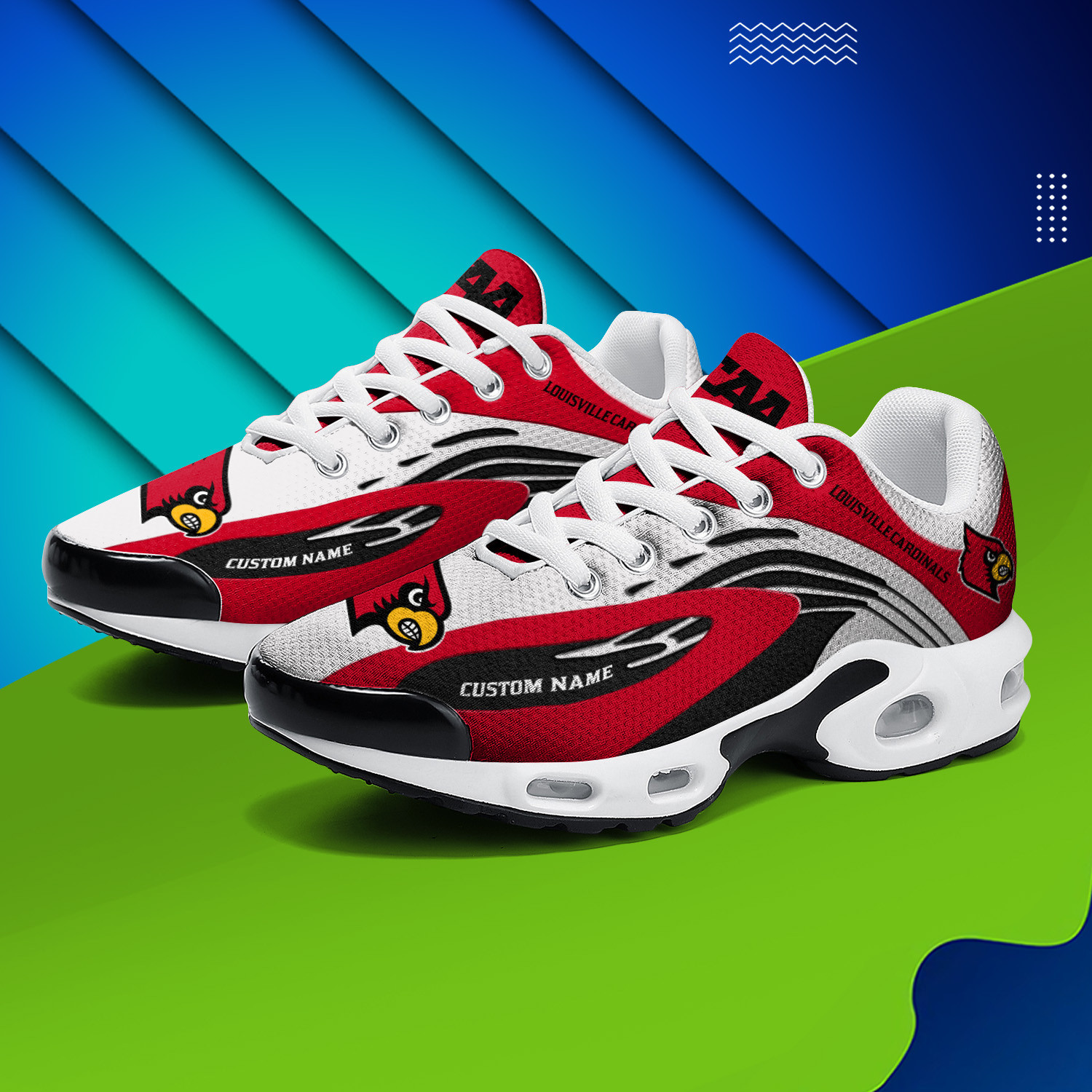 Louisville Cardinals Personalized Name Team Logo Mix Colors Wave Line TN Shoes Air Cushion Sneakers