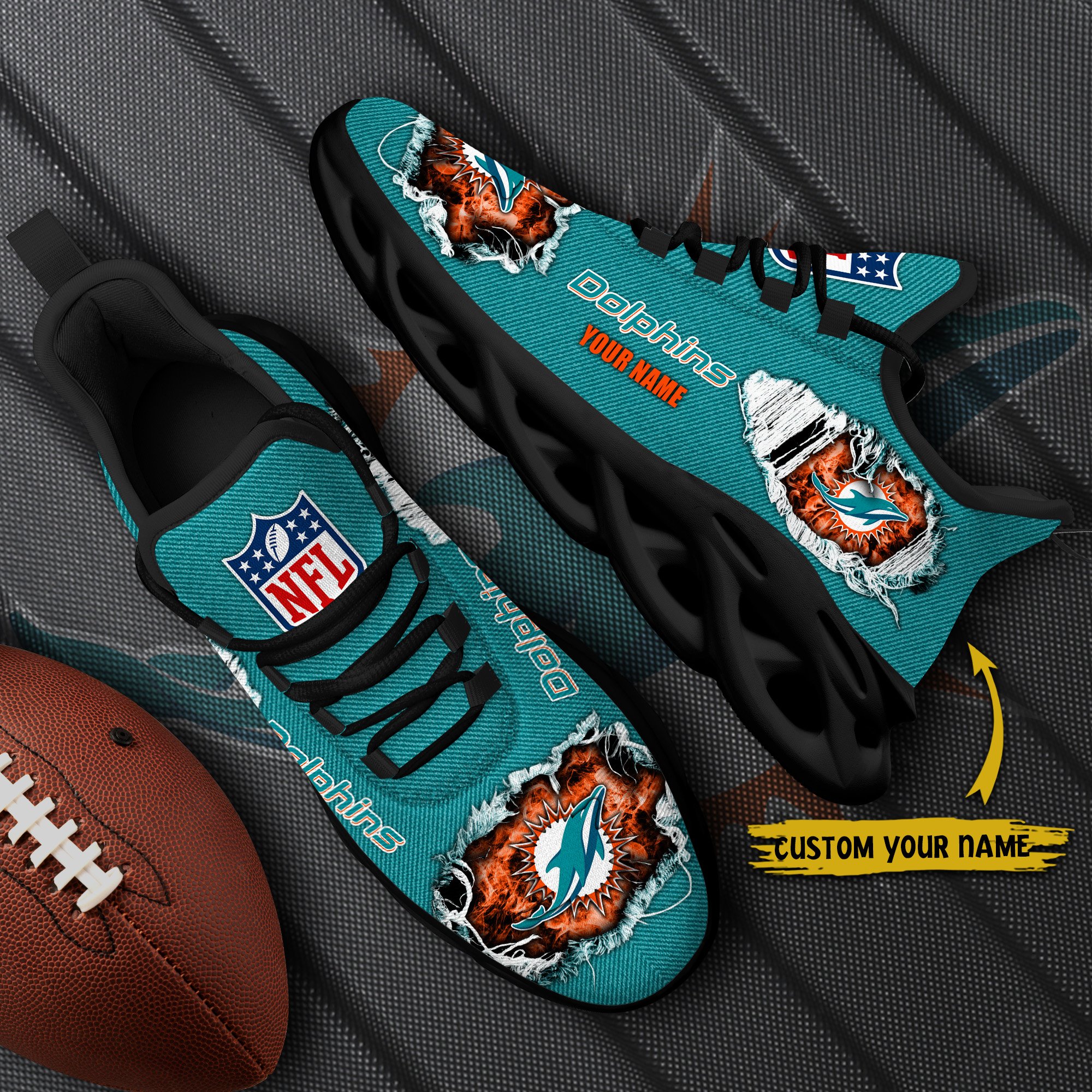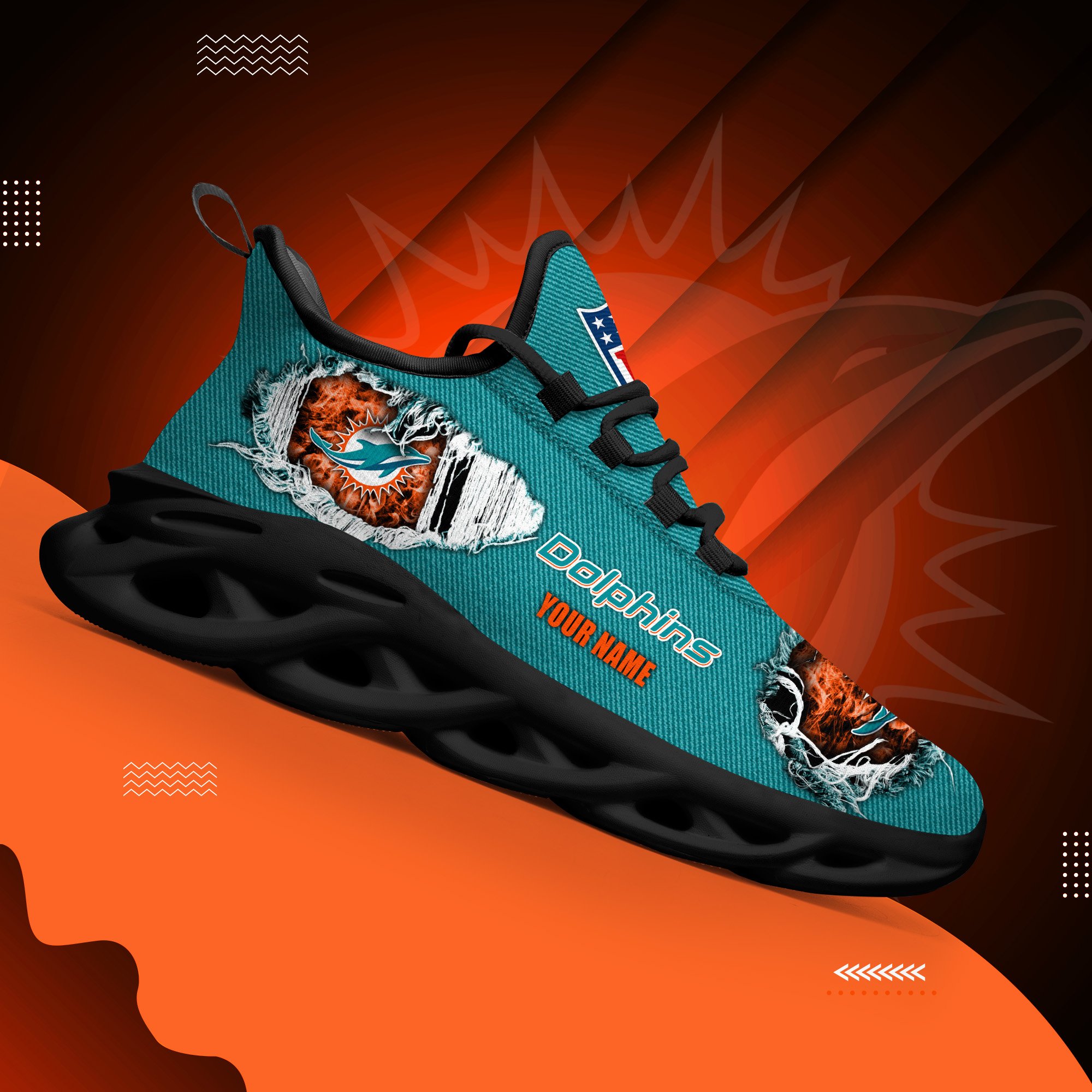 Miami Dolphins Black Max Soul Shoes 2026 Versions Custom Name 554