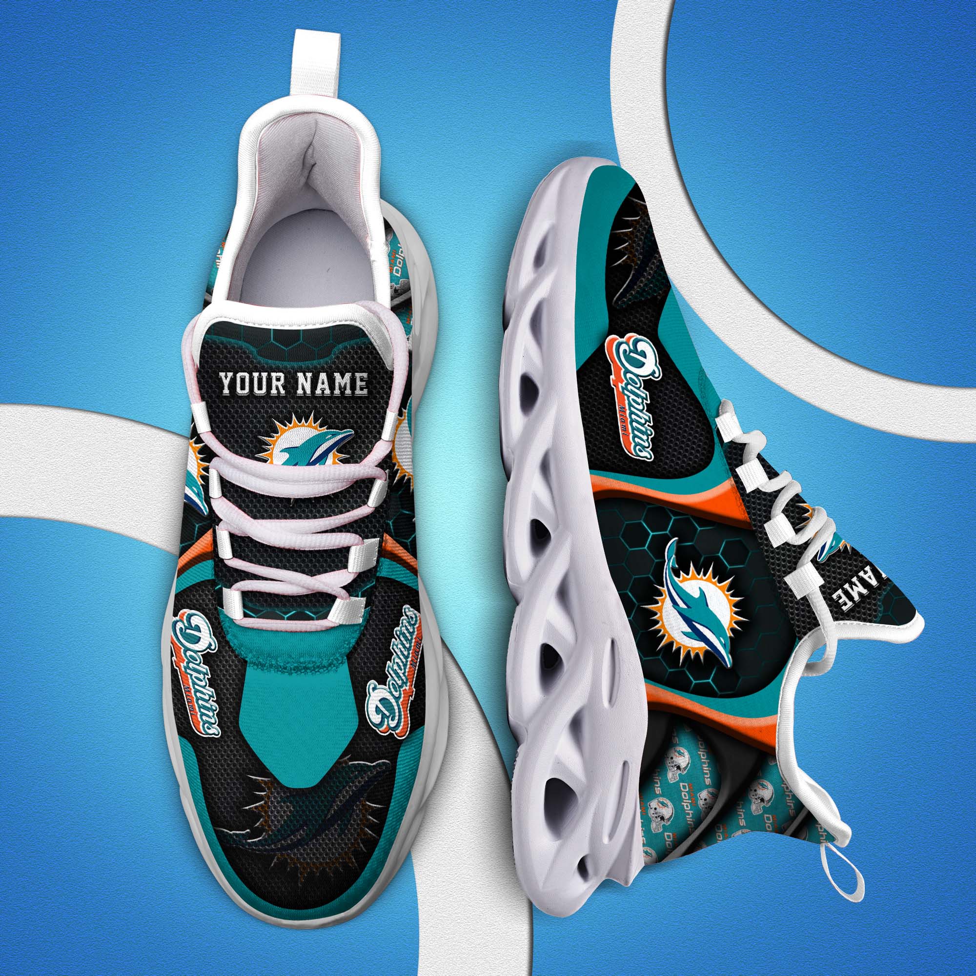 Miami Dolphins White C Sneakers 2026 Version Personalized Your Name 432