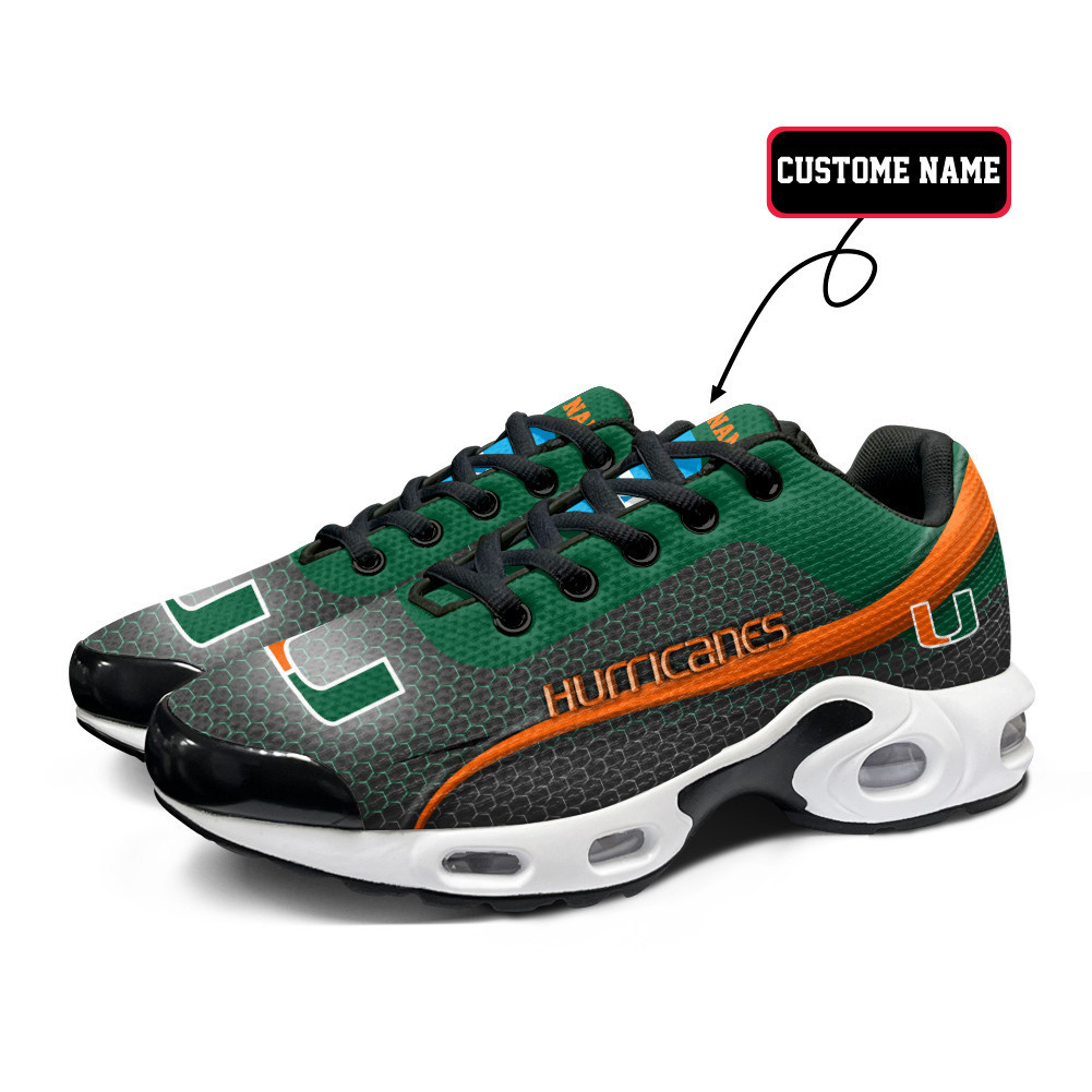 Miami Hurricanes Personalized Name Team Colors Wave Line Beehive Pattern TN Shoes Air Cushion Sneakers