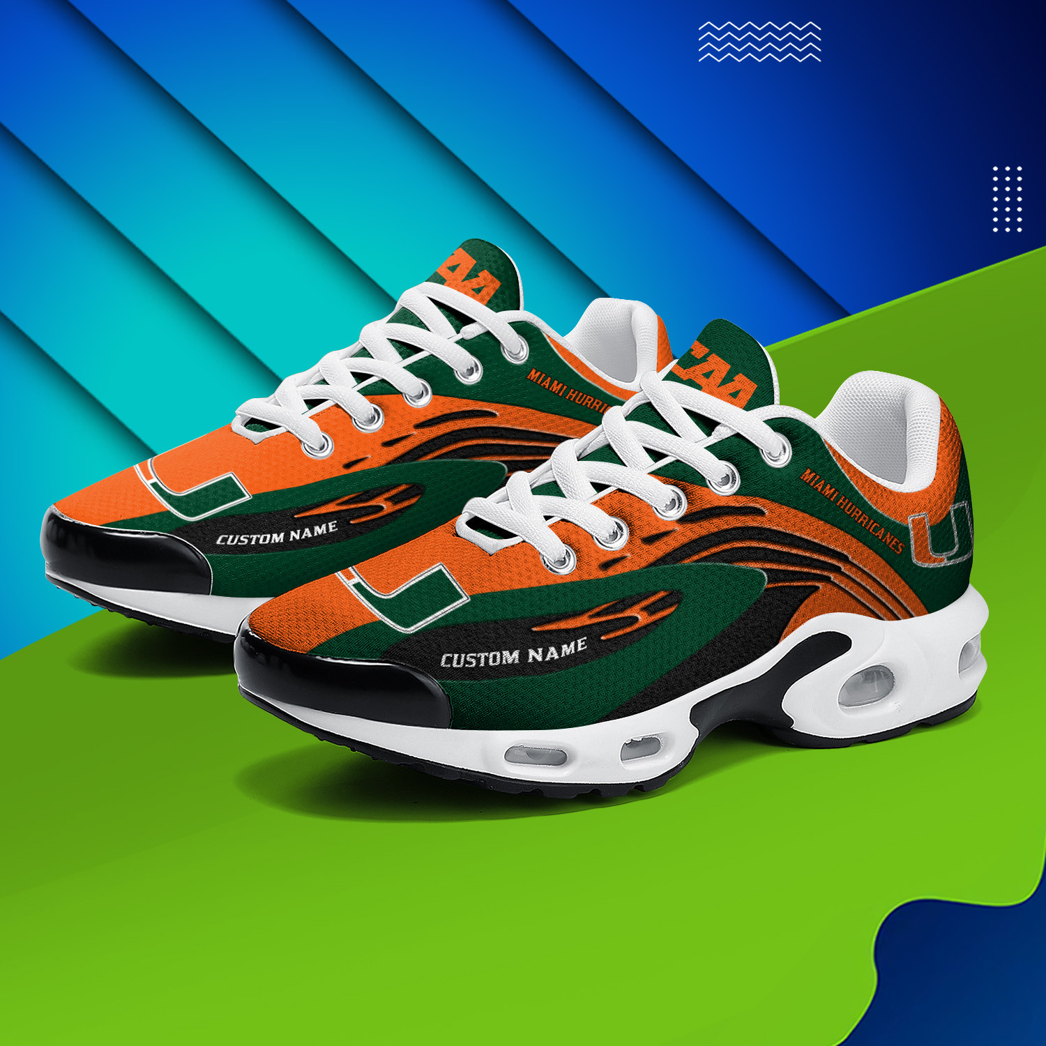 Miami Hurricanes Personalized Name Team Logo Mix Colors Wave Line TN Air Max Shoes Air Cushion Sneakers
