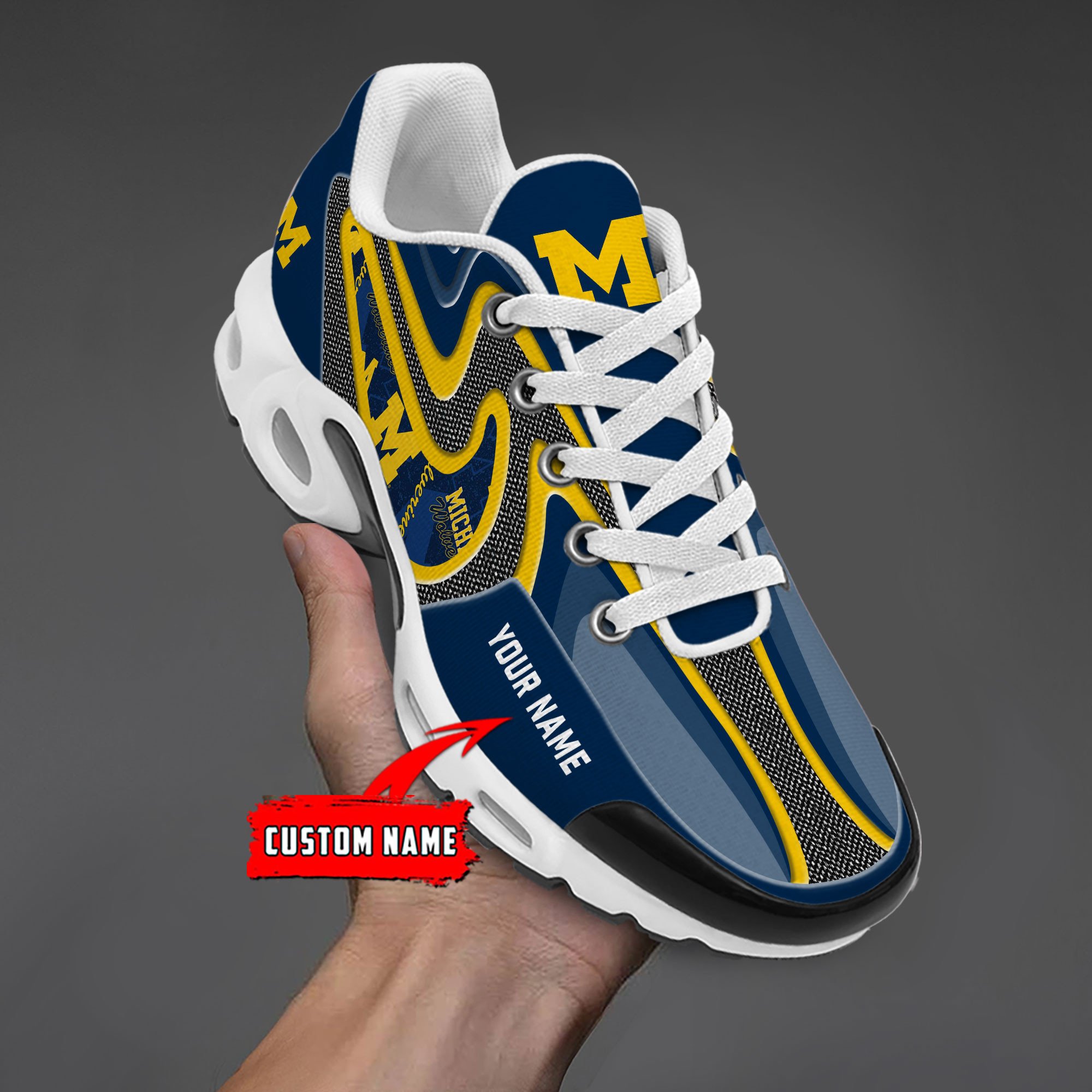 Michigan Wolverines Personalized Name Team Checkmark Logo Mix Colors Stitch Line TN Shoes Air Cushion Sneakers