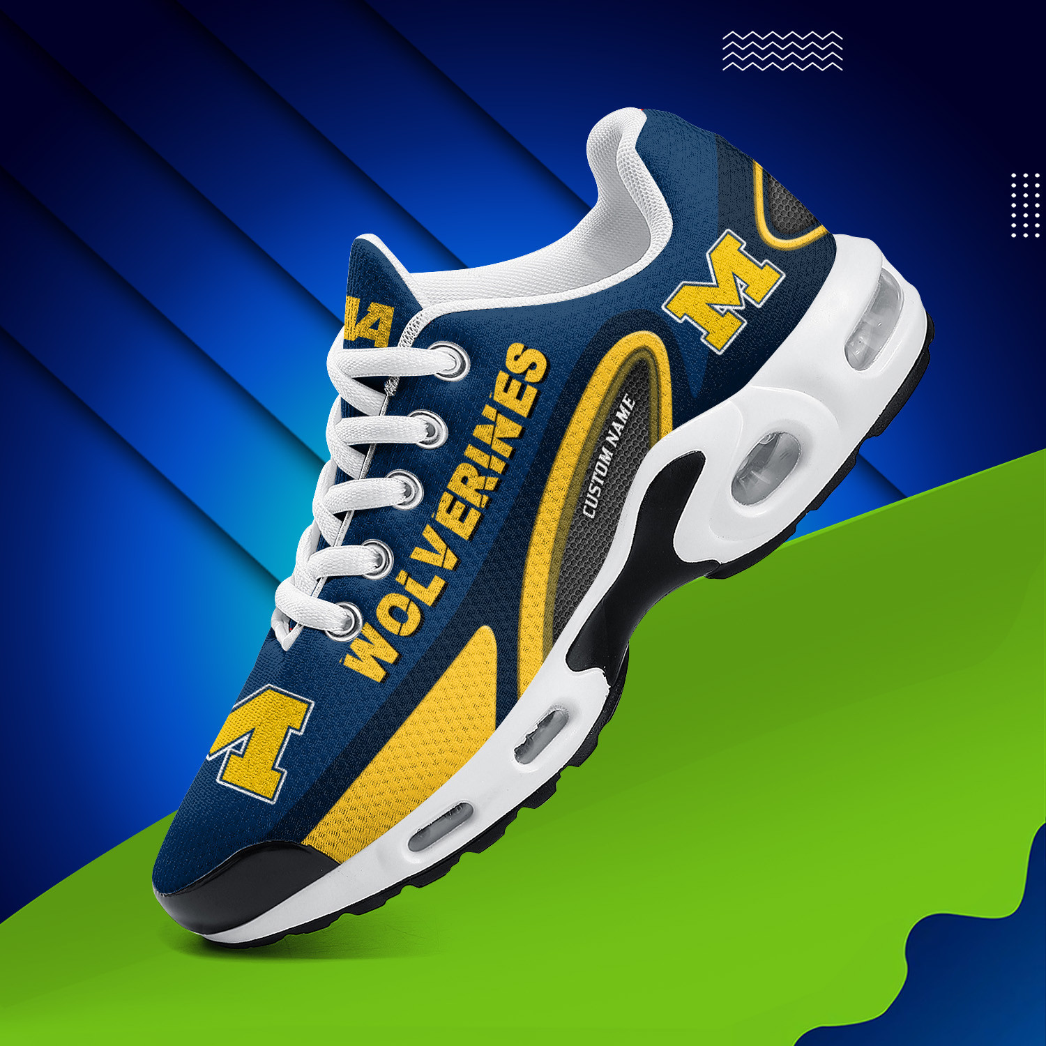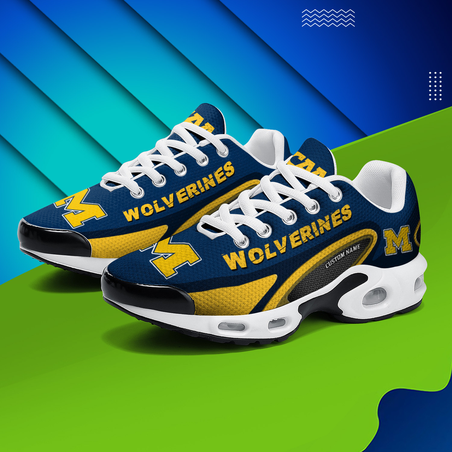 Michigan Wolverines Personalized Name Team Logo Mix Colors Oval Line TN Shoes Air Cushion Sneakers
