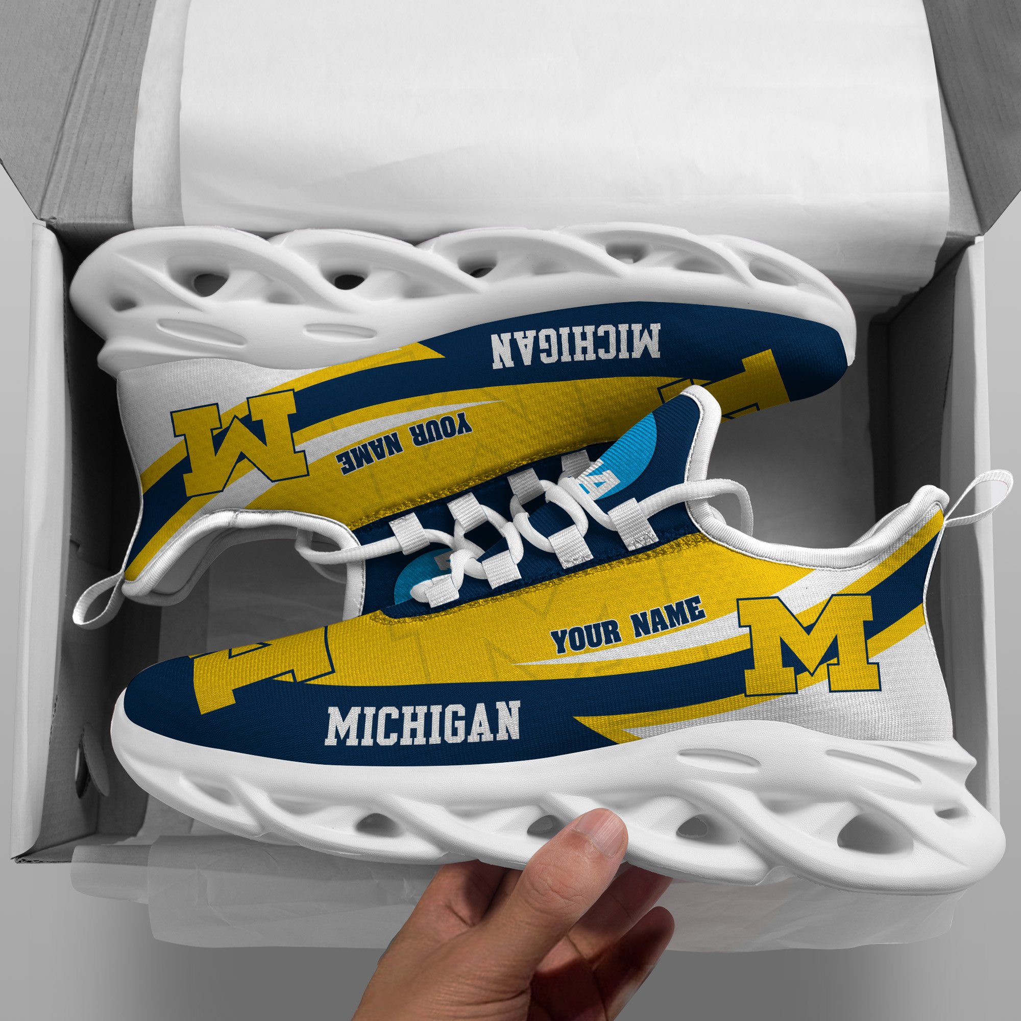 Michigan Wolverines White Max Soul Shoes 2026 Versions Custom Your Name, Sports Gift For Fan PH019
