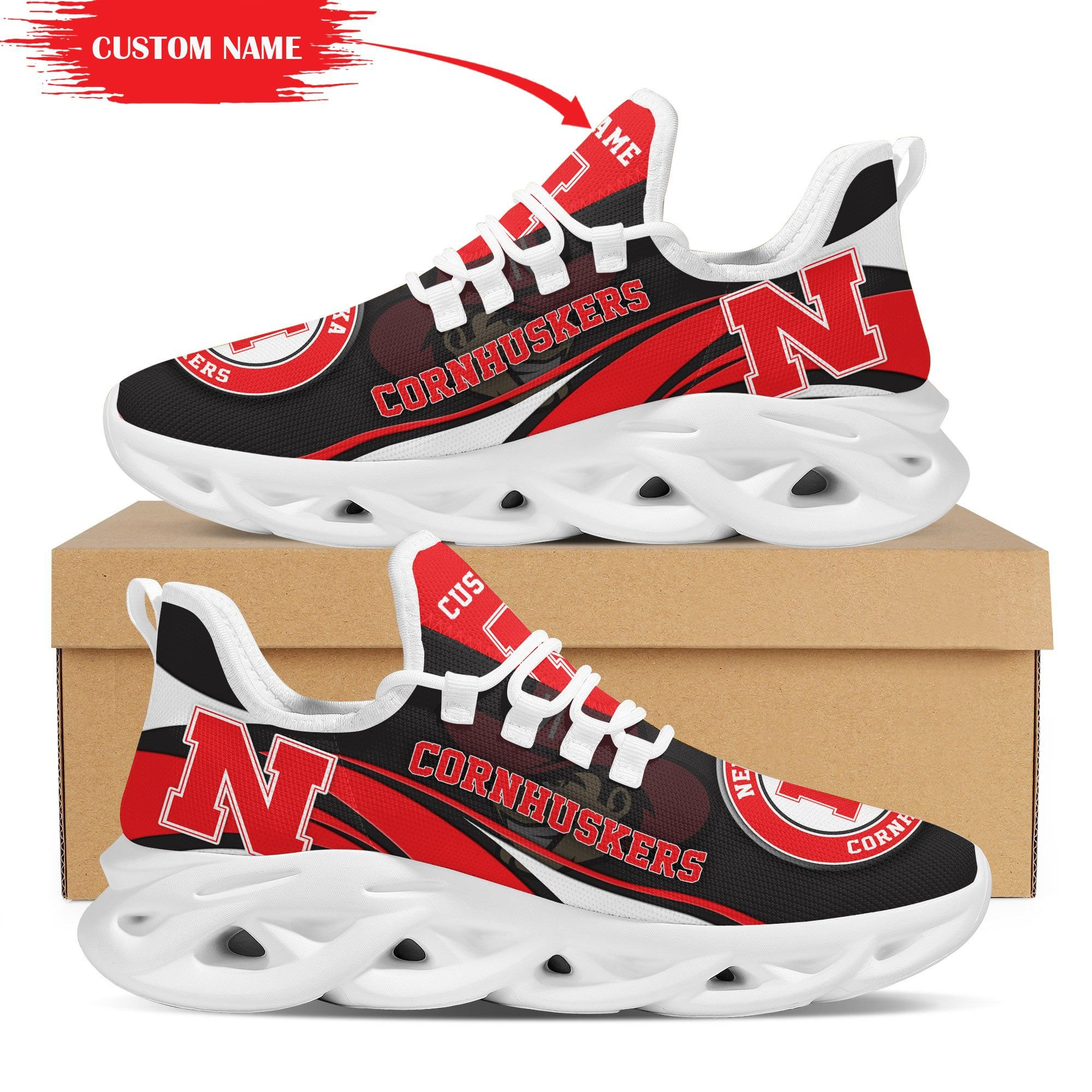 Nebraska Cornhuskers Mascot Custom Name Personalized Max Soul Sneakers