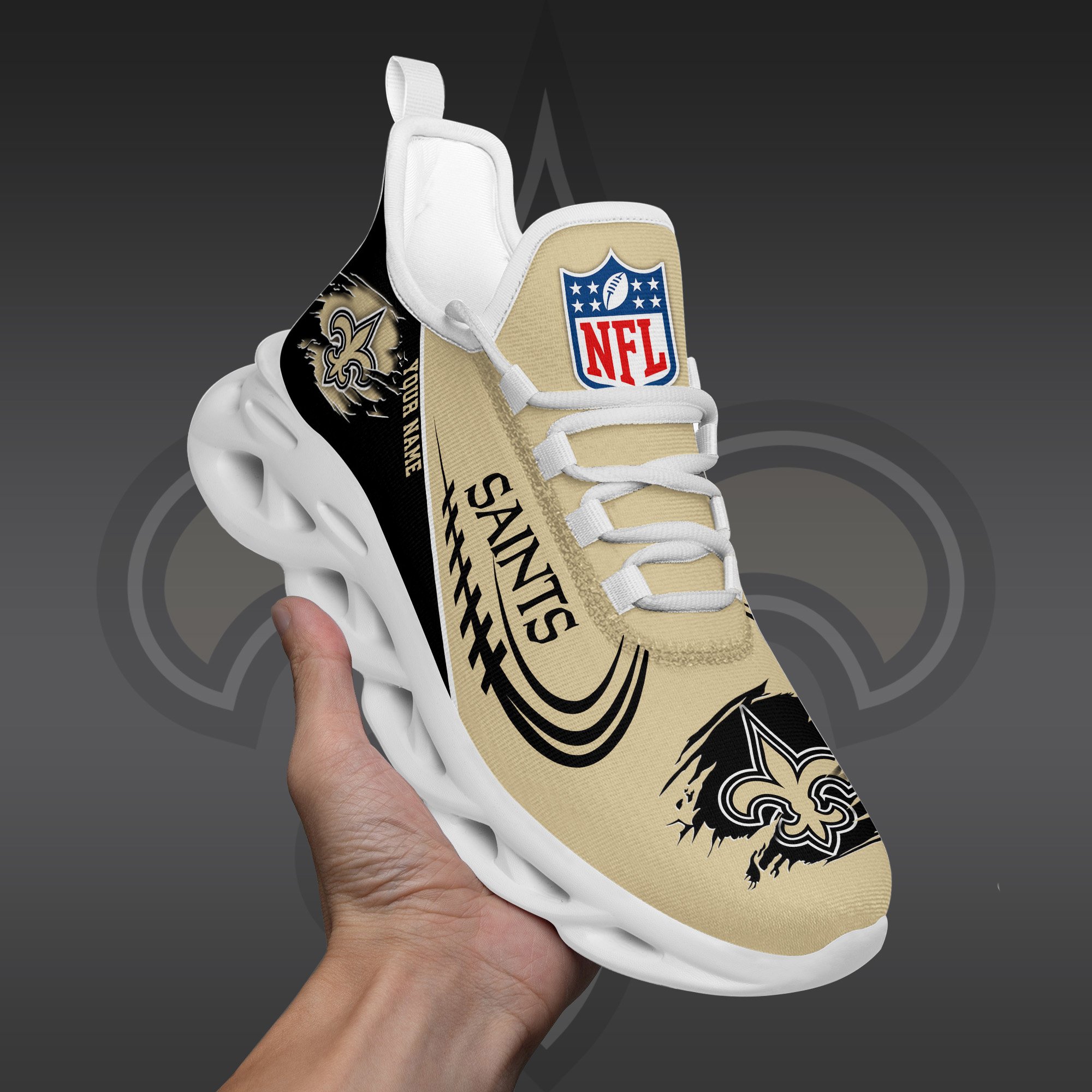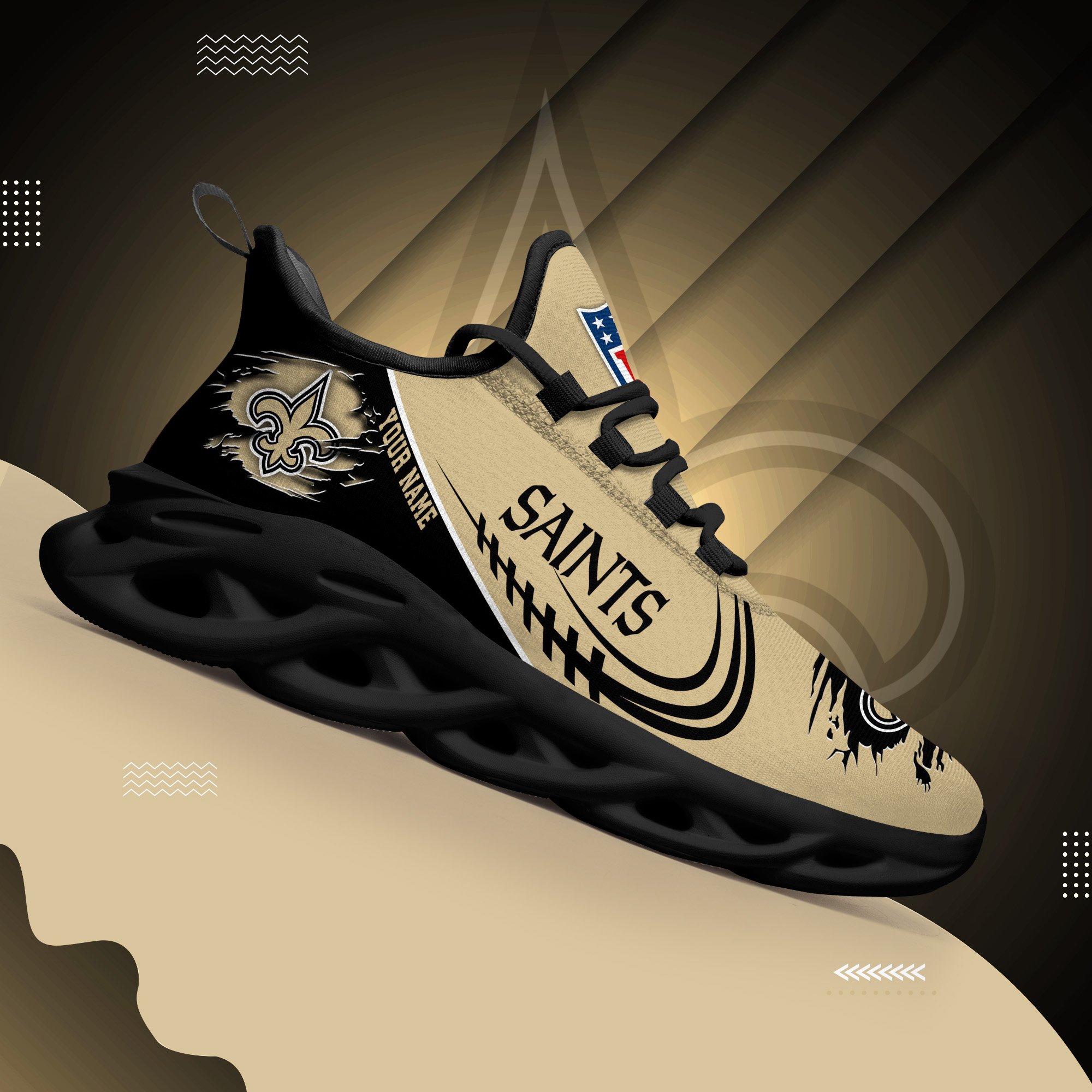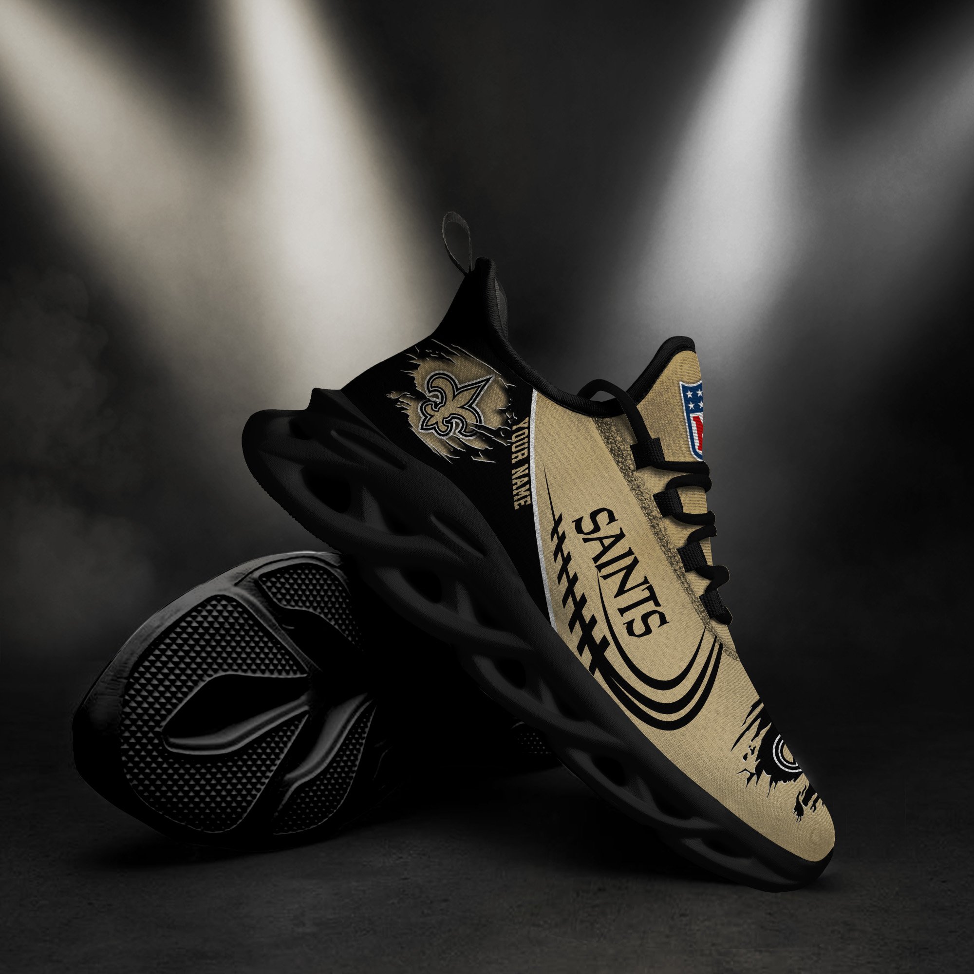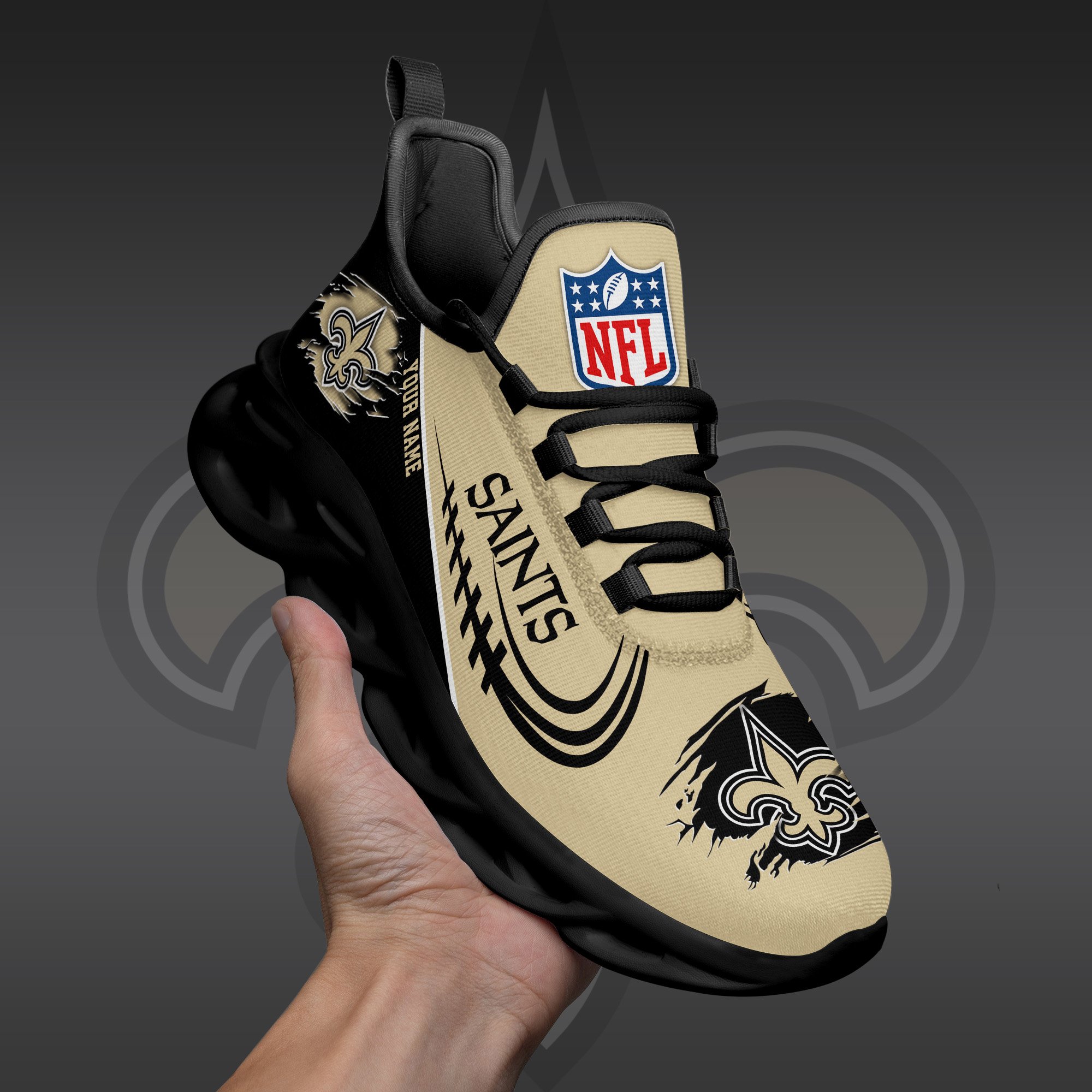 New Orleans Saints Black Max Soul Shoes 2026 Versions Custom Name 003