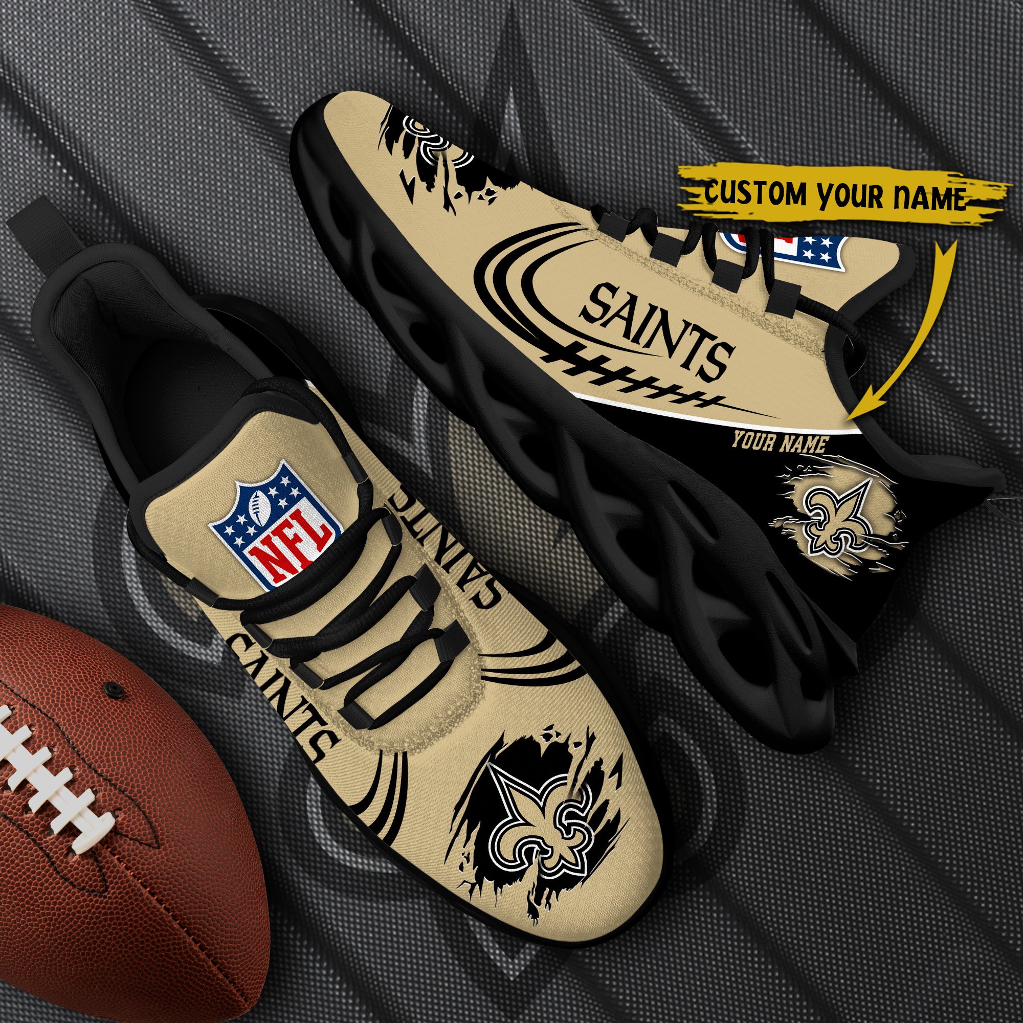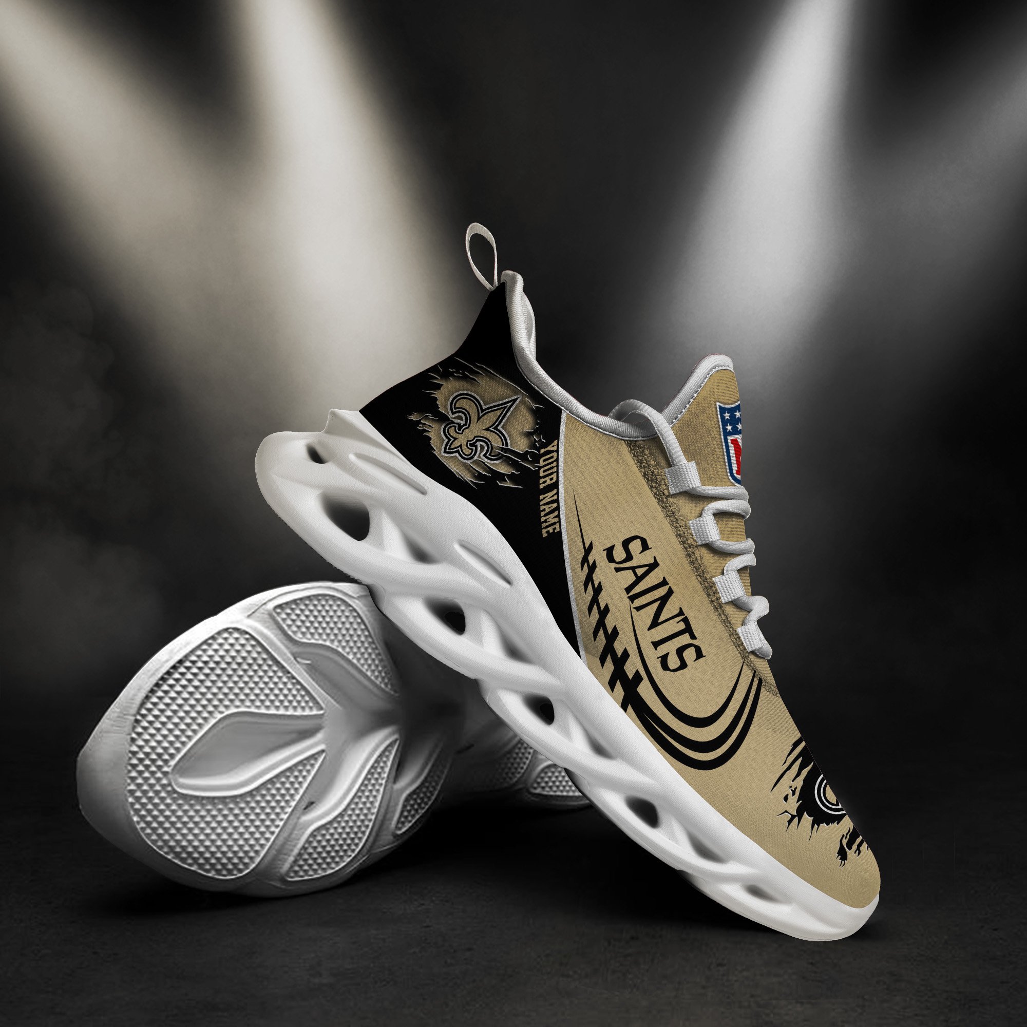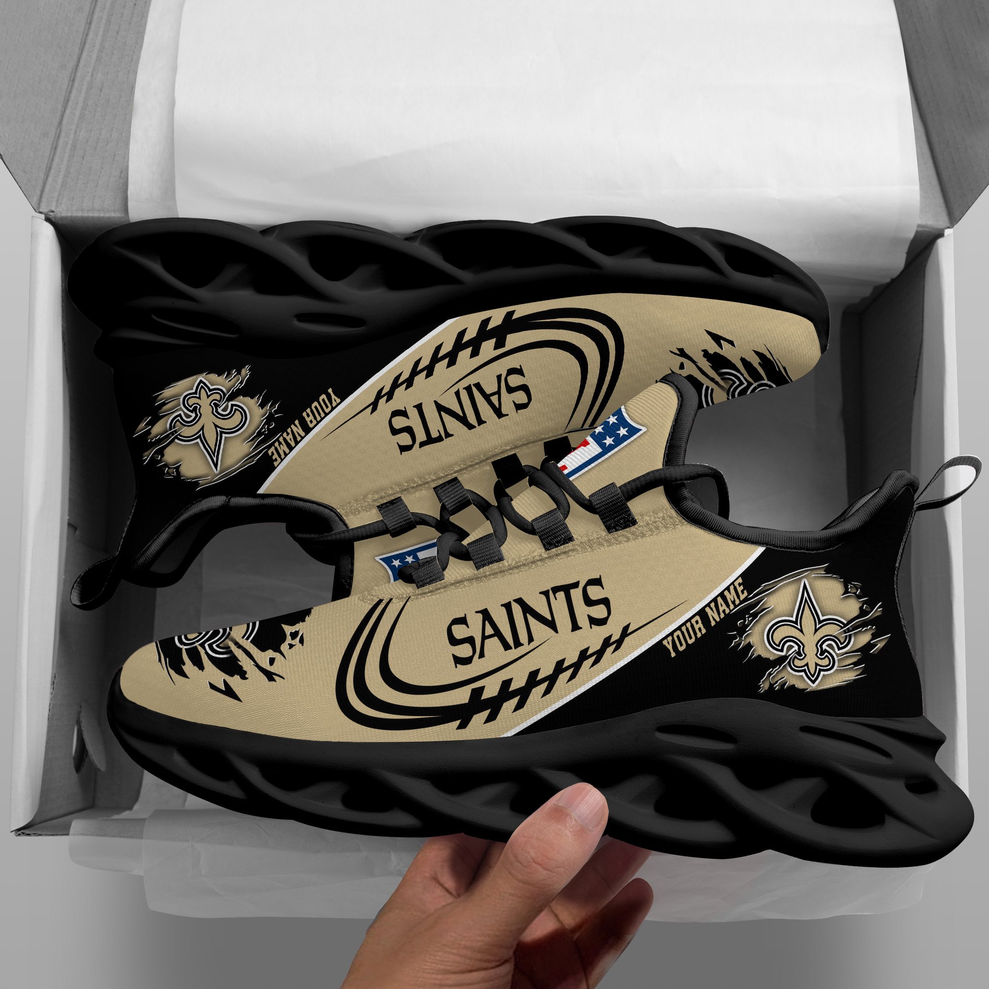 New Orleans Saints Black Max Soul Shoes 2026 Versions Custom Name 003