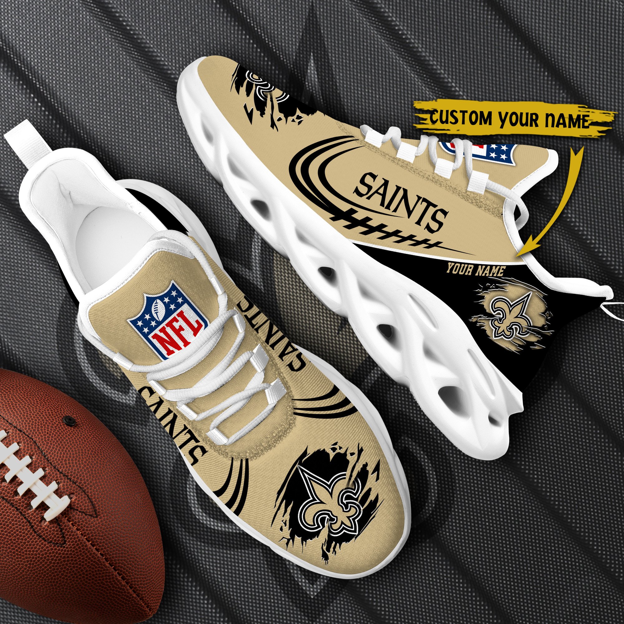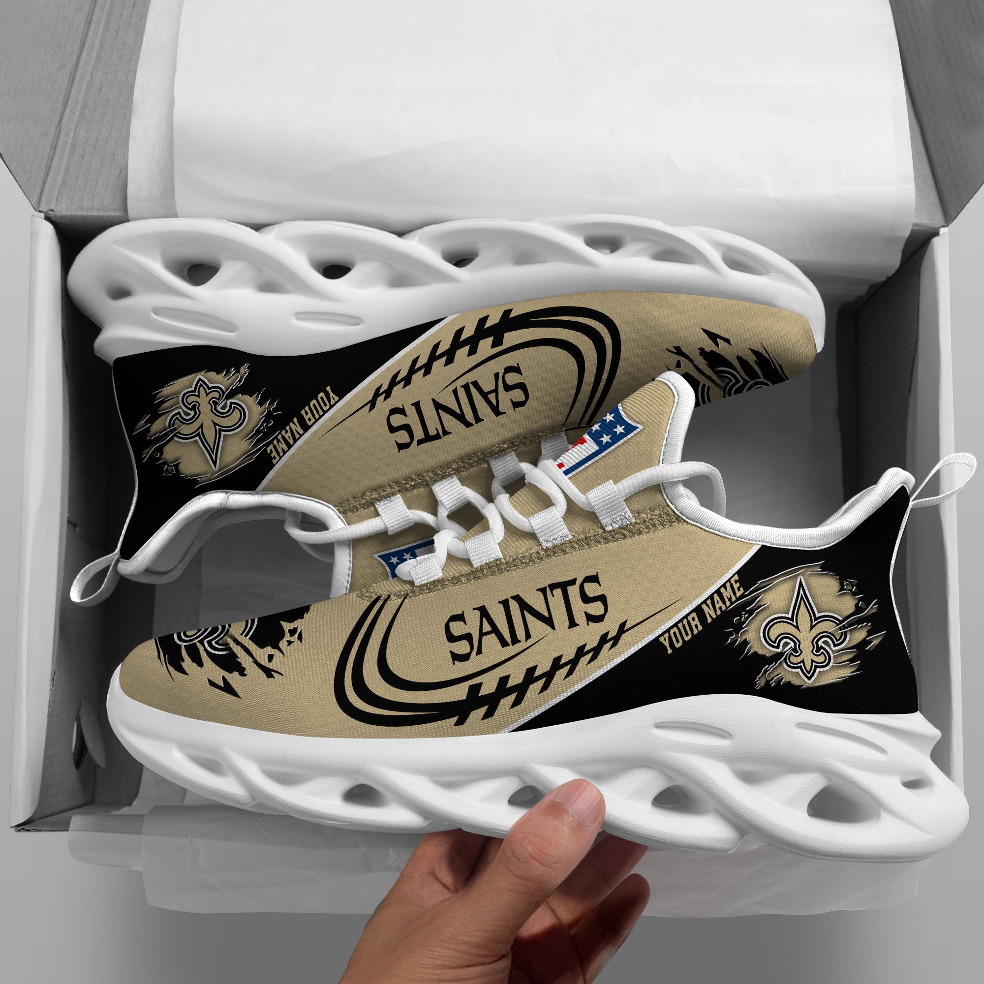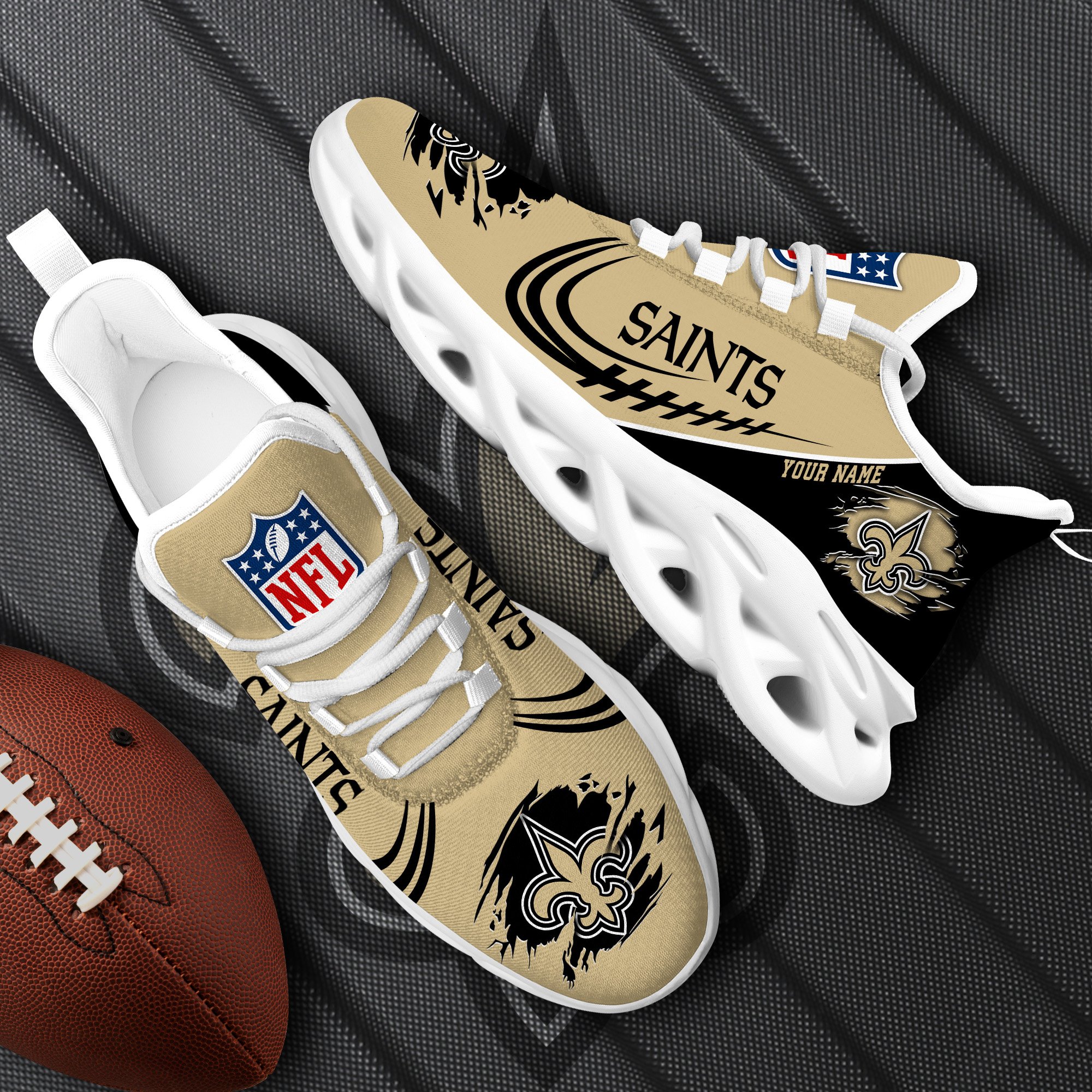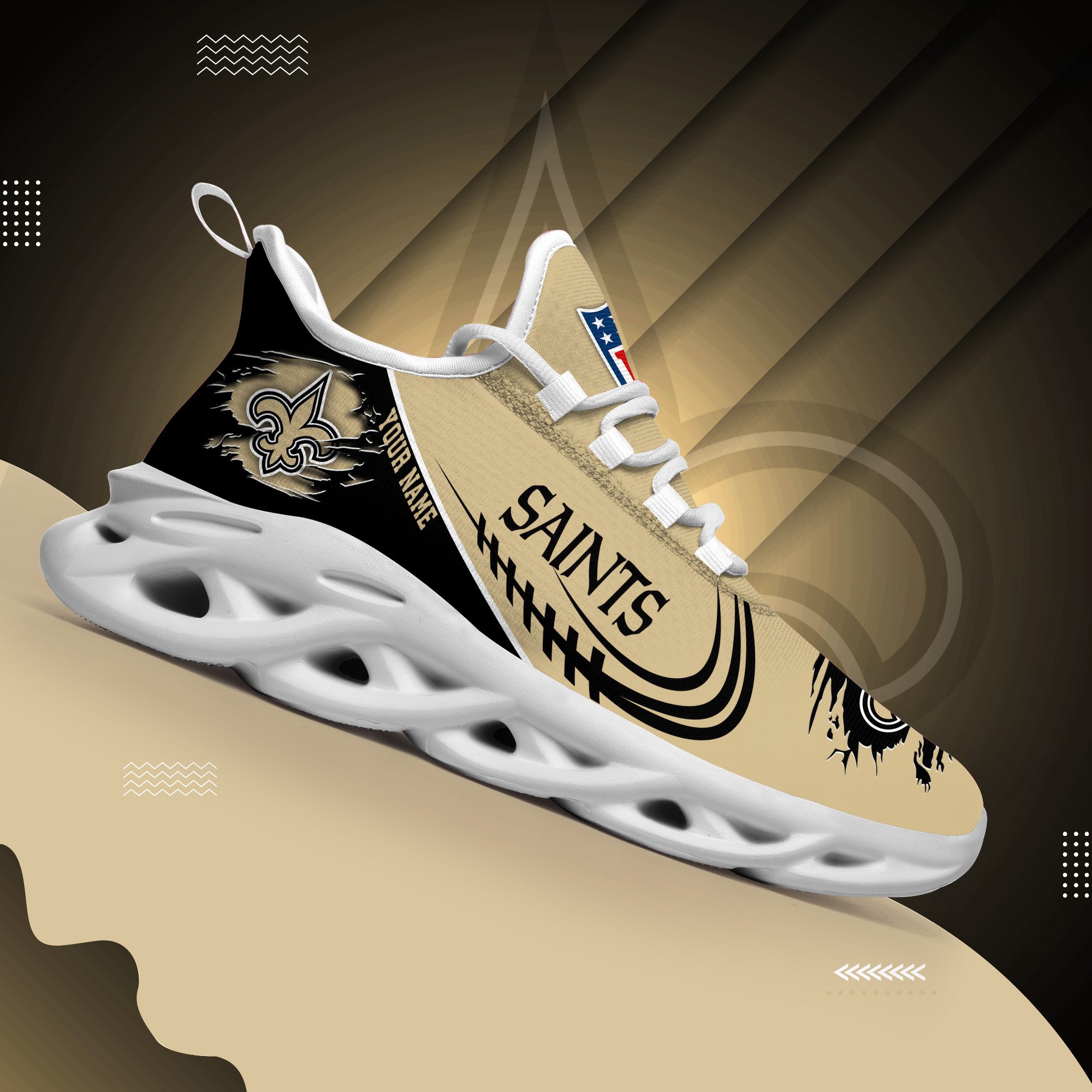 New Orleans Saints Black Max Soul Shoes 2026 Versions Custom Name 003
