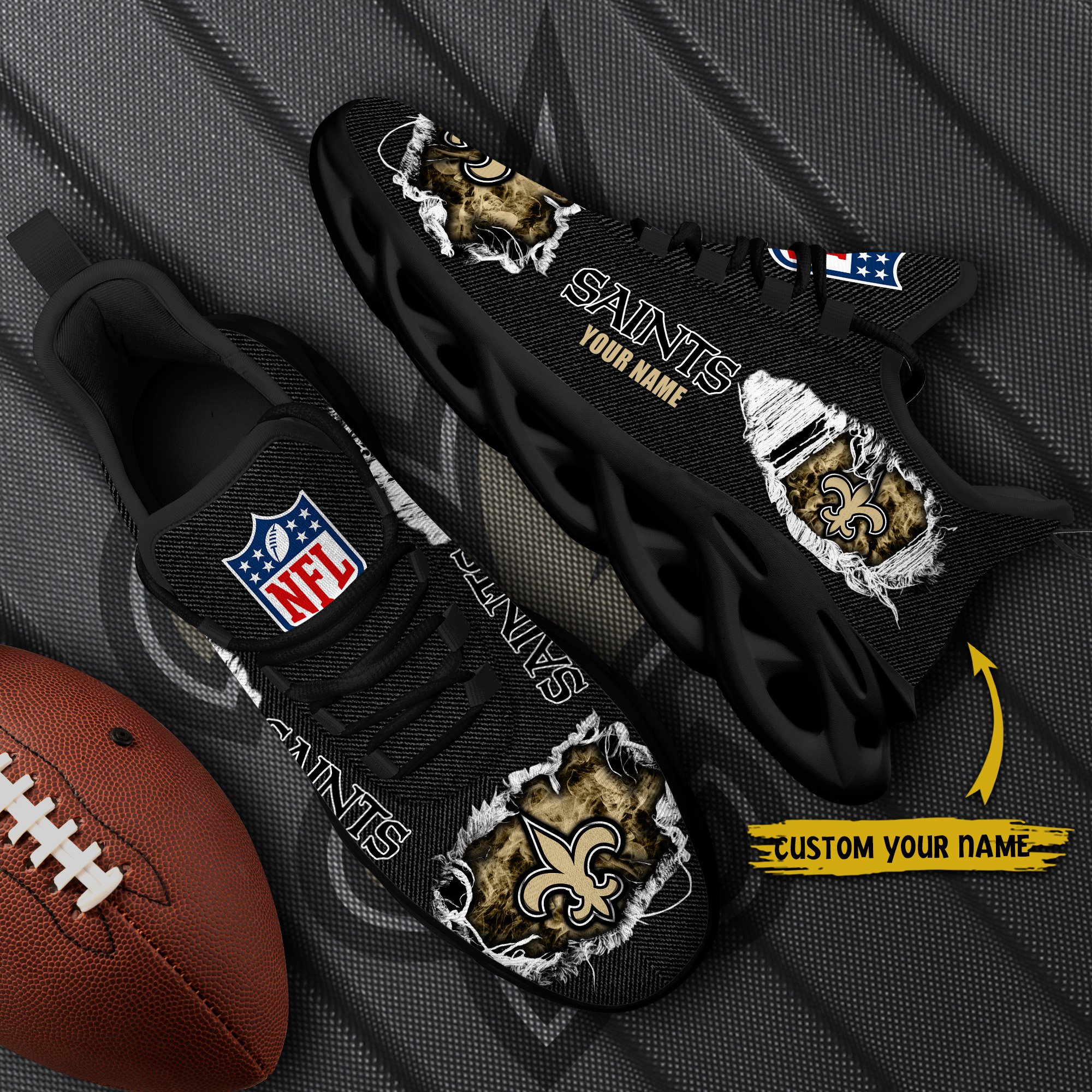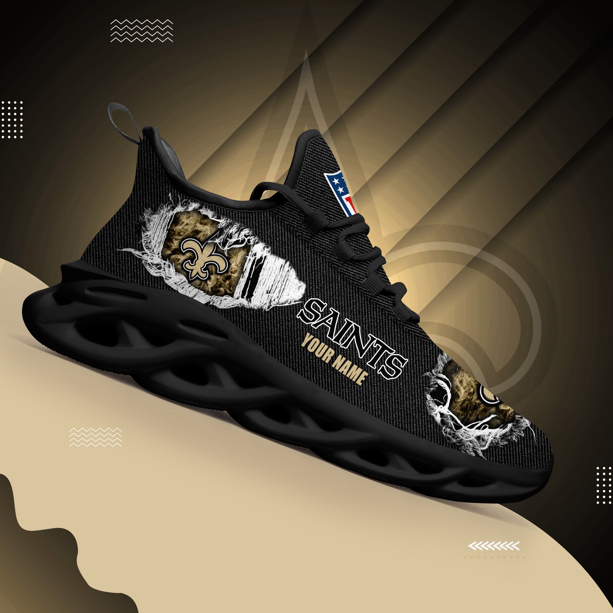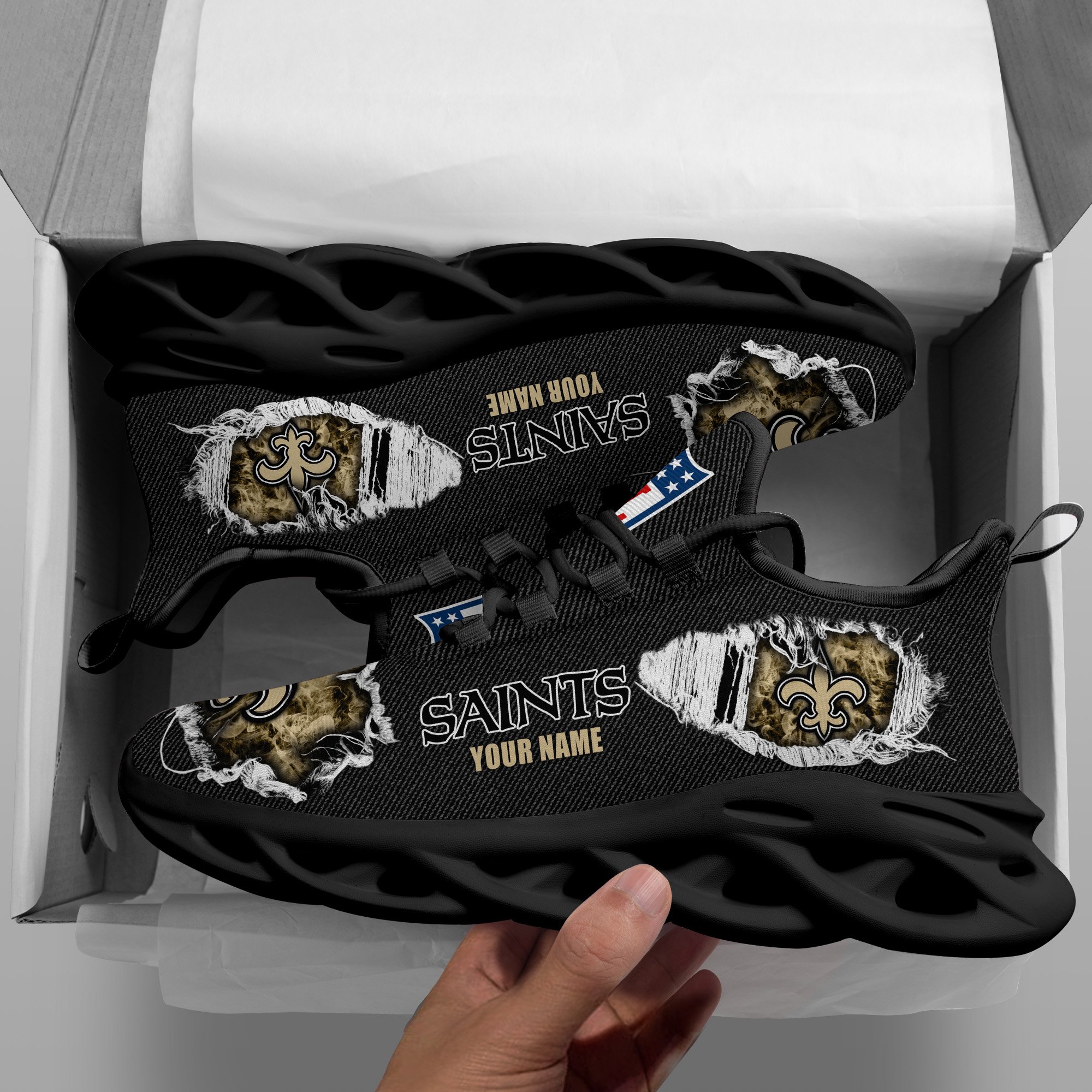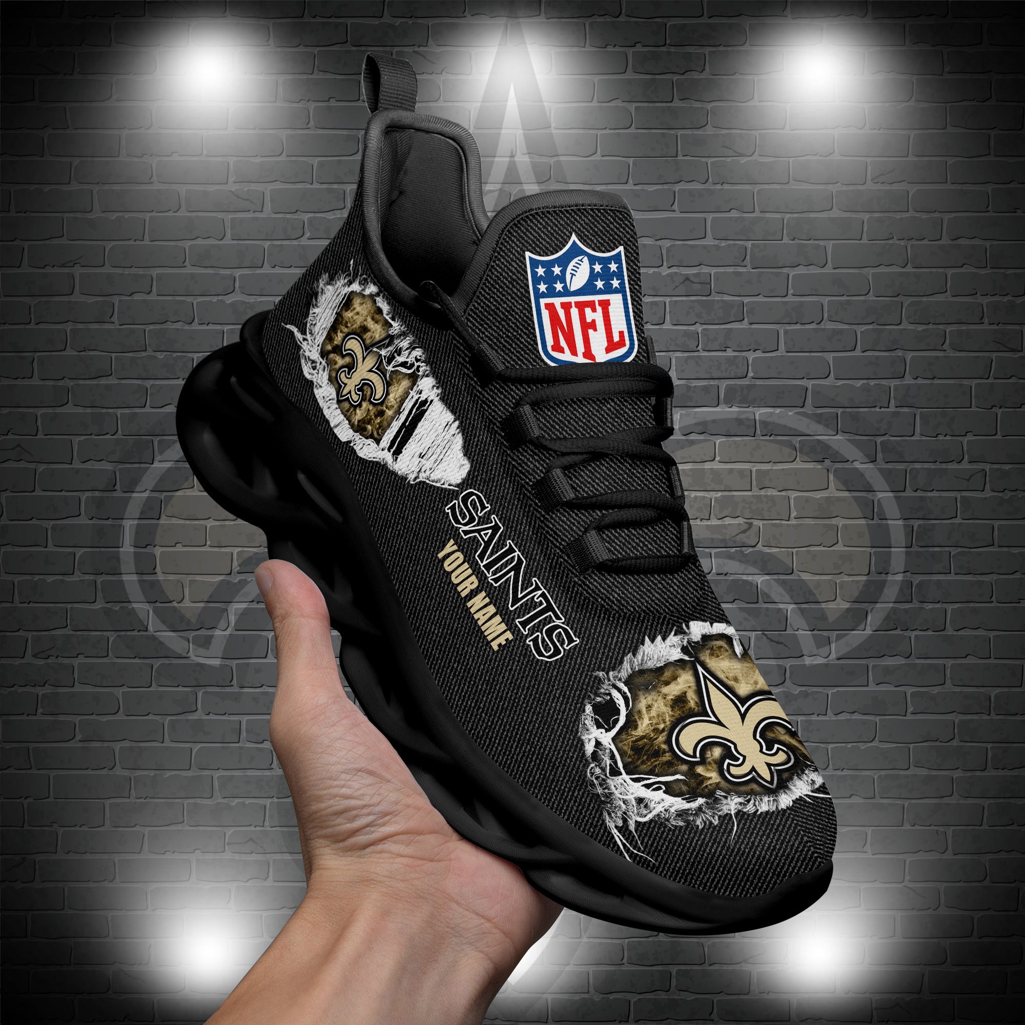 New Orleans Saints Black Max Soul Shoes 2026 Versions Custom Name 554