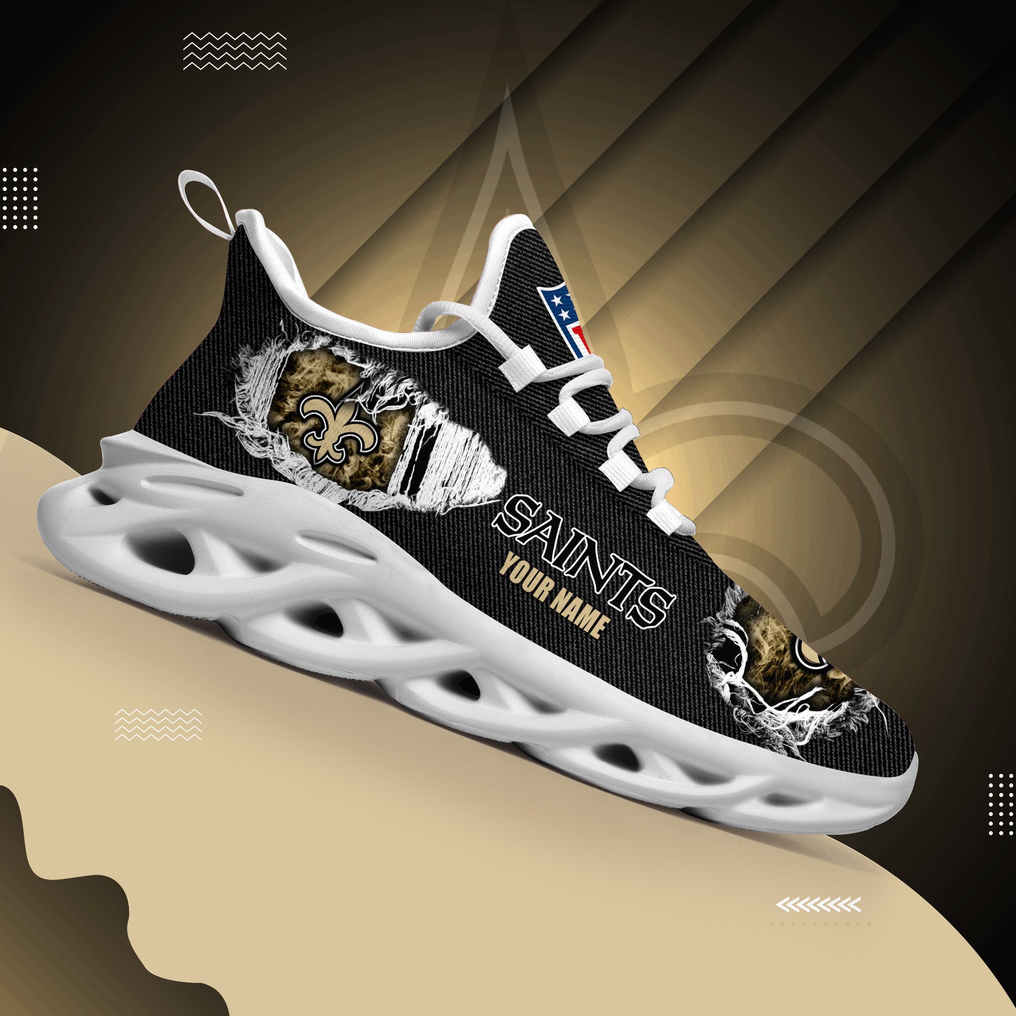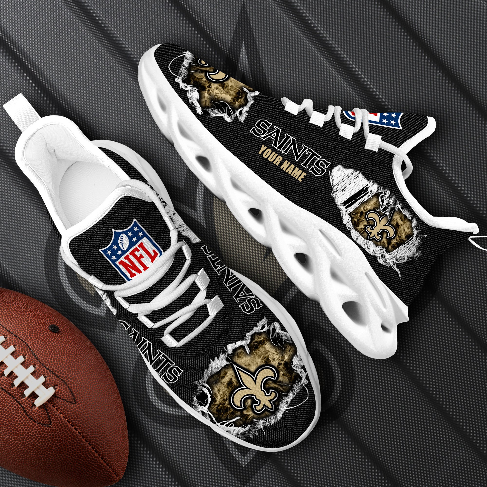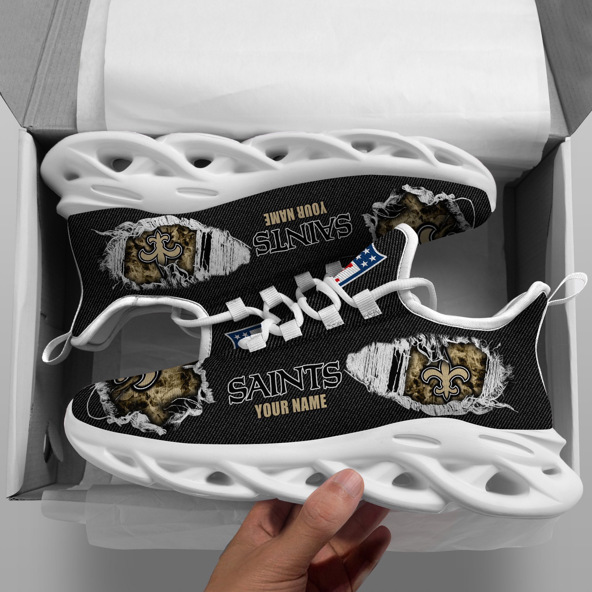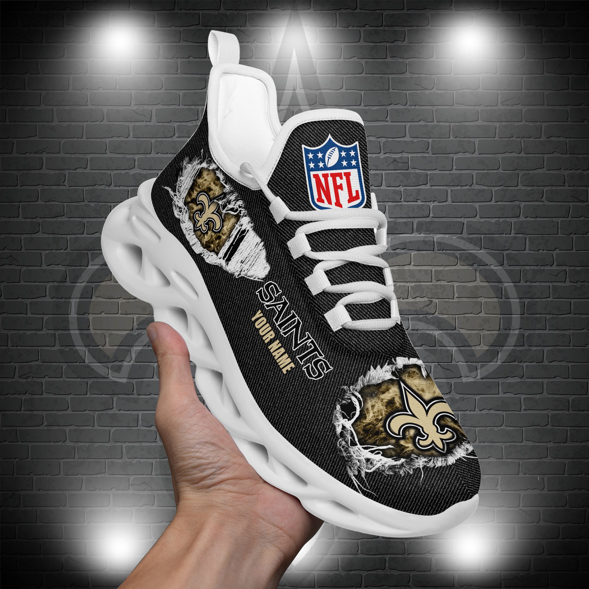 New Orleans Saints Black Max Soul Shoes 2026 Versions Custom Name 554
