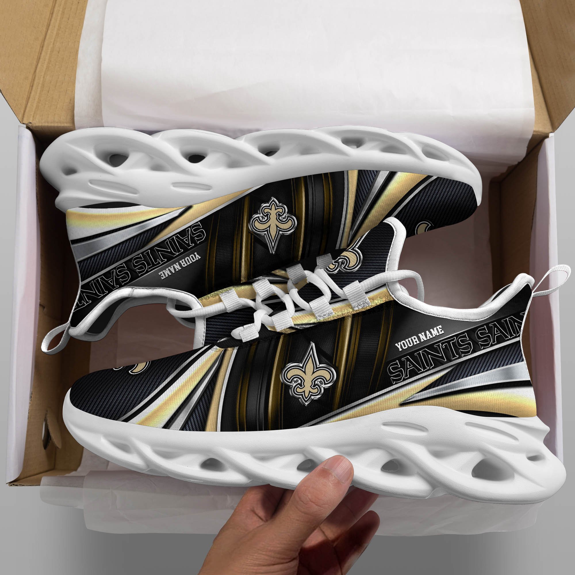 New Orleans Saints White C Sneakers 2026 Version Personalized Your Name, Sport Team Sneakers, Sport Gifts PH892
