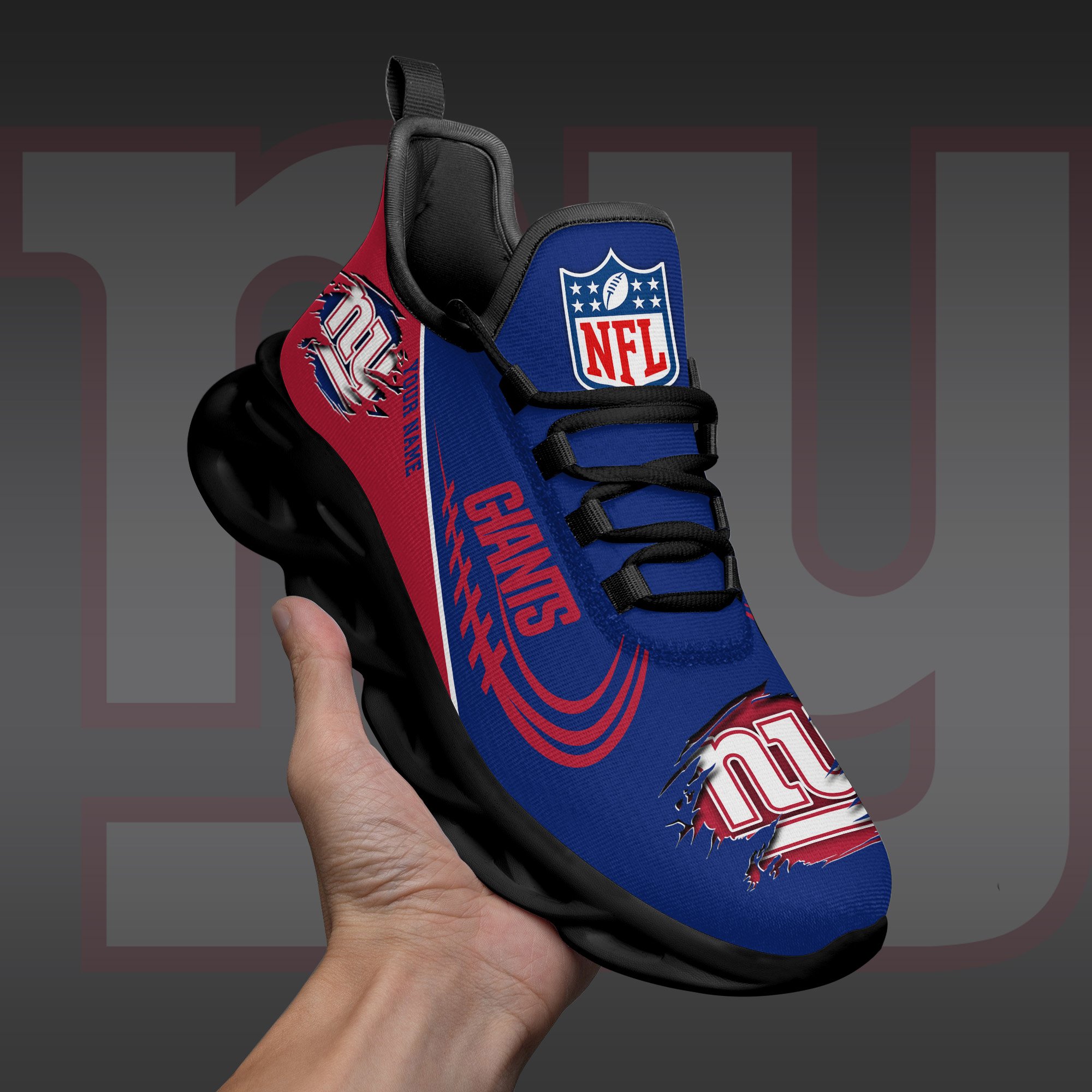 New York Giants Black Max Soul Shoes 2026 Versions Custom Name 003