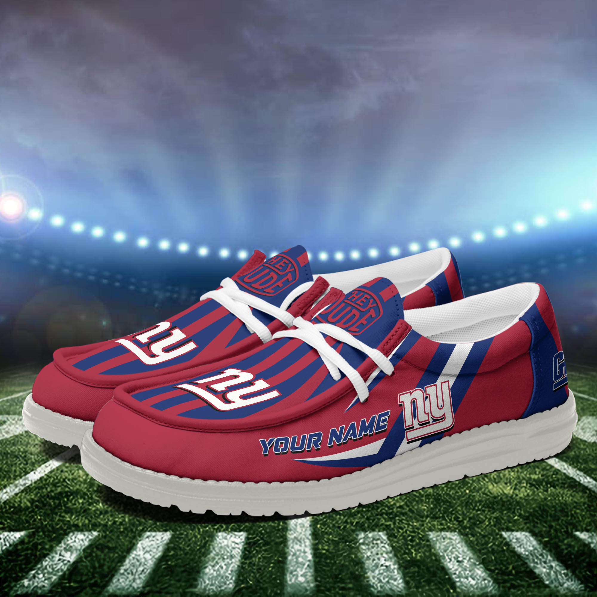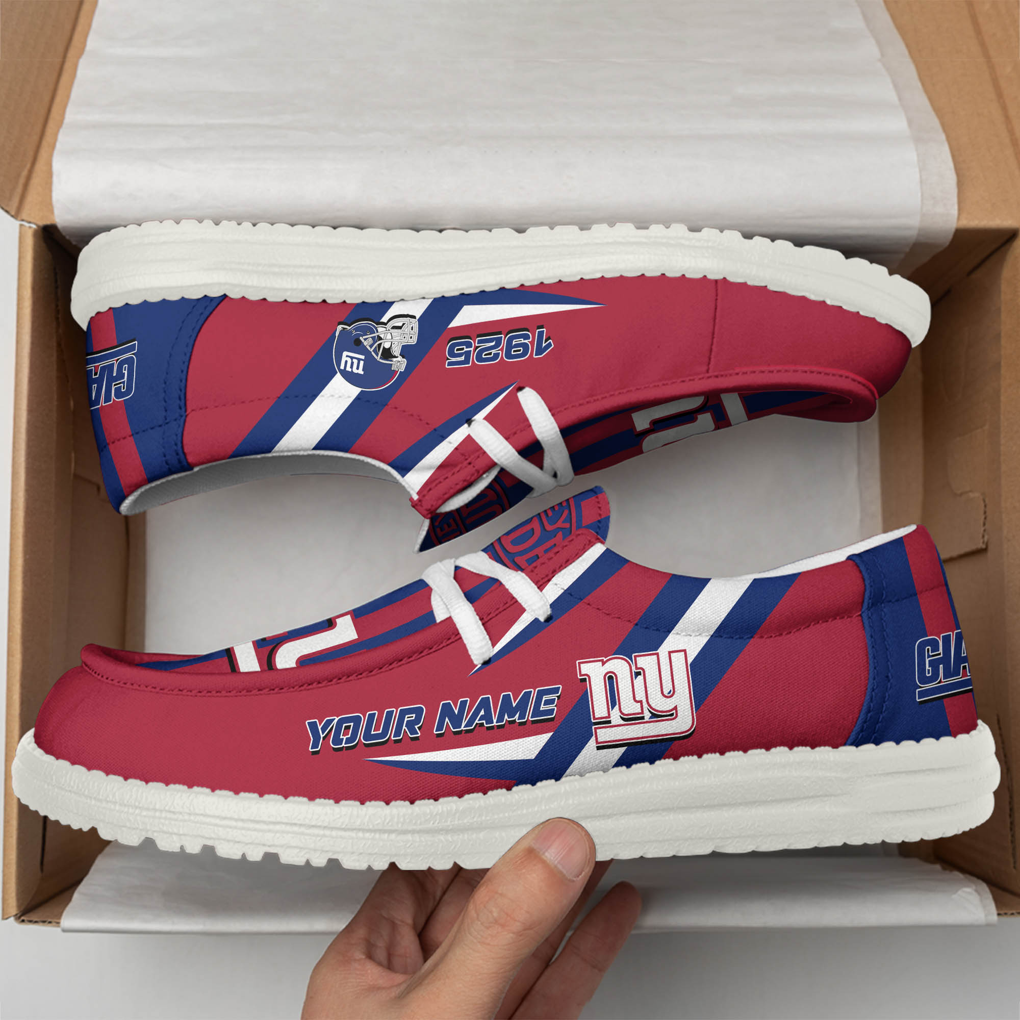 New York Giants Team White Canvas Loafer Shoes Personalized Your Name