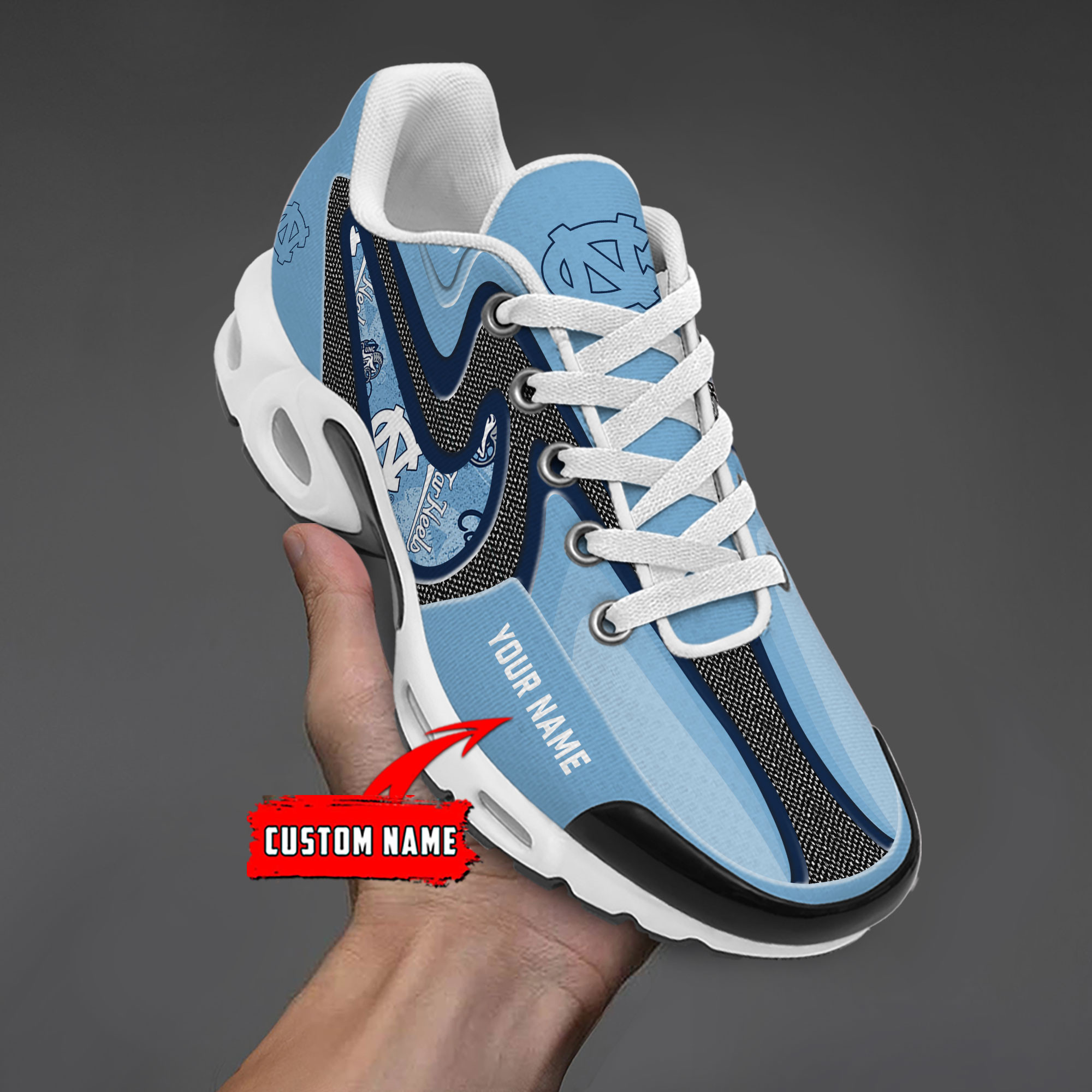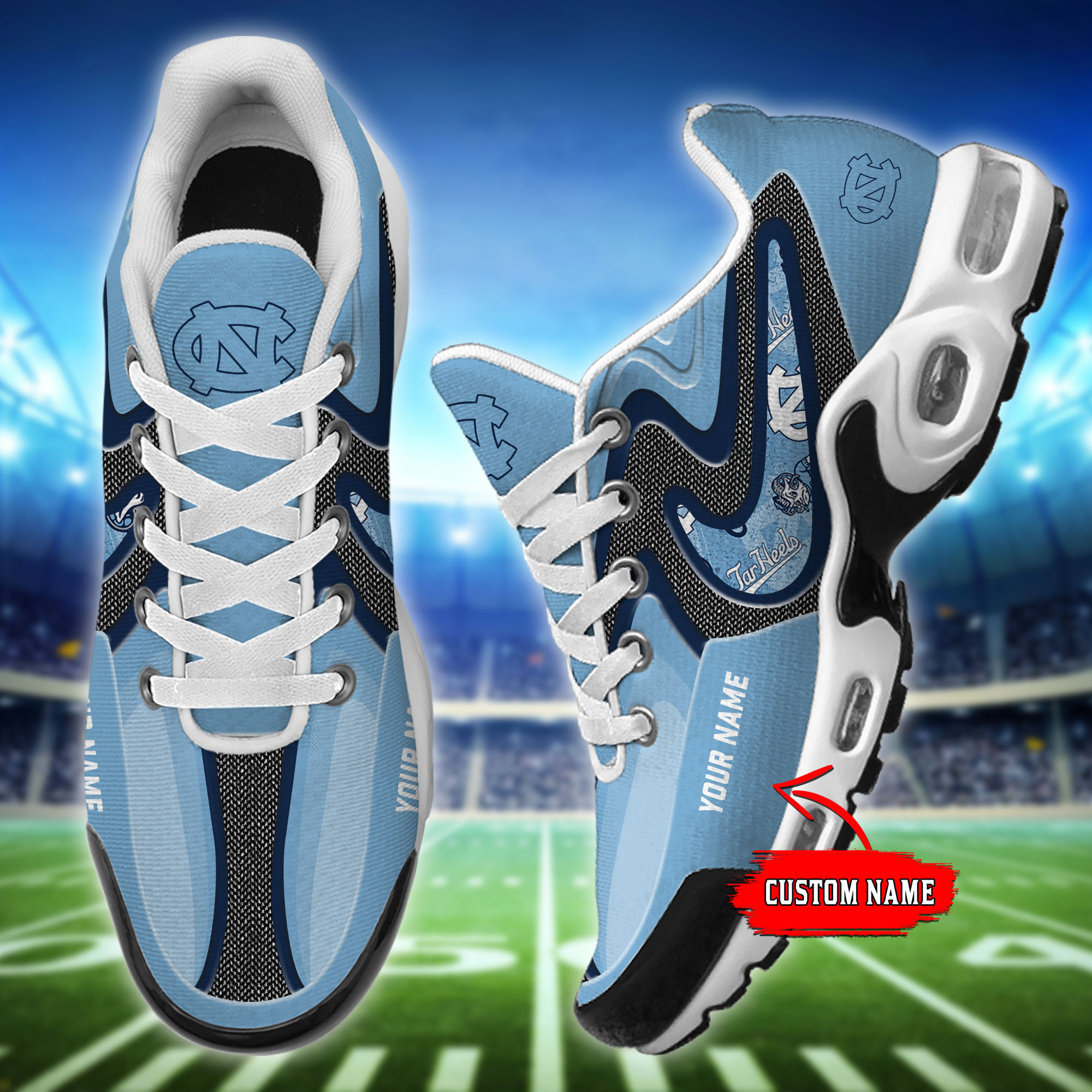 North Carolina Tar Heels Personalized Name Team Checkmark Logo Mix Colors Stitch Line TN Shoes Air Cushion Sneakers