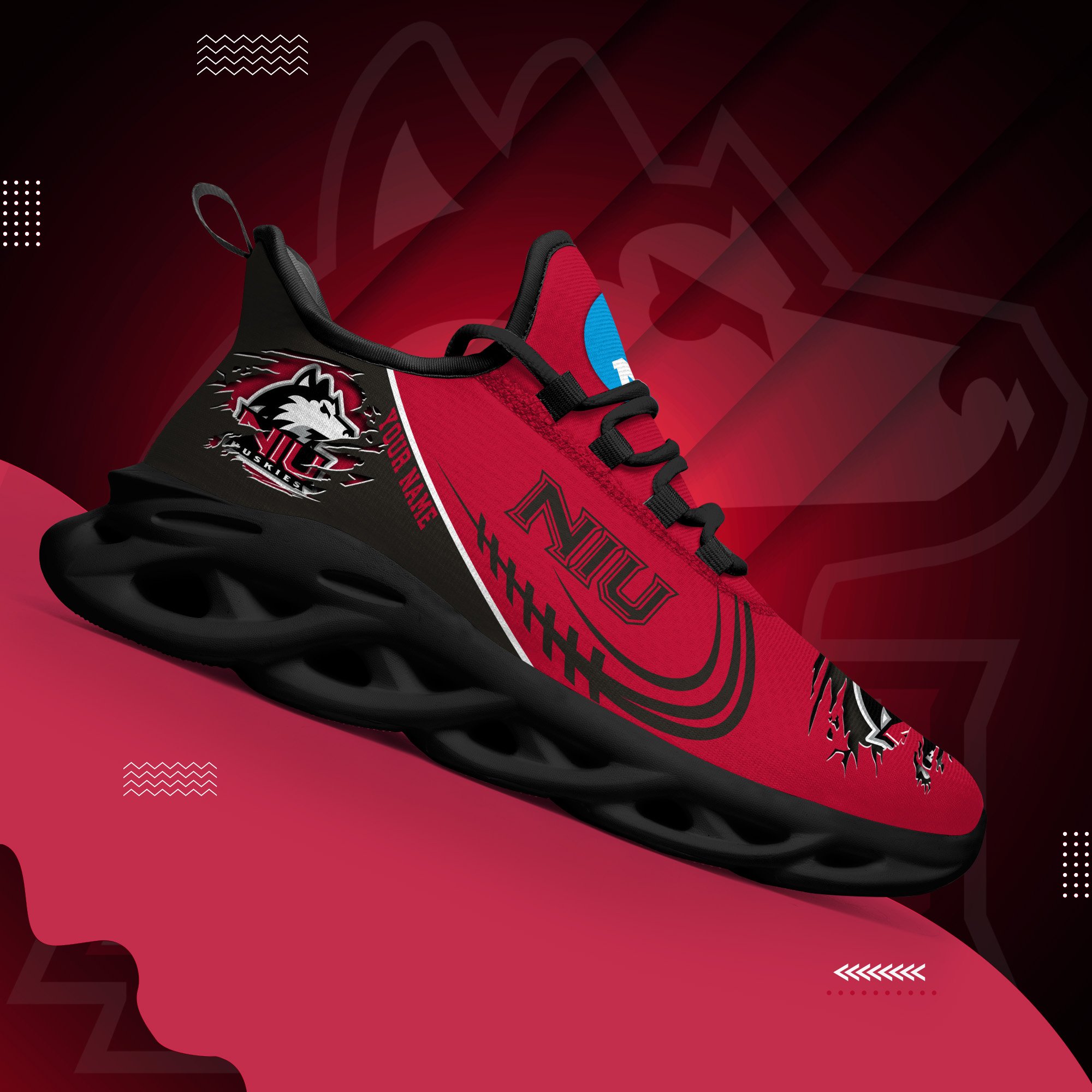 Northern Illinois Huskies Black Max Soul Shoes 2026 Versions Custom Name 016