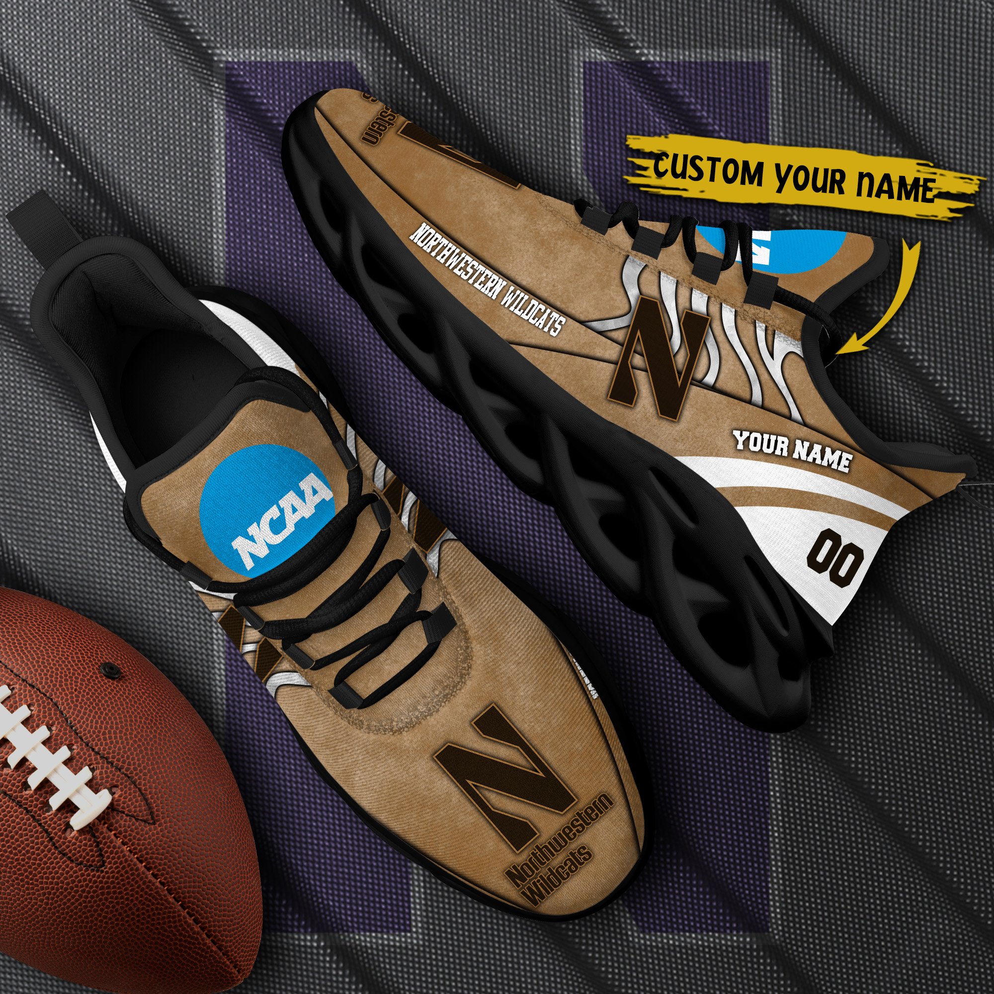 Northwestern Wildcats Black Max Soul Shoes 2026 Versions Custom Your Name And Number 312
